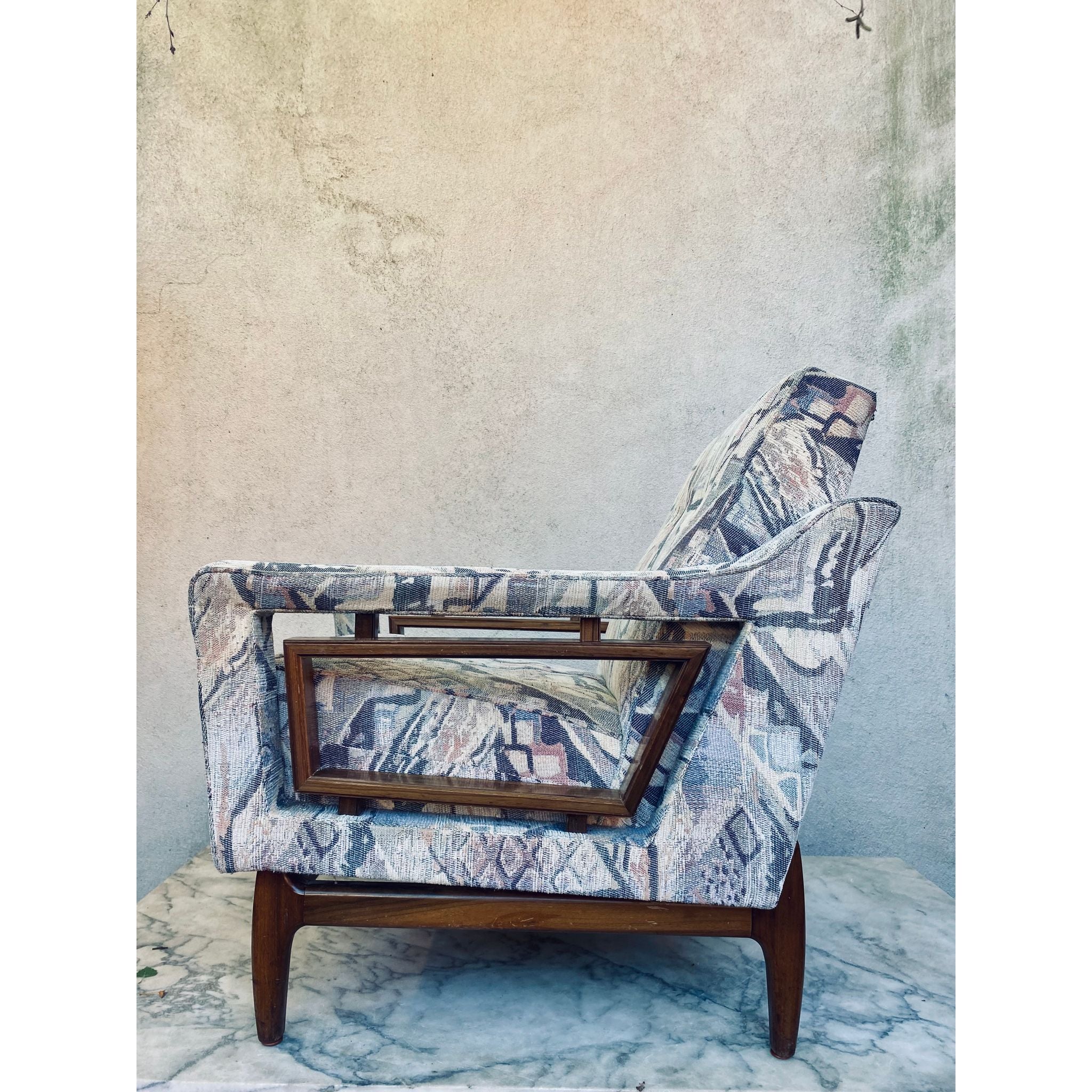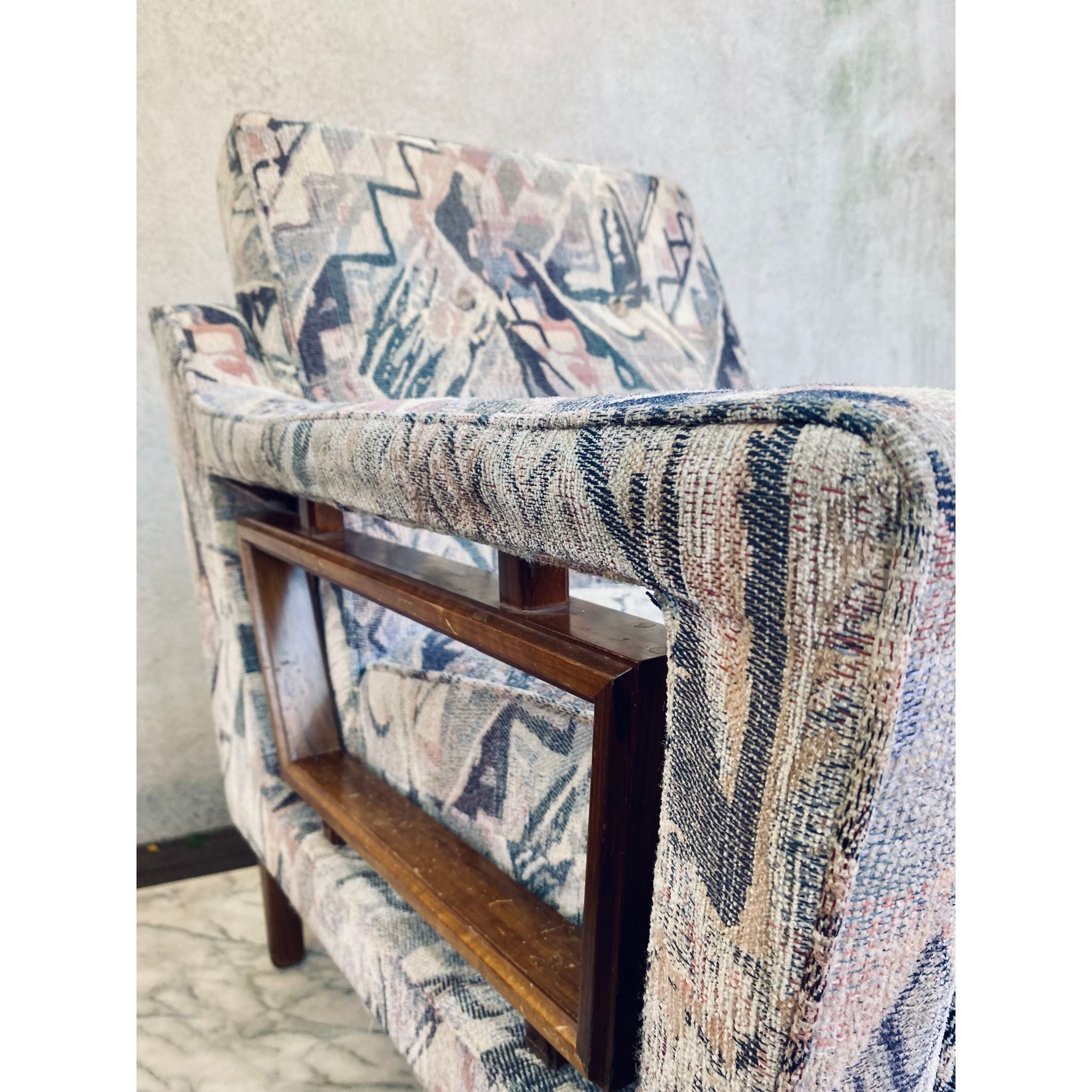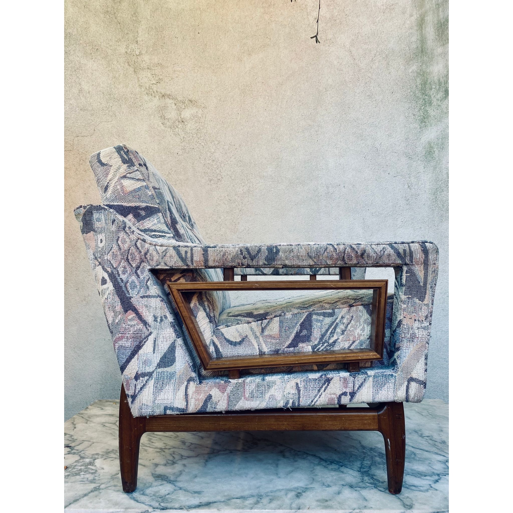 This piece exemplifies Rudowski’s design panache and fine craftsmanship. The architectural form and lines are unmistakable and idiosyncratic to Rudowski. Meanwhile, the pastel tones and geometric silhouettes in the fabric impart a modernist aura.