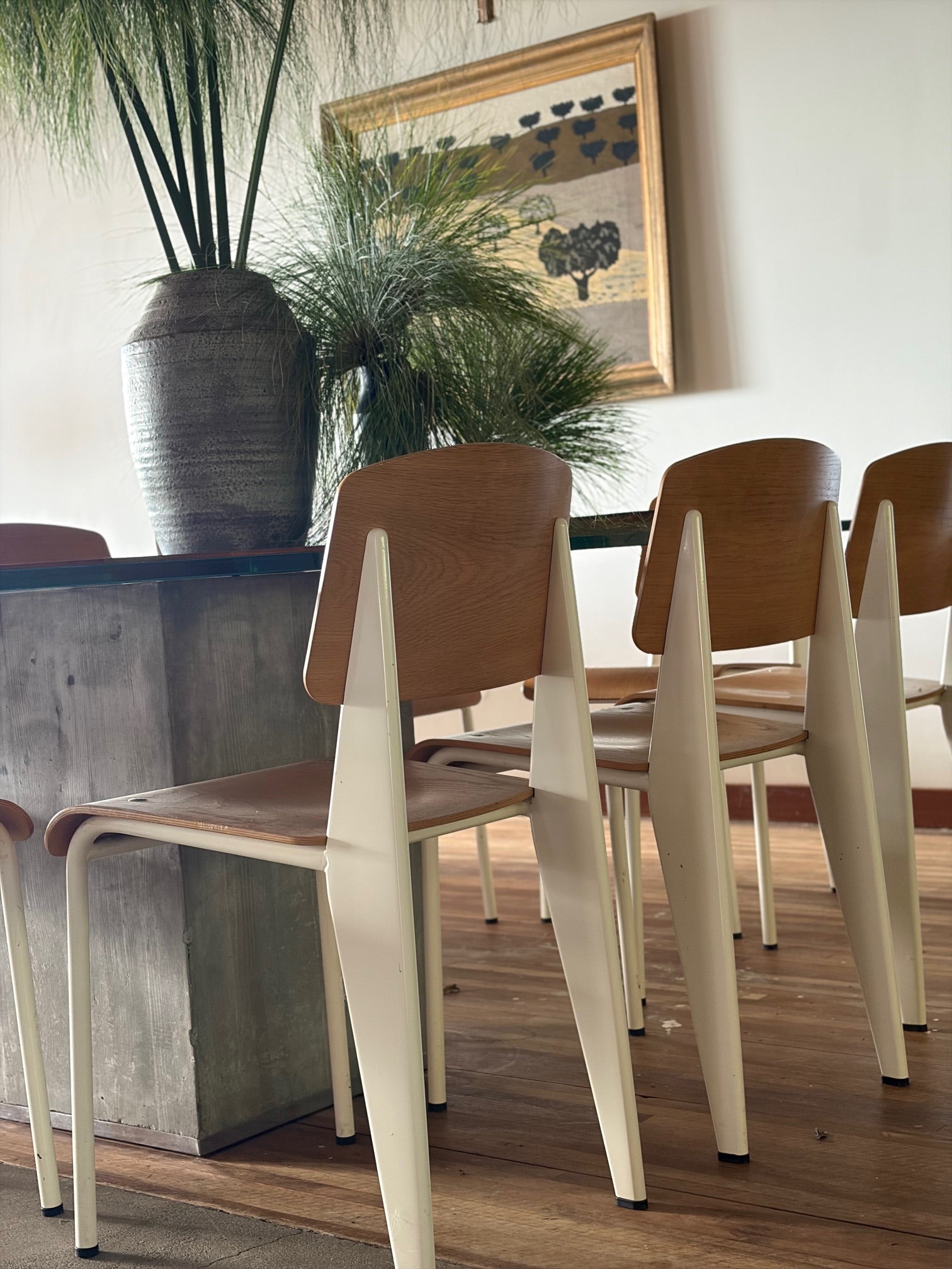 Jean Prouvé Standard chair in natural oak for Vitra. The Standard chair is an early masterpiece by the French designer and engineer Jean Prouvé. Originally designed in 1934, the Standard evolved into one of the most famous classics of the French ''constructeur''. The seat and backrest of this understated, iconic chair are available in various types of wood, and the metal frame comes in different colours. of the most comfortable and robust chairs.