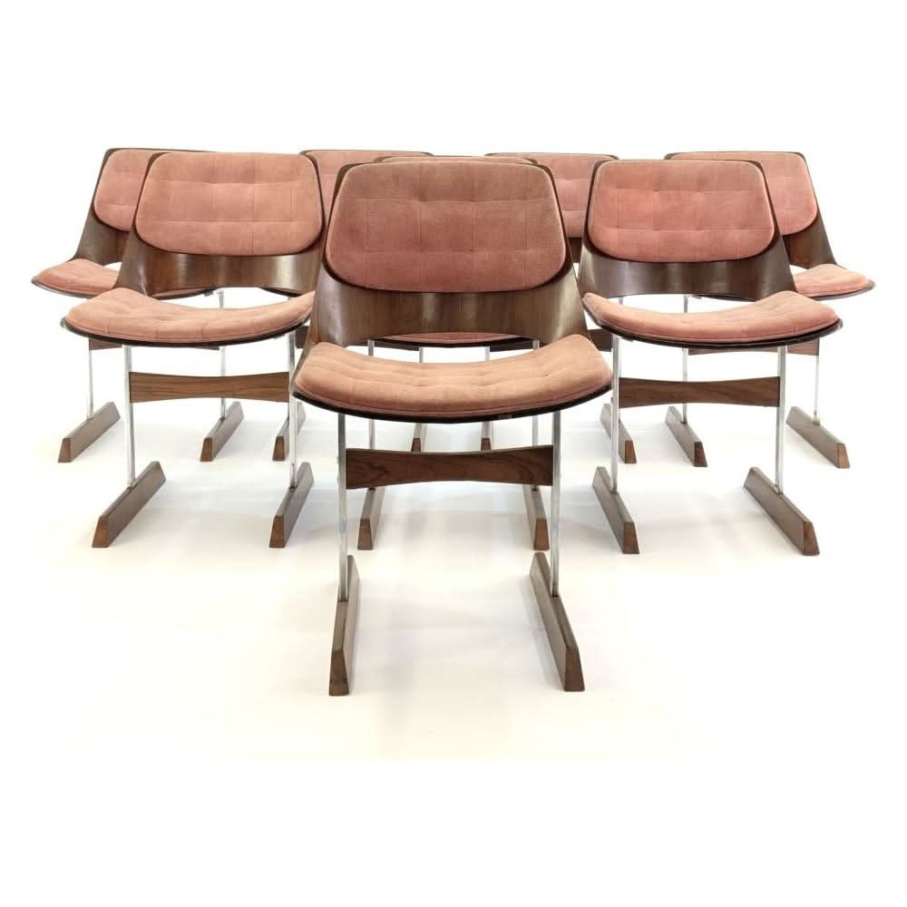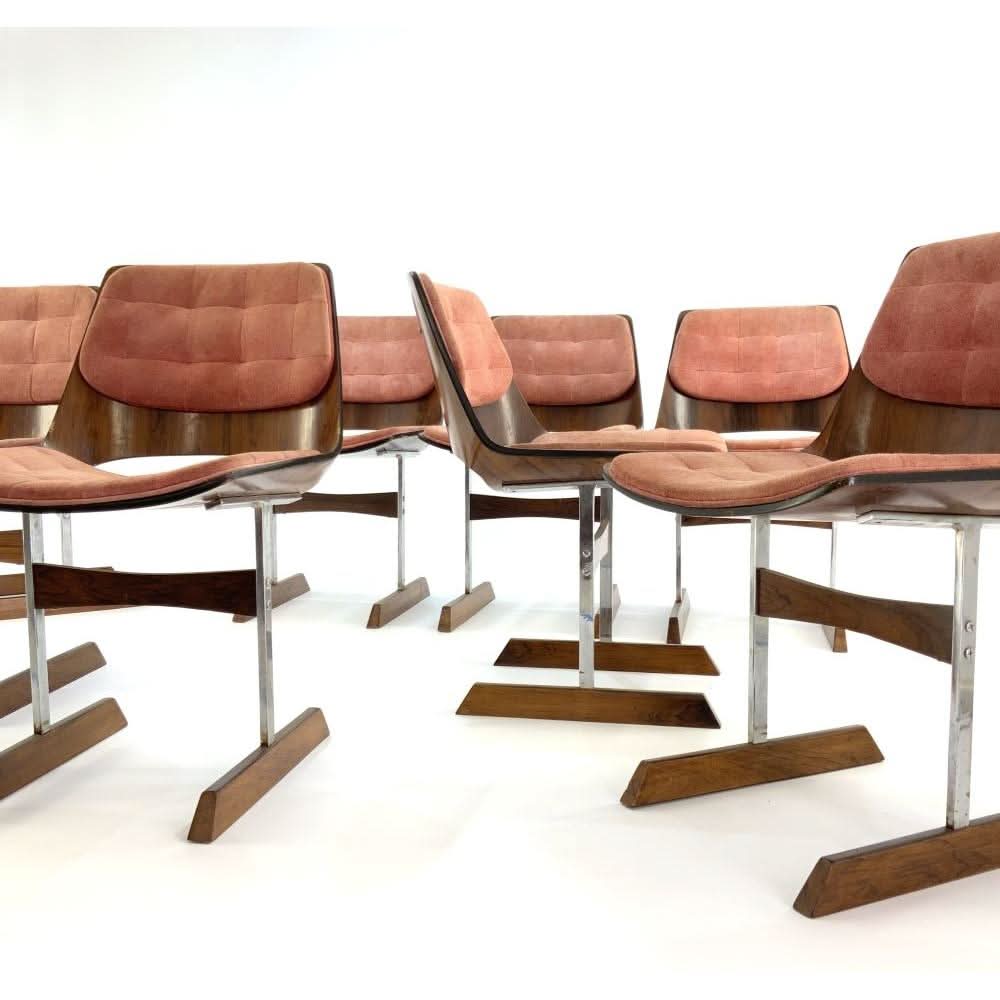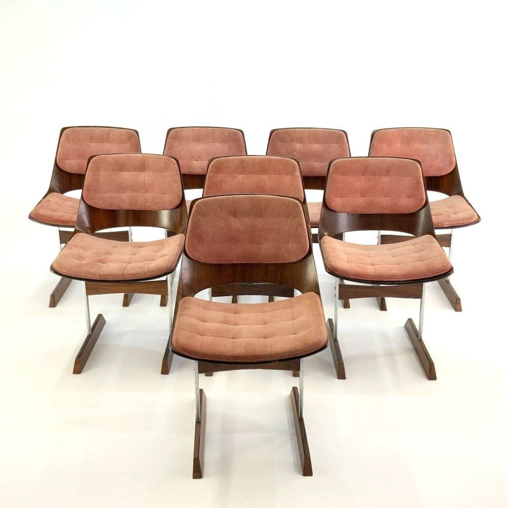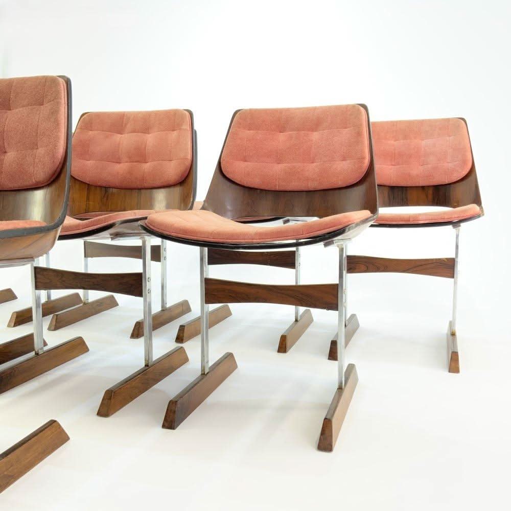 Brazilian Rosewood Dining Chairs by Jorge Zalszupin with original pink suede upholstery. Set of 8. Price is per chair.