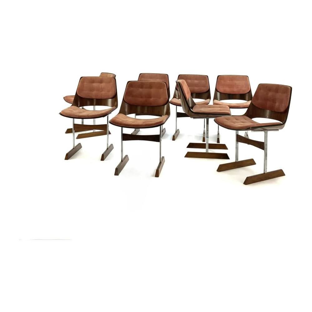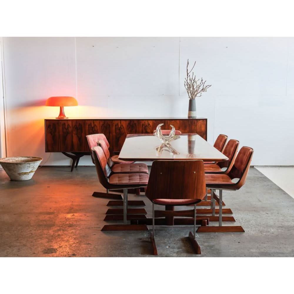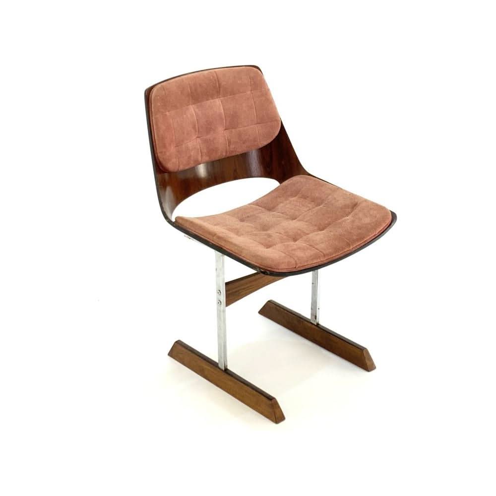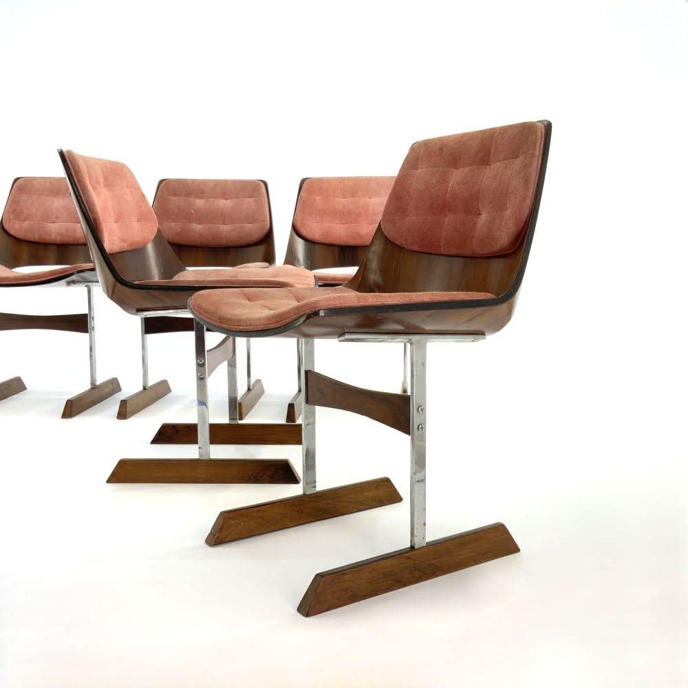 Brazilian Rosewood Dining Chairs by Jorge Zalszupin with original pink suede upholstery. Set of 8. Price is per chair.