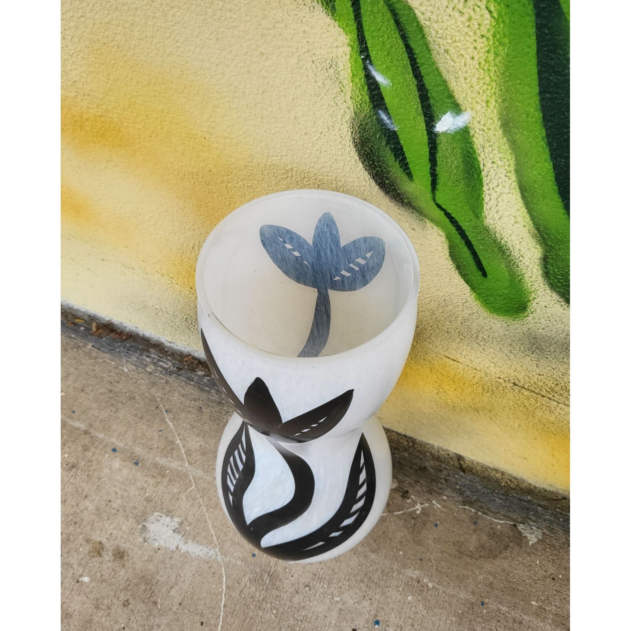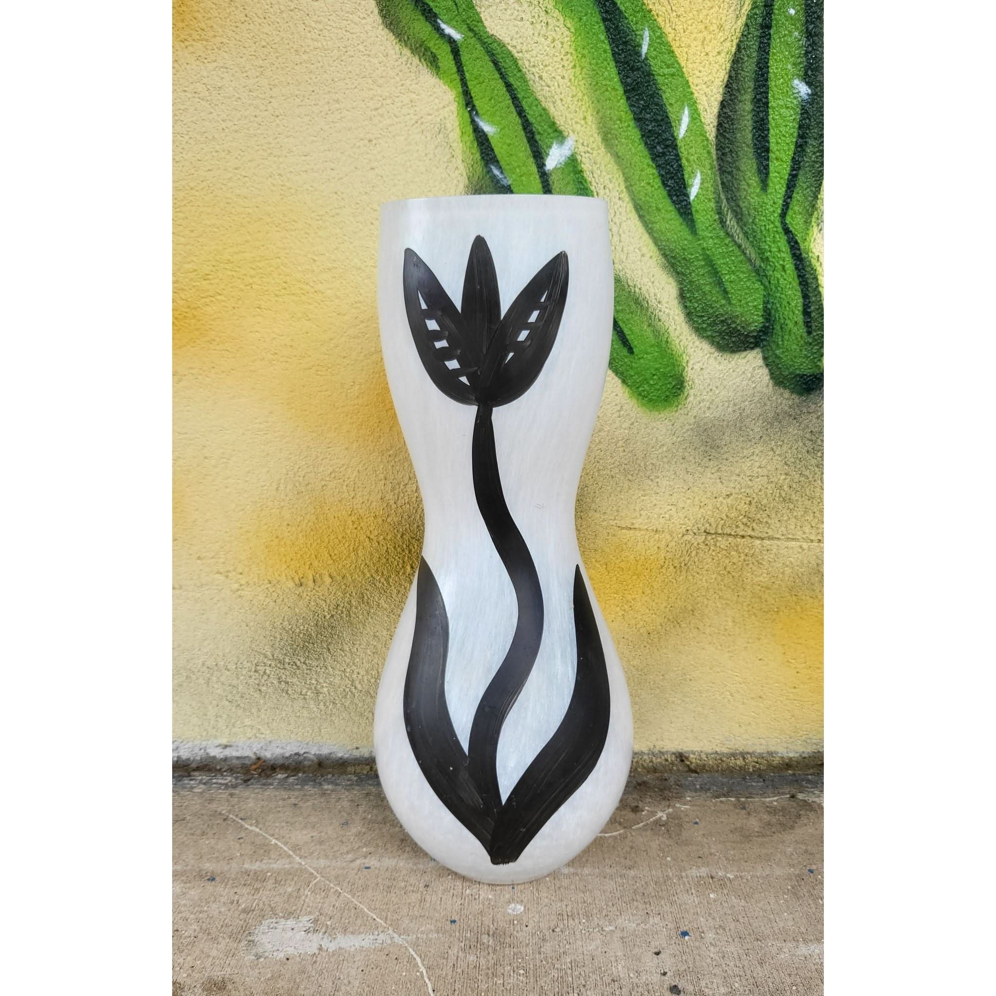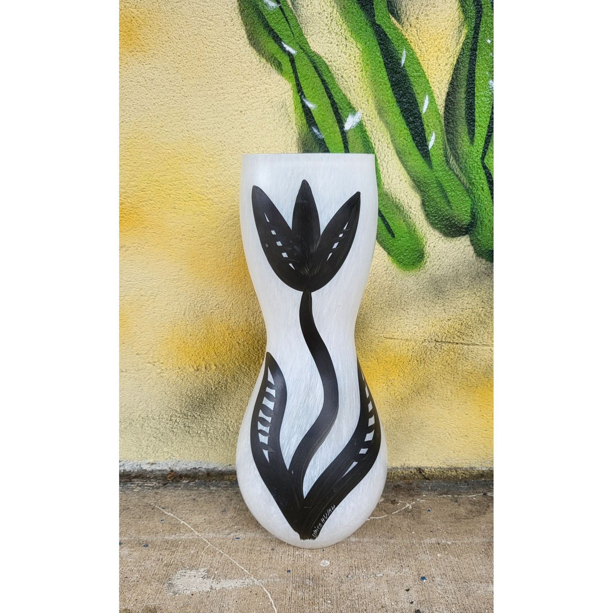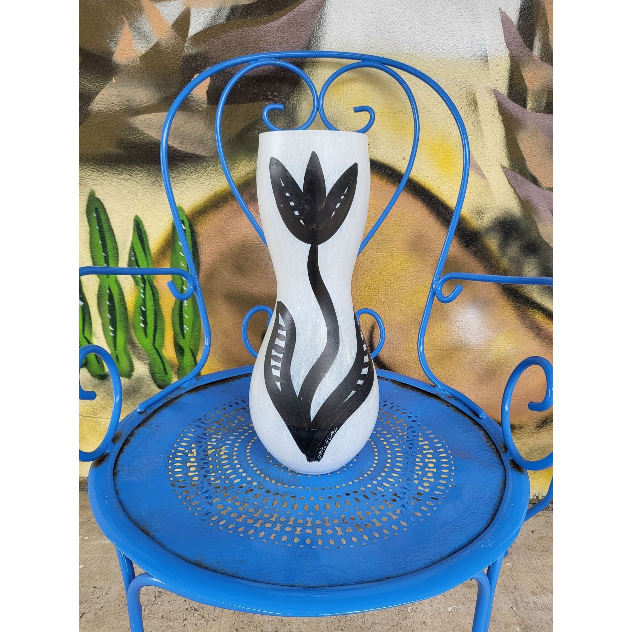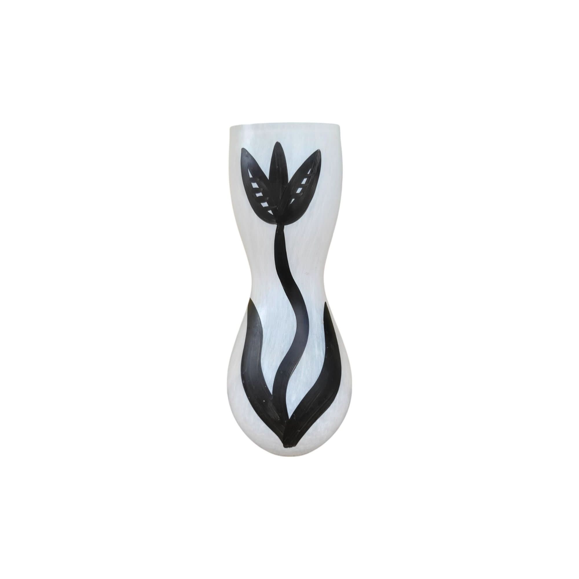 Featuring a dramatic black tulip motif on a white background, the vase embodies bold elegance and timeless charm.