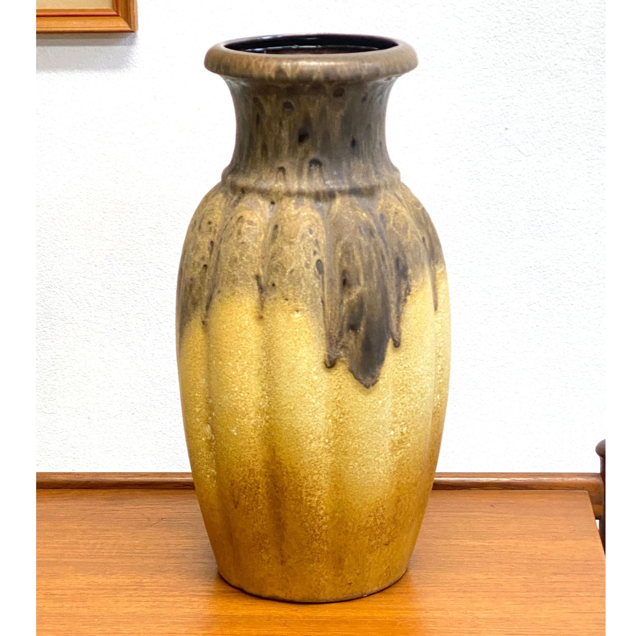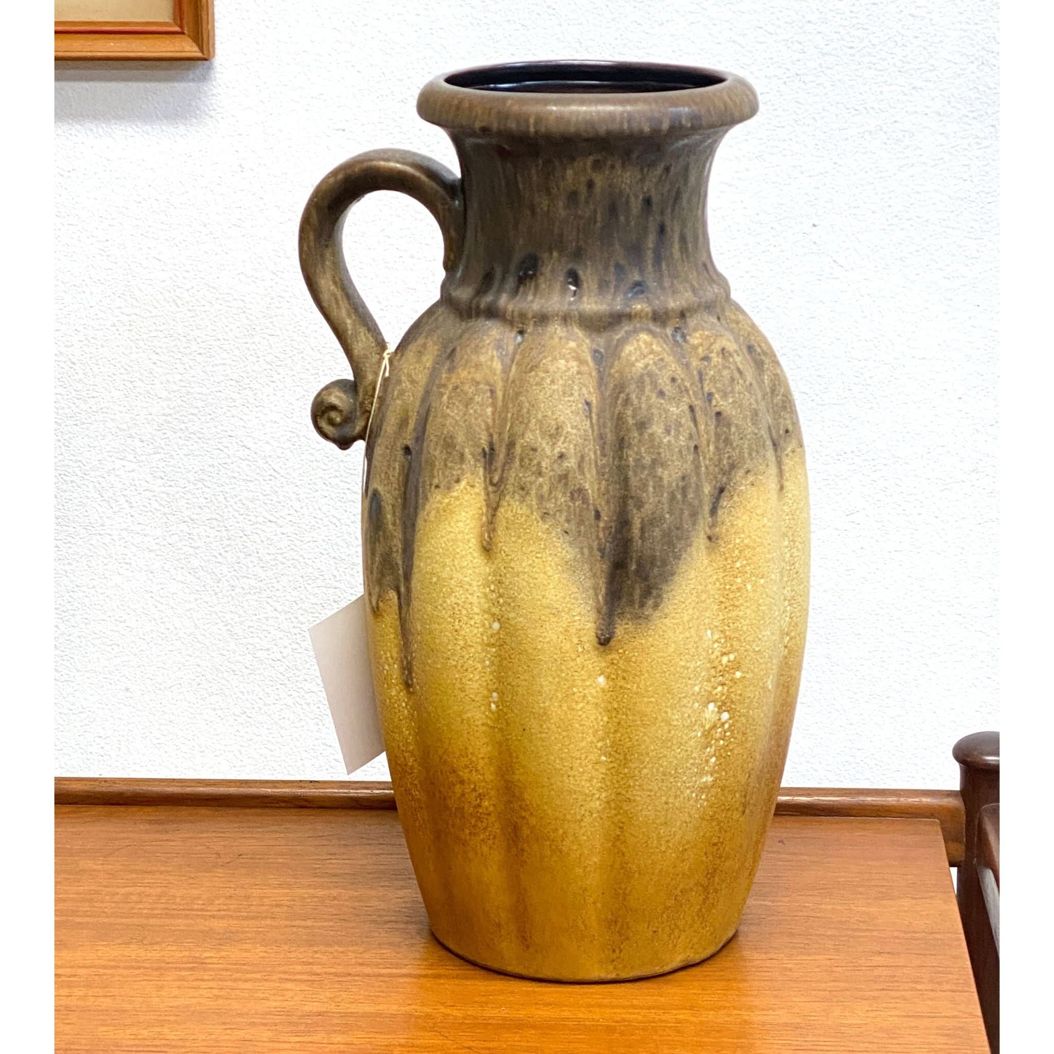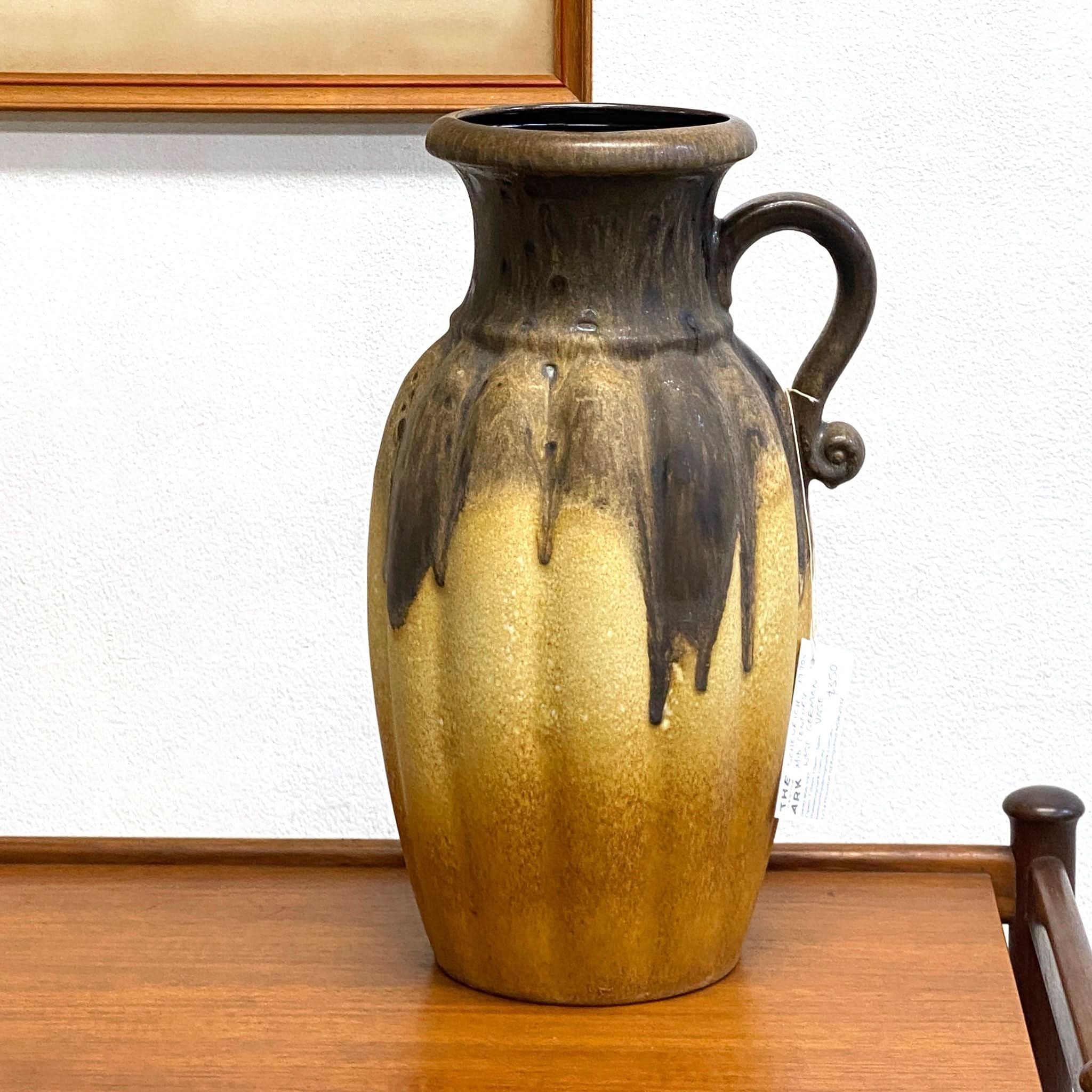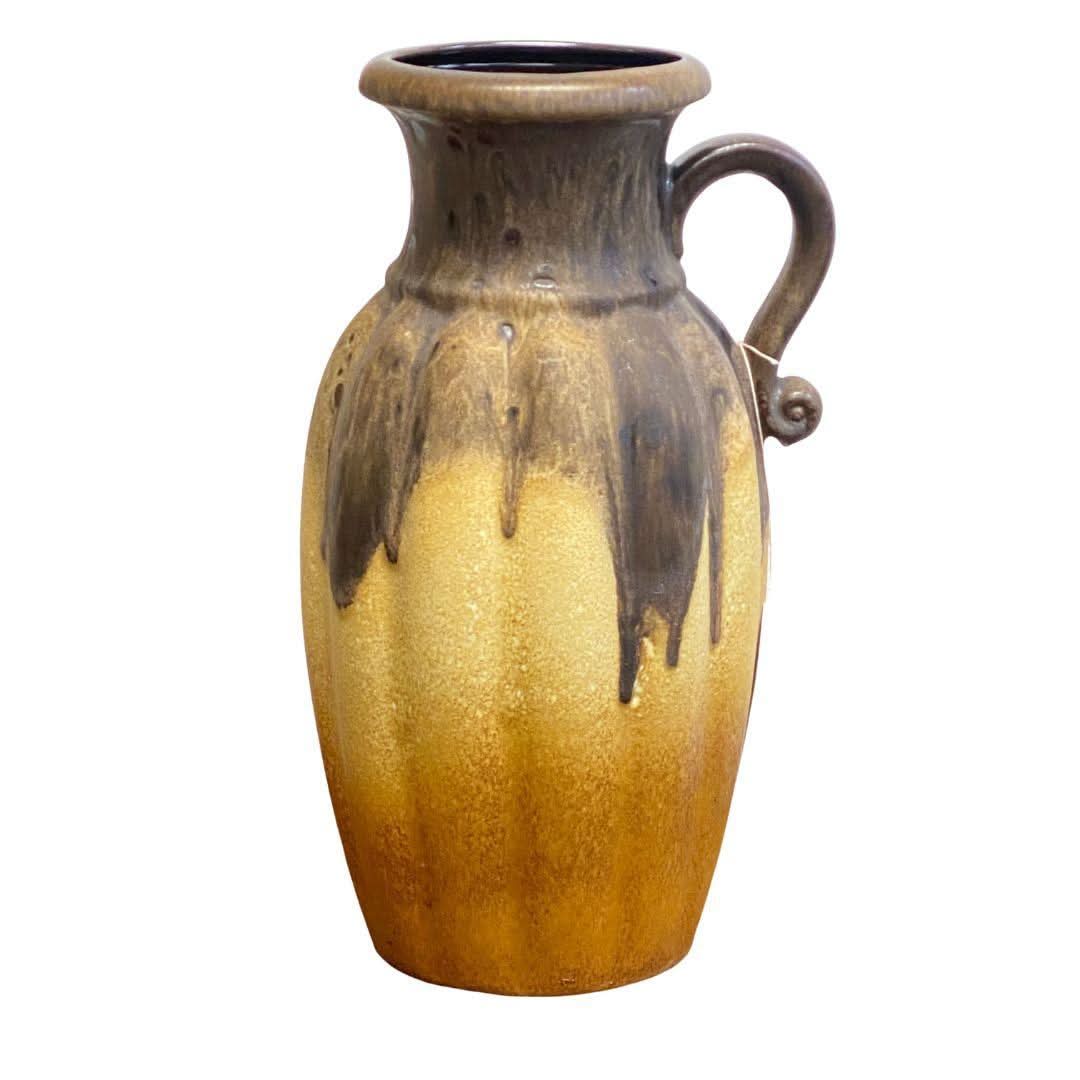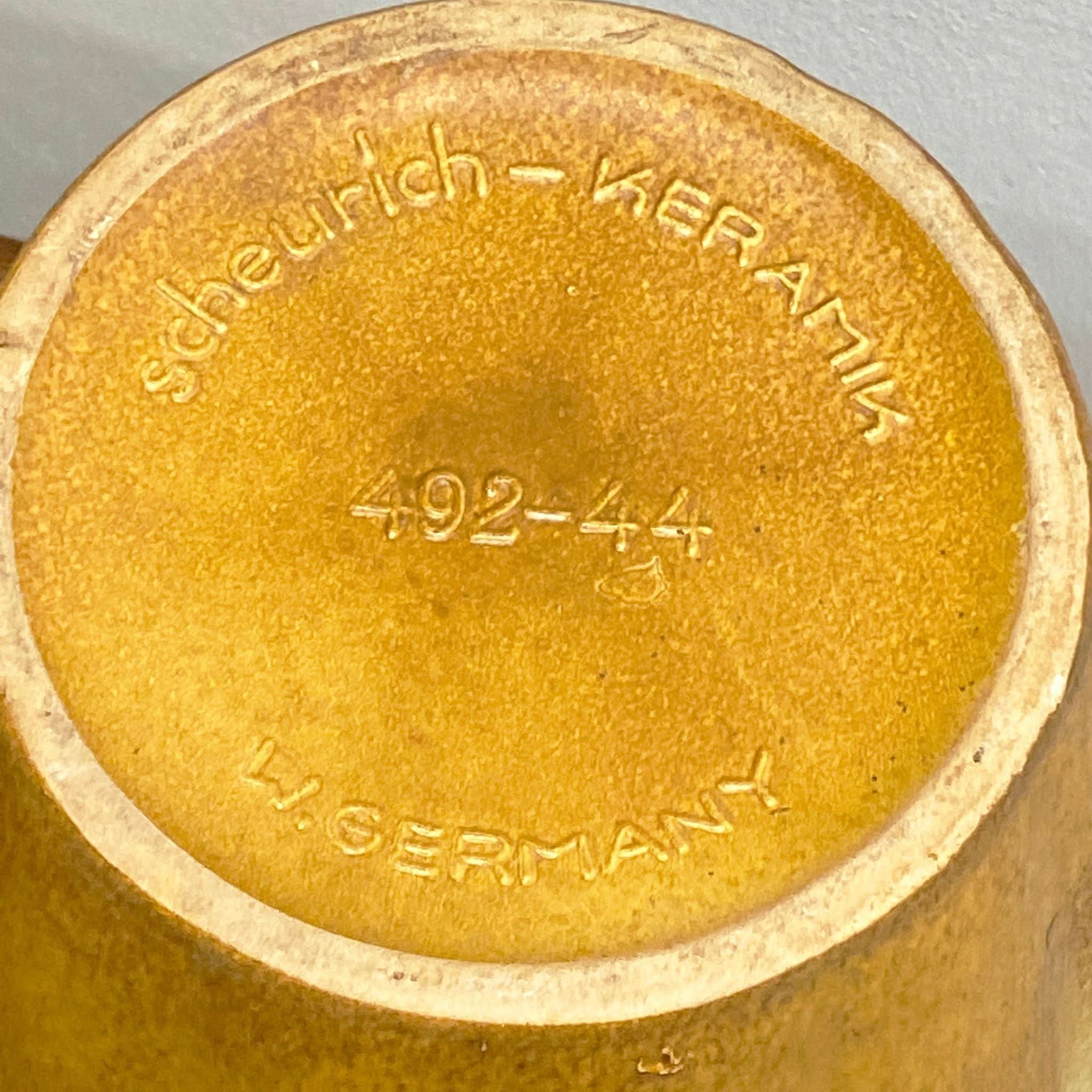 Fabulous large mustard and brown glazed Mid Century vase. Made in West Germany in the 1970’s. Molded in relief to the base – Scheurich – Keramik 492 – 44 W.Germany.
