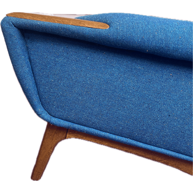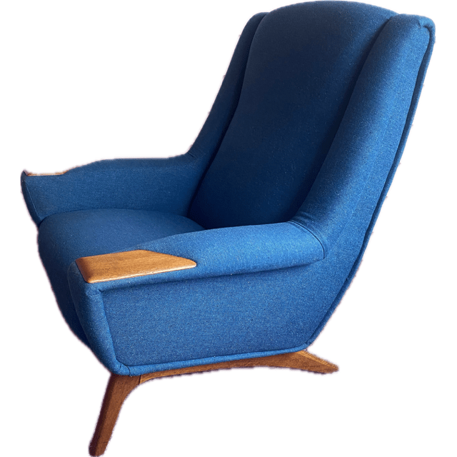 Illum Wikkelso Danish arm chair upholstered in InStyle commercial wool fabric. Previously purchased from Grandfathers Axe. Pickup Kyneton