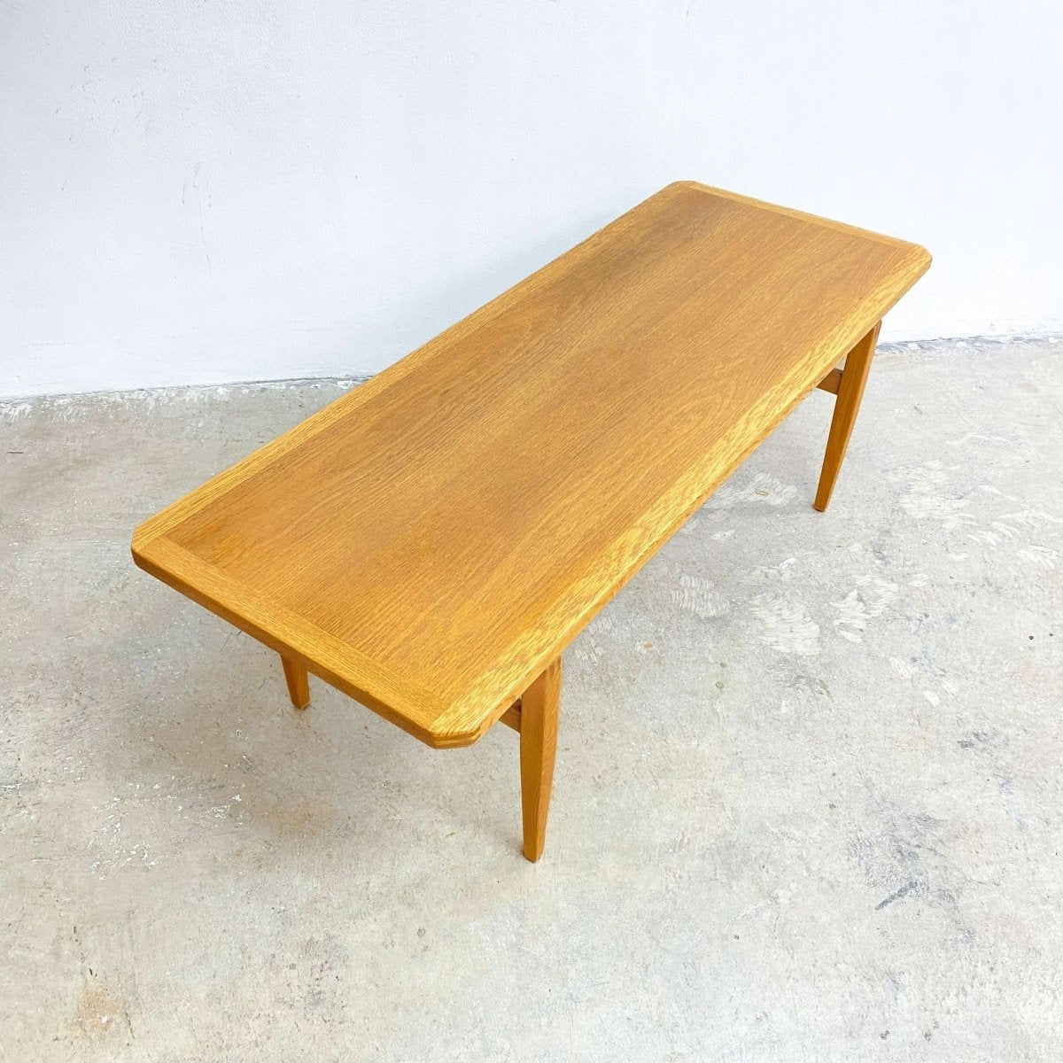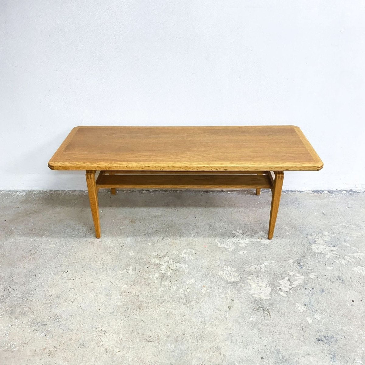 Stunning mid century Danish solid oak coffee table. With classic mid century clean lines and beautiful grain throughout. In excellent restored condition.