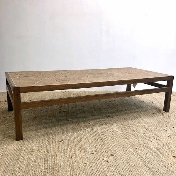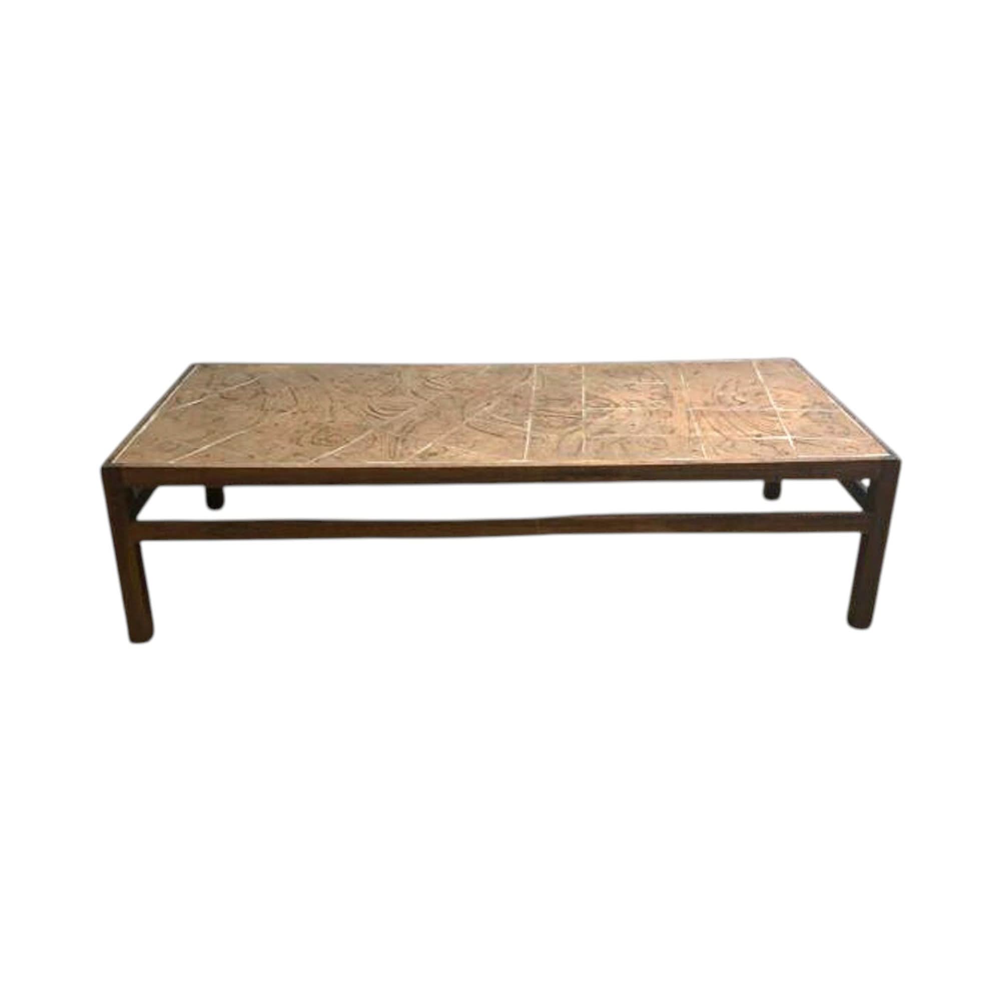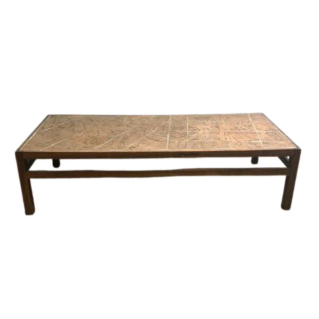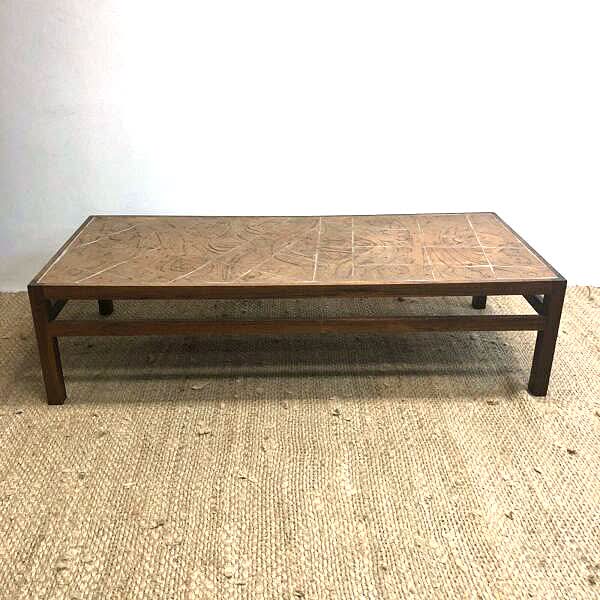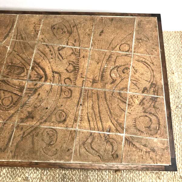 Spectacular bespoke mid century artisan built Danish coffee table. The stoneware tiles bear the artists signature in one corner. The table frame is solid Brazilian Rosewood. Table is in very good original condition and presents beautifully!