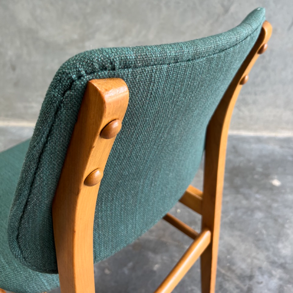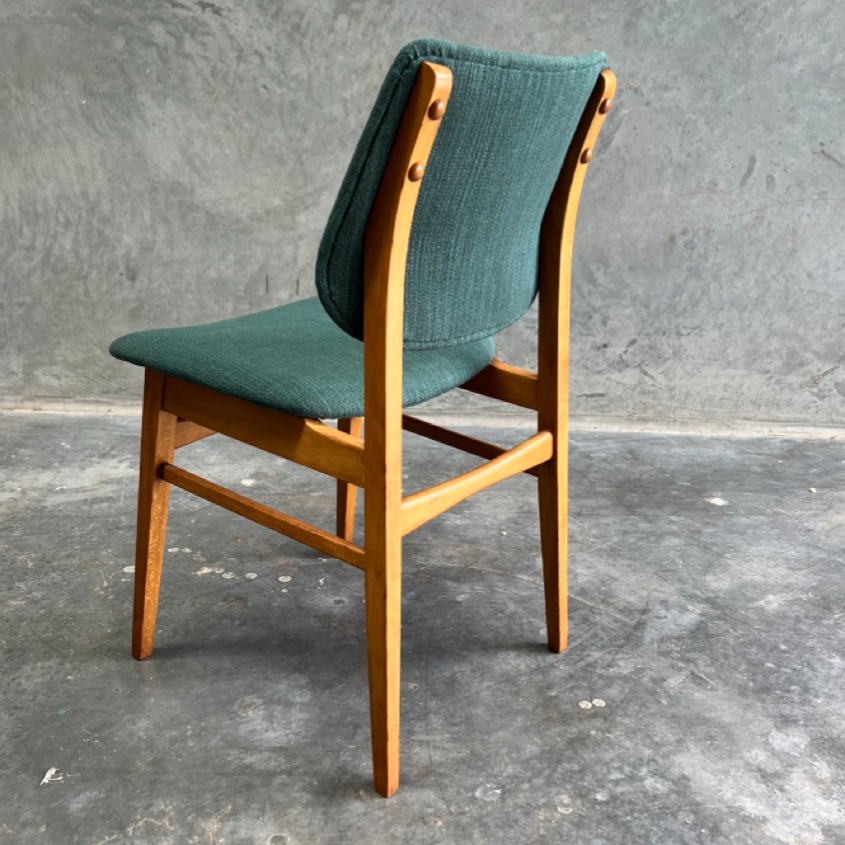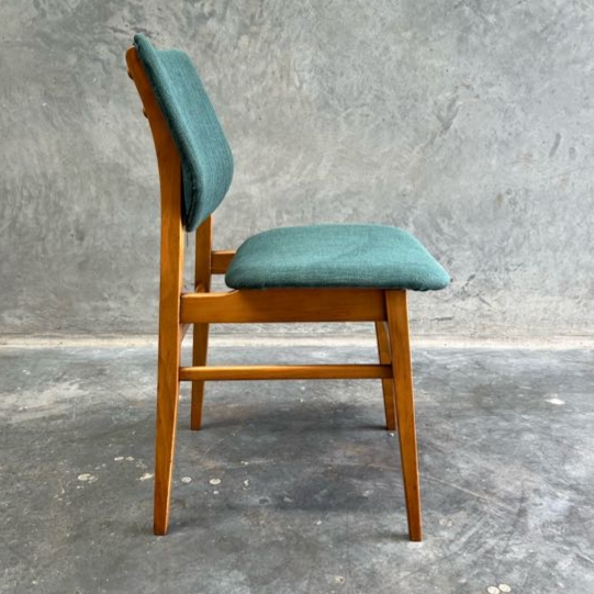 Elevate your dining space with this stylish set of 4 vintage dining chairs. Freshly restored timber frame and newly upholstered seats and backs in a tasteful teal fabric from Linia. These chairs blend mid-century charm with everyday comfort. Solid and well-crafted, they’re perfect for adding character to any dining room, studio, or café.
