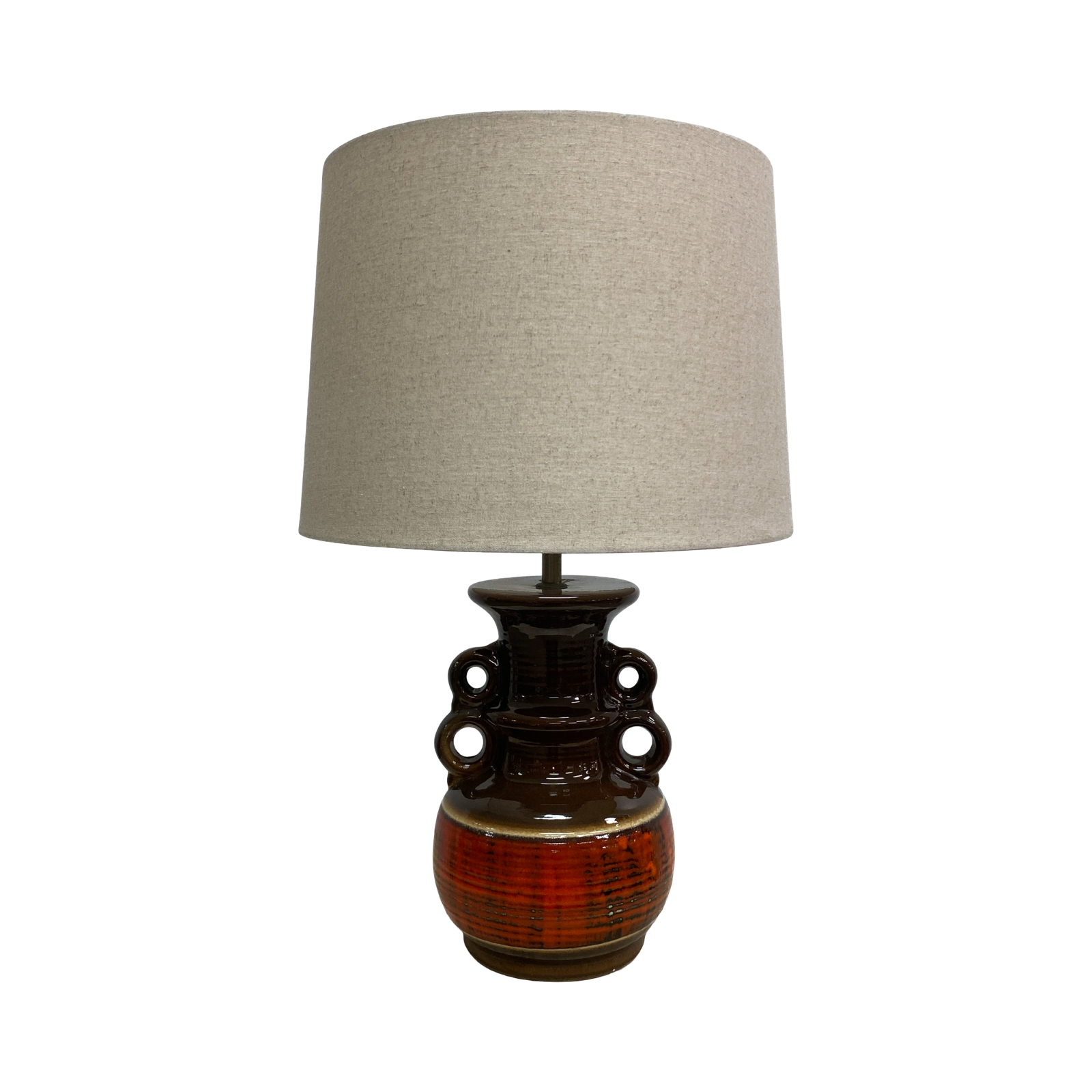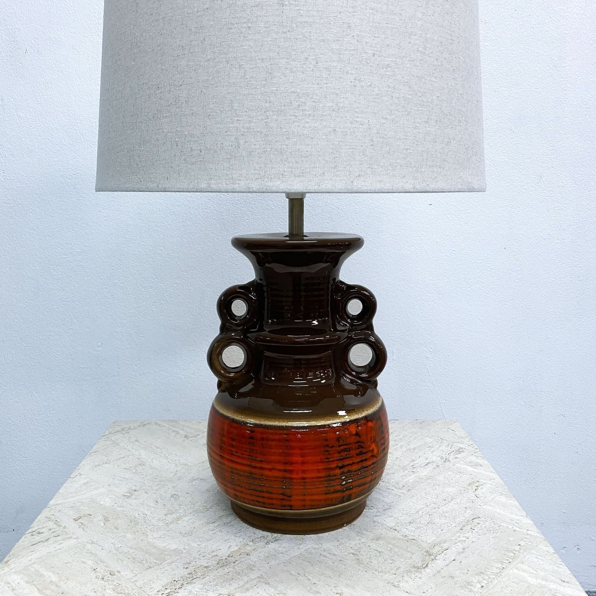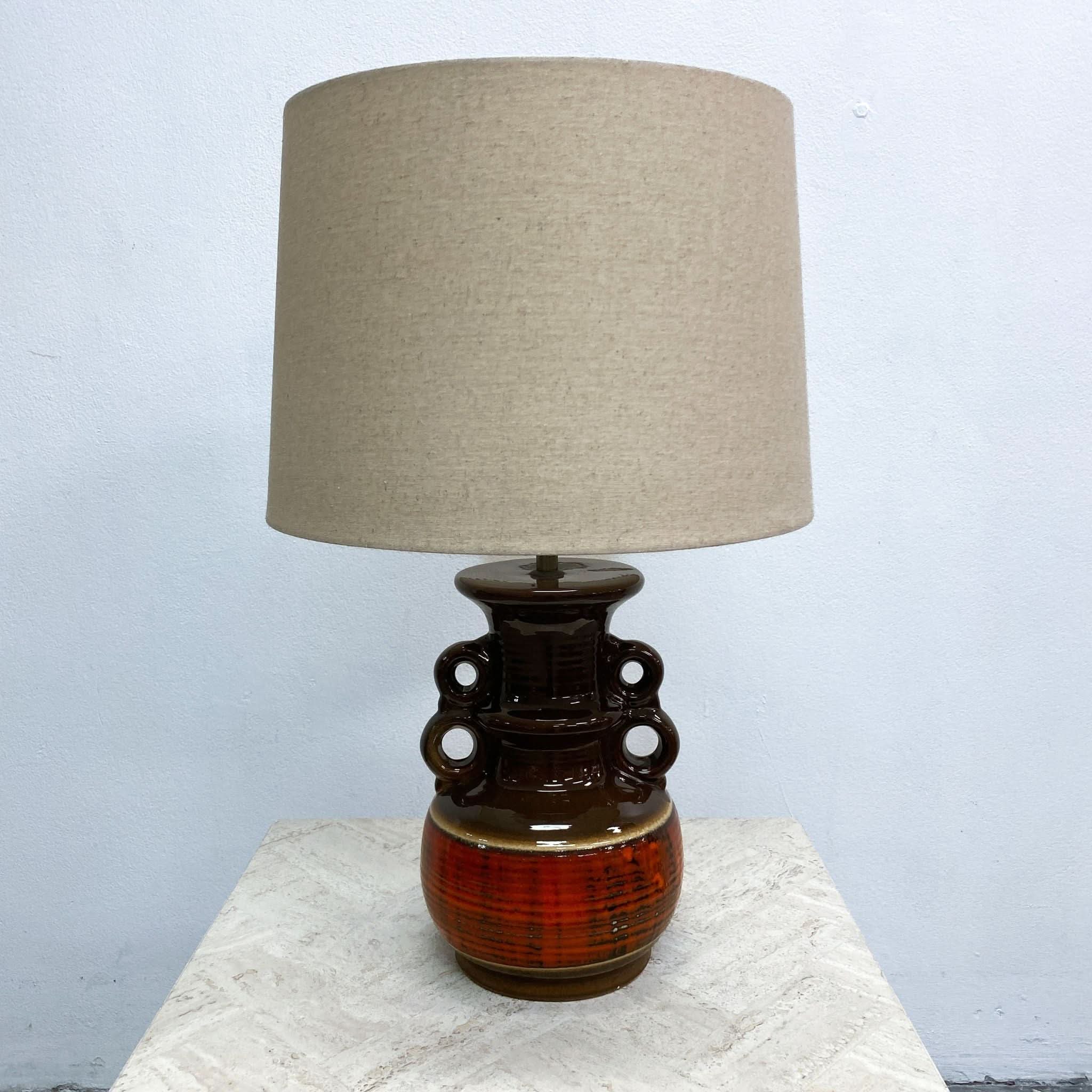 Fabulous mid century West German ceramic table lamp base, with thick 'fat lava' glaze, in brown and orange tones.  In very good original condition.