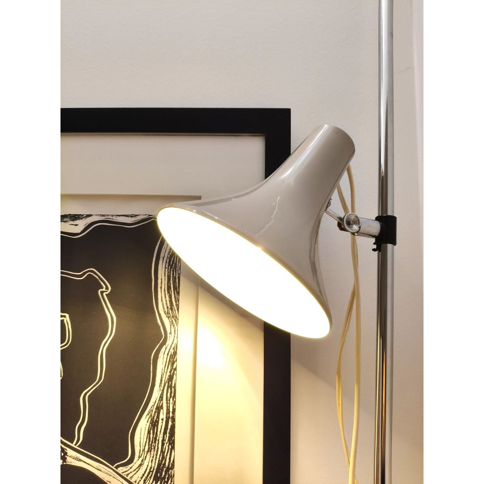 Measuring at 2.3m but can be taken apart for storage and transport. See last picture. Lamp shade colour is a neutral pale grey.