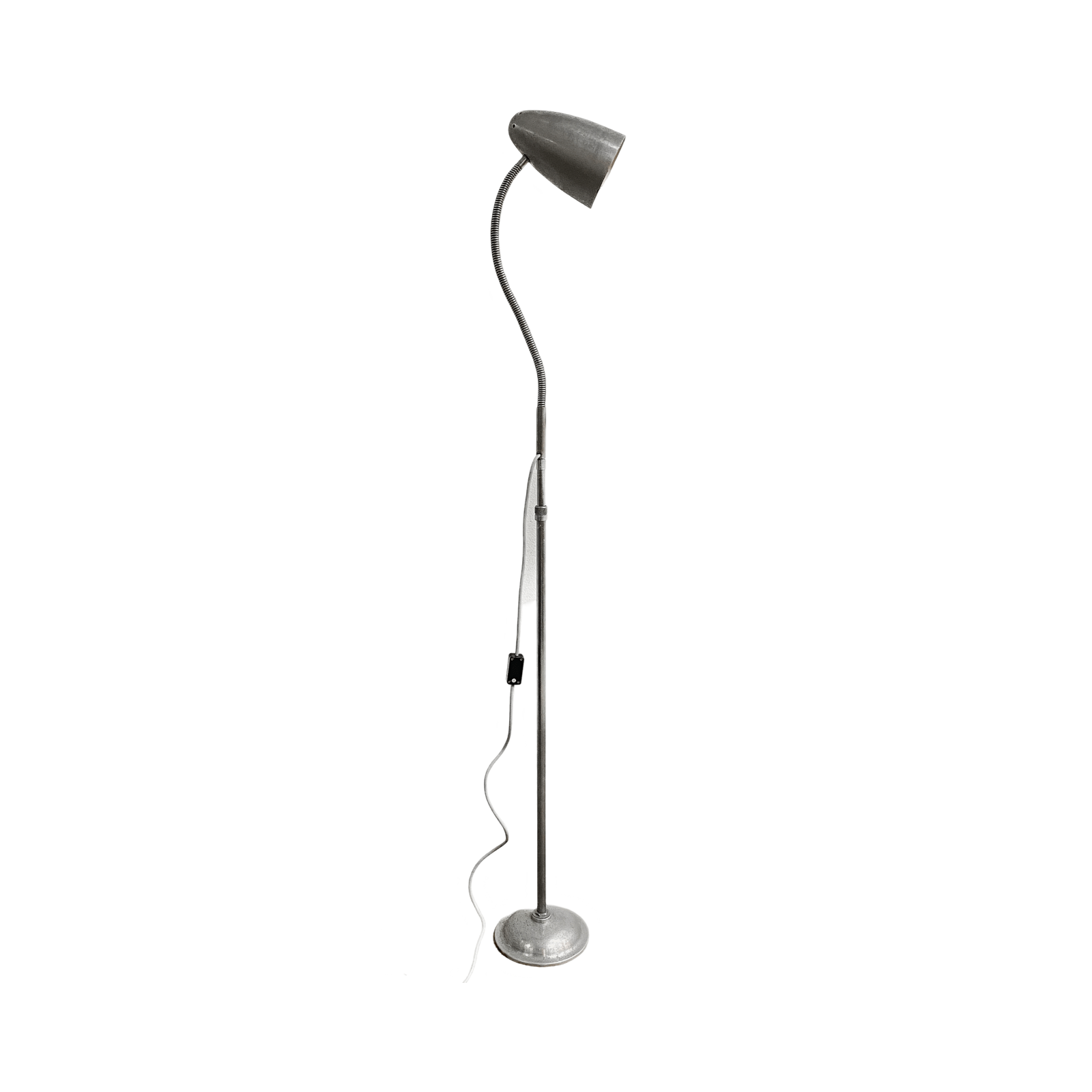 Featuring a spun aluminium bullet shade on a goose neck and a telescopic stainless steel stand. In good vintage condition with signs of use commensurate with age.