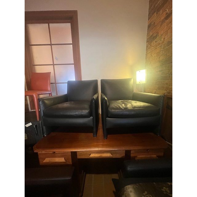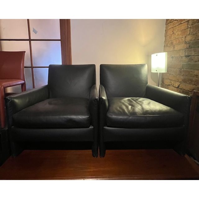 A pair of FULL-GRAIN leather armchairs designed by prolific designer, Rodolfo Dordoni for Minotti. These retailed new for around $14,000 pair only a few years ago. I can hear a swarm of people reacting to this in shock, wondering how they could get away with such prices when this type of design is not that much different to lots of other furniture out there. The truth is they don’t just get away with these prices, this Italian business has grown internationally since its inception in 1948. Minotti has been in business for over 70 years now- they must be doing a lot right! When you experience their work in the flesh it becomes plainly obvious why they have prospered. The quality is just breath-taking. These chairs are HEAVY- I can’t see any reason why these frames won’t last forever. That’s what you’re paying for when you invest in Minotti- TIMELESS, sophistication that will be passed onto future generations. If looked-after with some sense, these chairs will be more than a lifetime investment (or more).