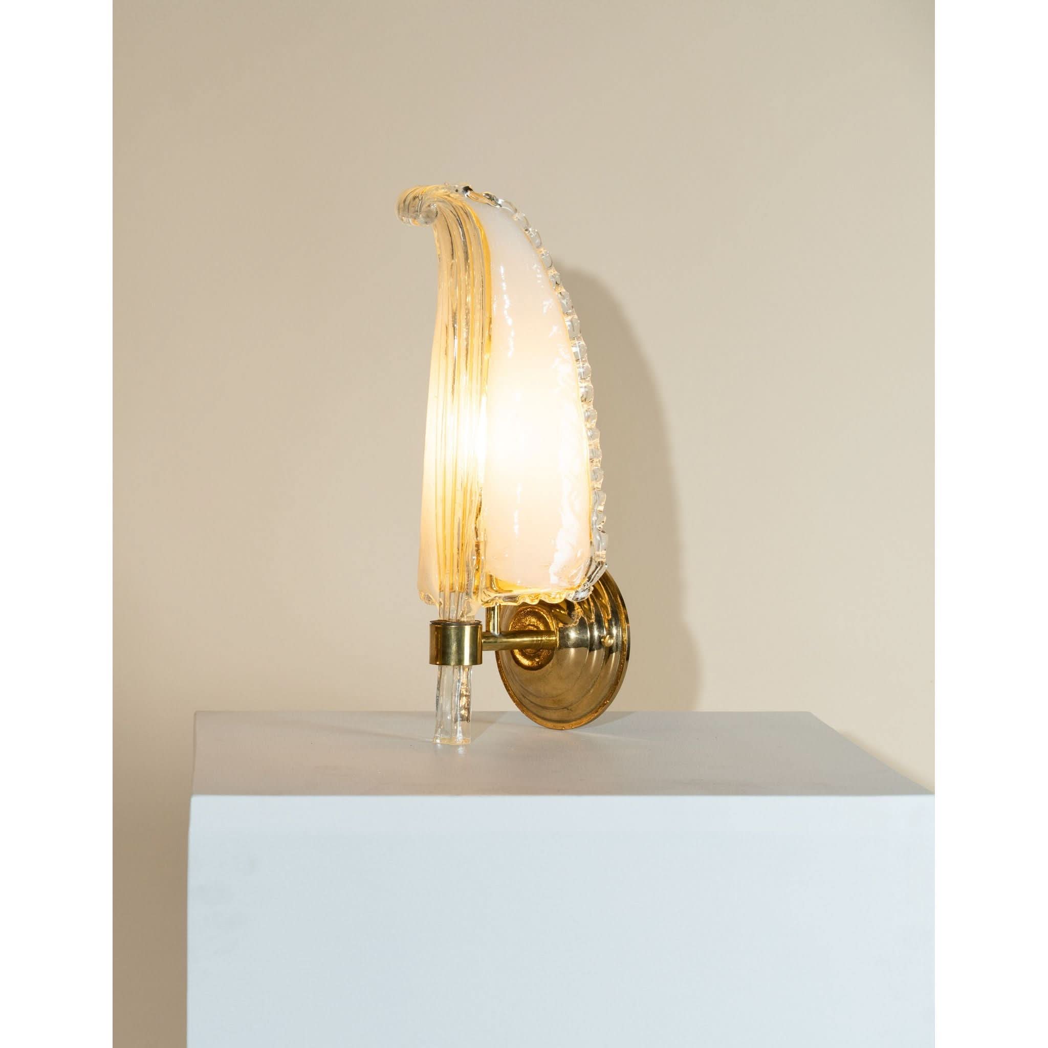 Custom made Murano leaf sconce. Frame from Italy. Solid brass parts.