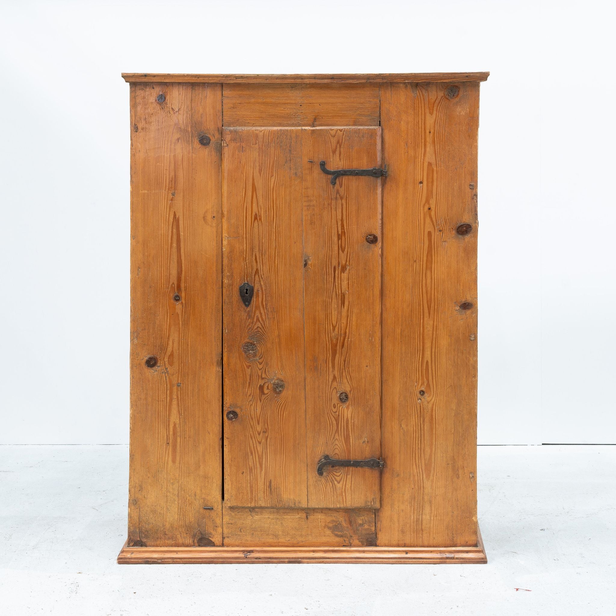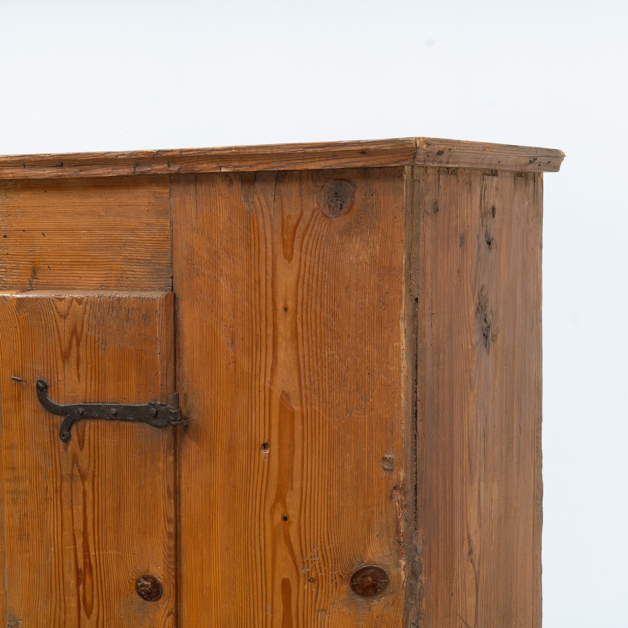 Rustic travail populaire Alpine cabinet made from solid wood in the early 19th century. This organic travail populaire cabinet provides sufficient space to store and display various items. Would be ideal as a wardrobe in a bedroom or hallway, providing a touch of authenticity and a warm atmosphere. This piece is in good original condition and reflects a warm and cosy feeling, ideal to give your interior extra character.