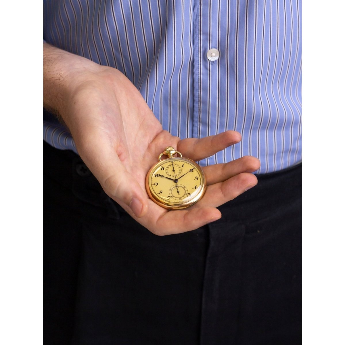 A fine 18k yellow gold fob watch by Girard Perregaux from the turn of the 20th century. The reverse of the piece is engraved with an inscription suggesting it was gifted in 1924 to Ragnar A. Hummel, former chairman of the board and director of the Lone Star Cement Corporation.
