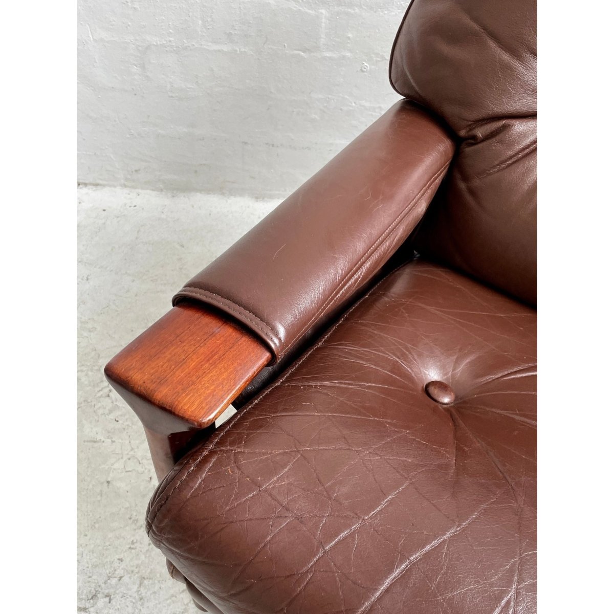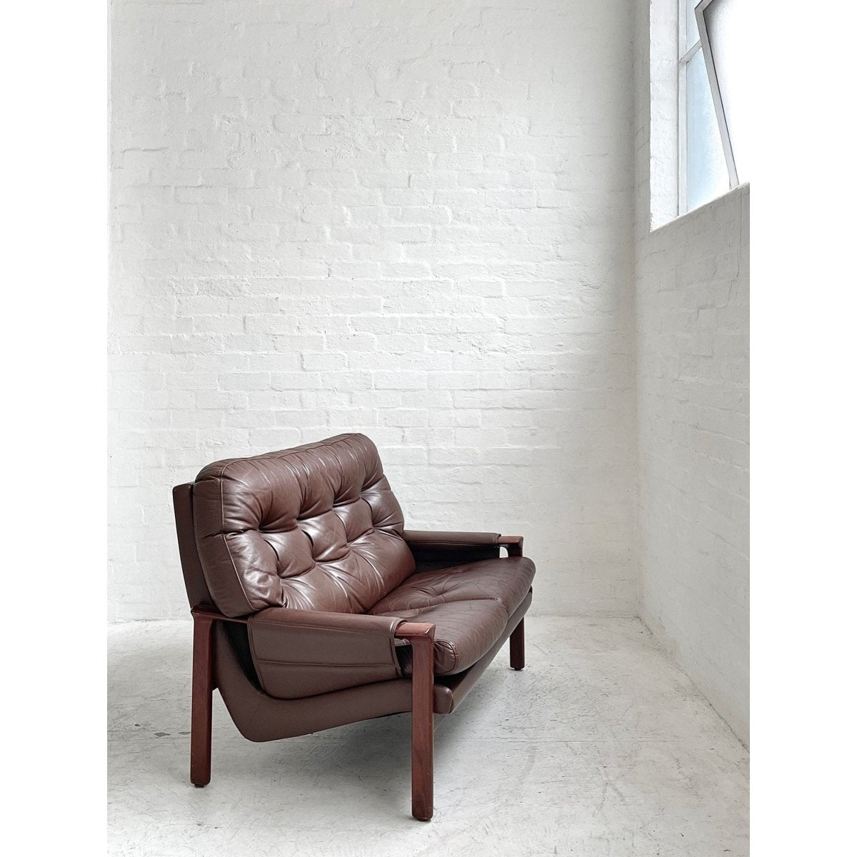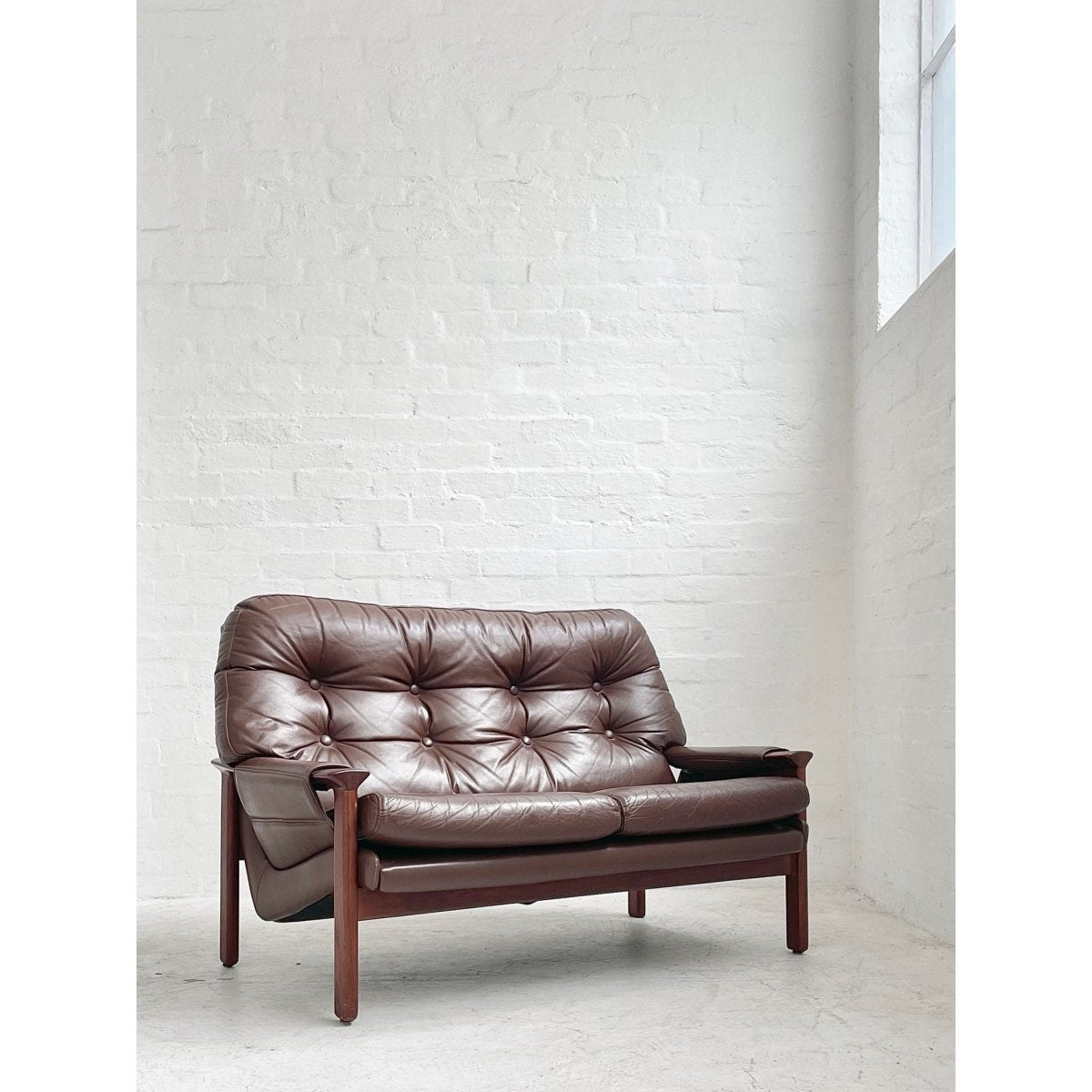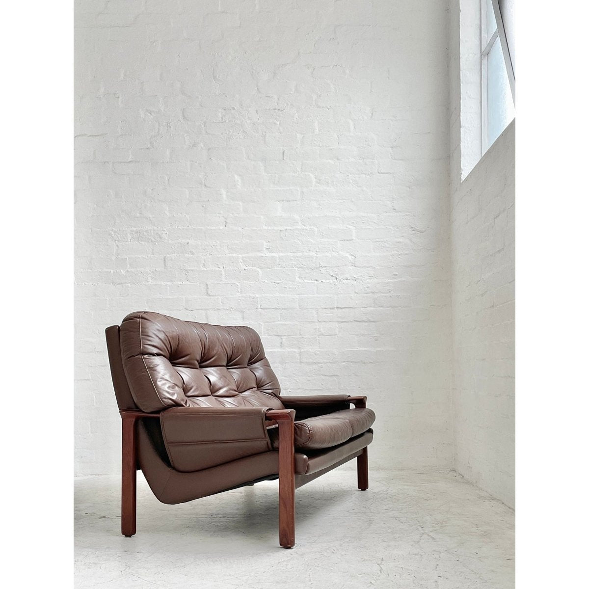 With black leather upholstery. Designed by Fred Lowen. In excellent vintage condition.
