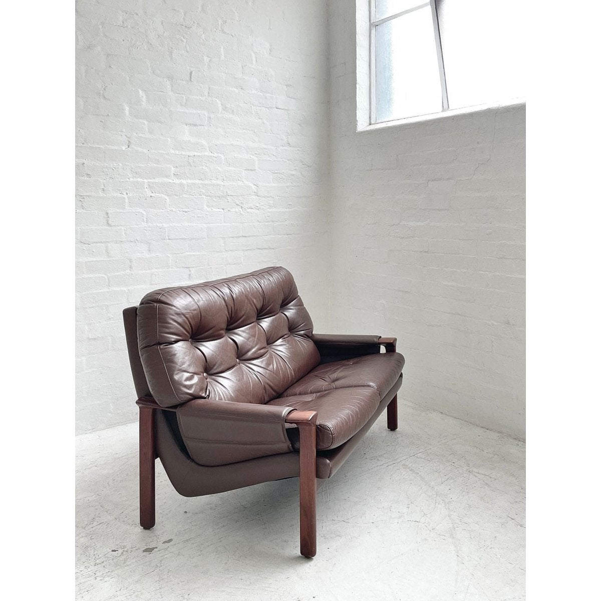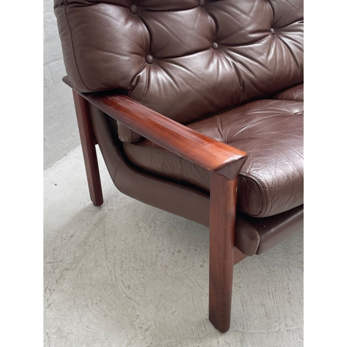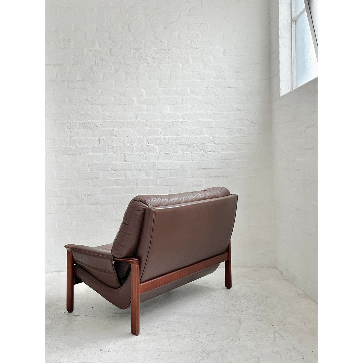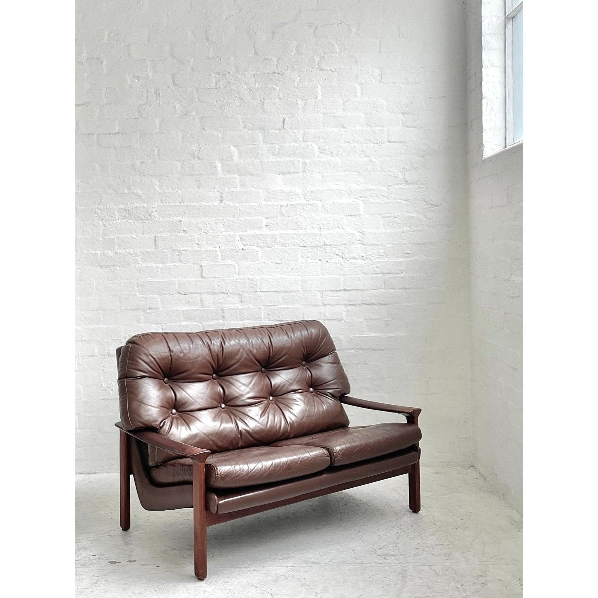With black leather upholstery. Designed by Fred Lowen. In excellent vintage condition.