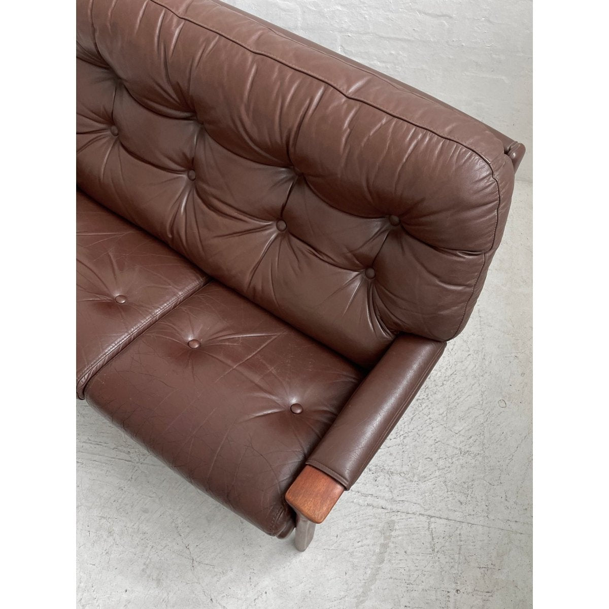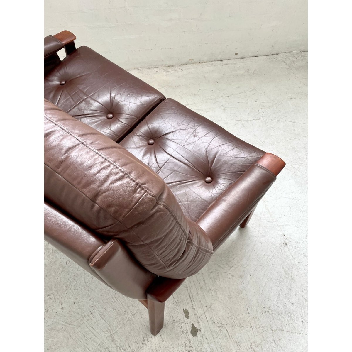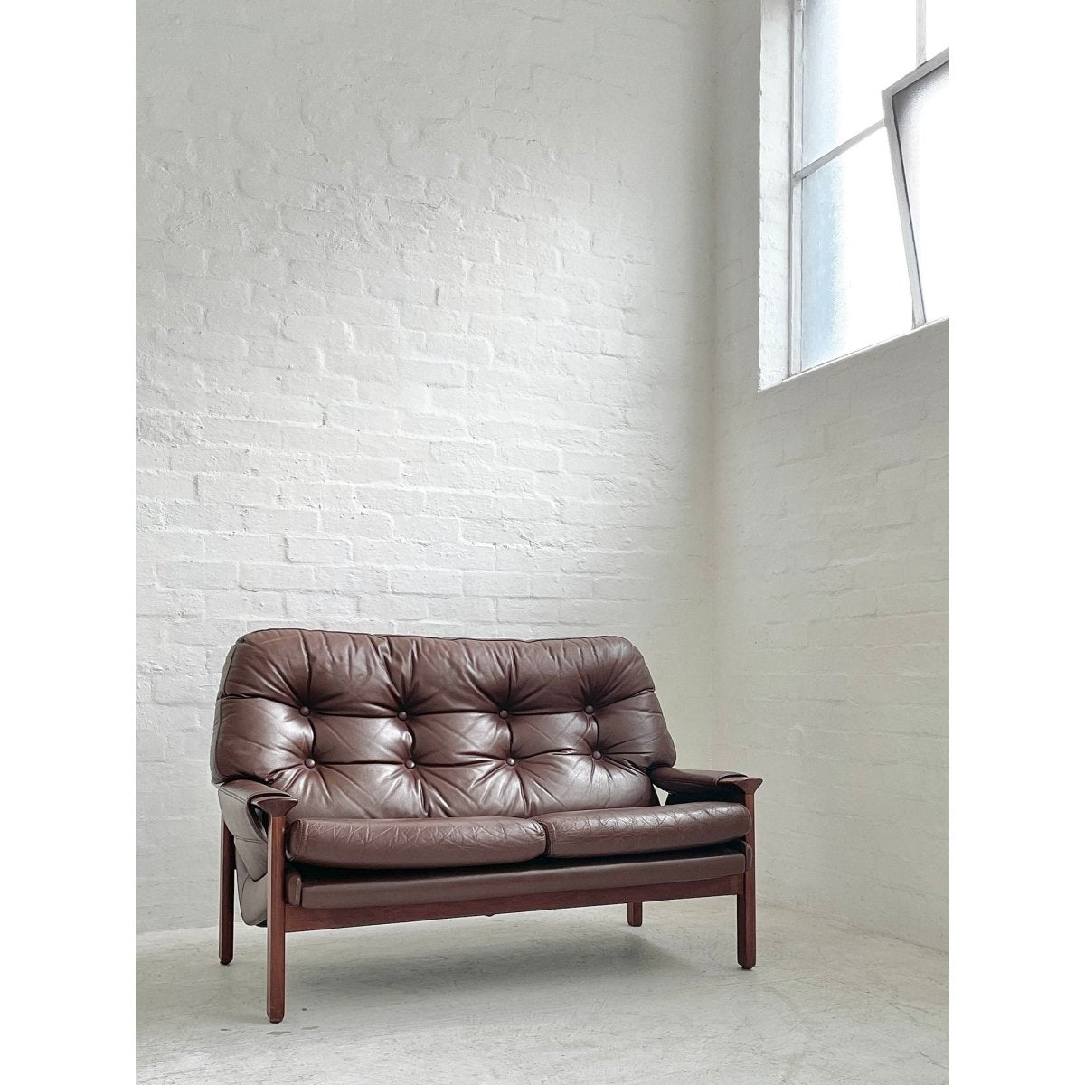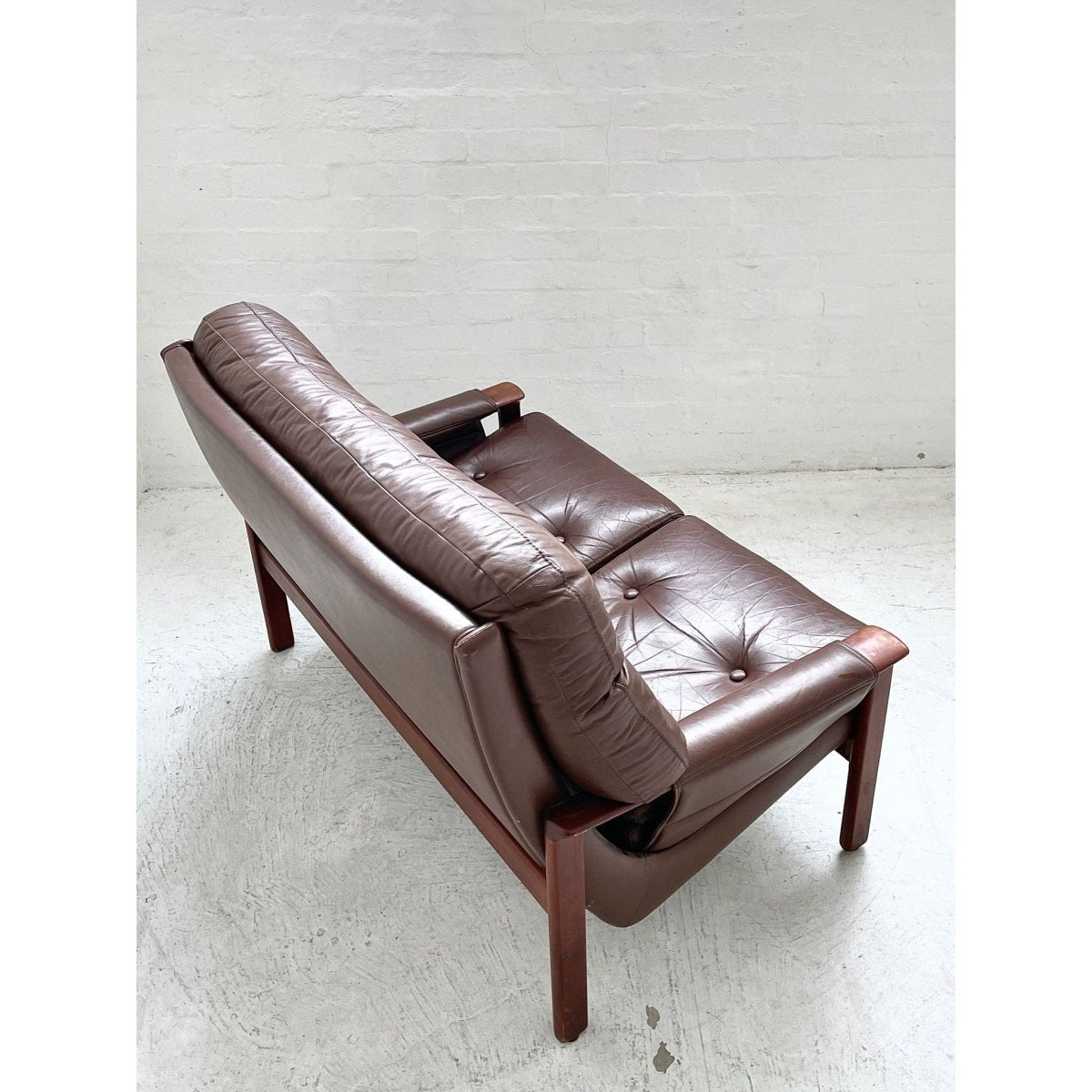 With black leather upholstery. Designed by Fred Lowen. In excellent vintage condition.