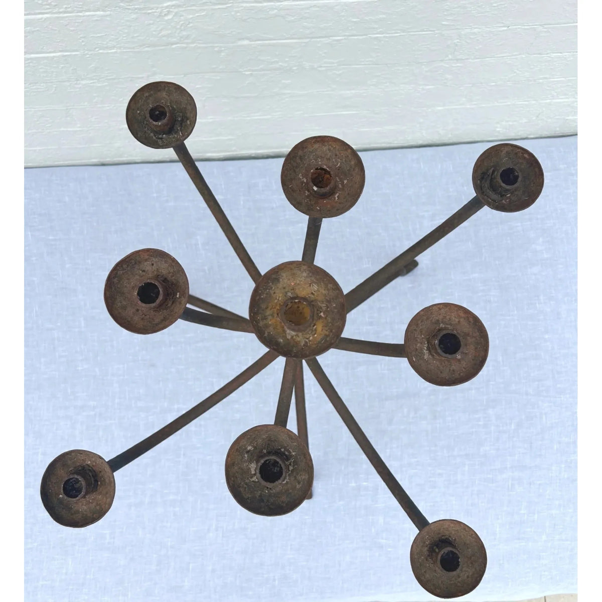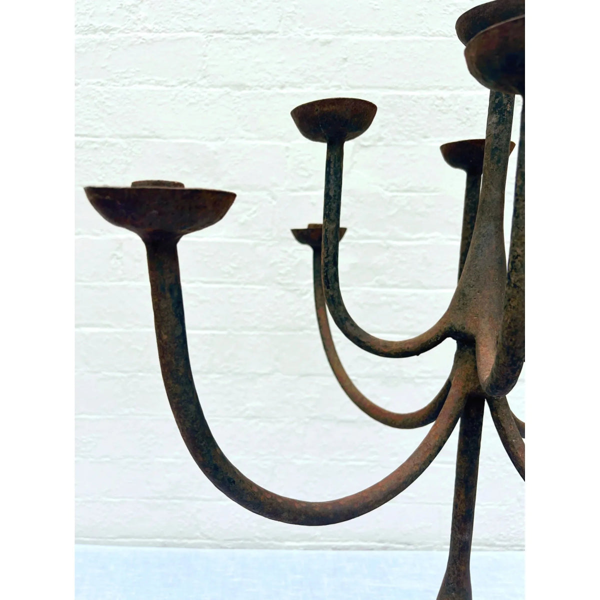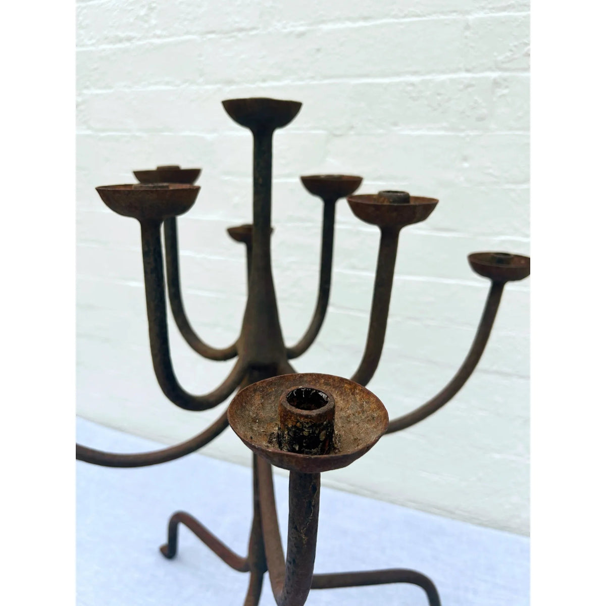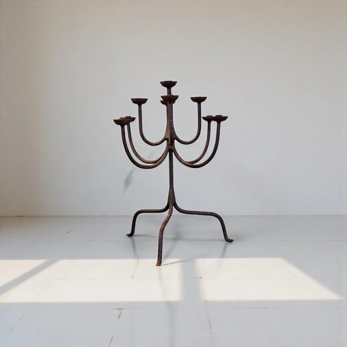 A vintage cast iron candelabra features nine candle holders and a beautifully aged patina. Standing 75cm tall, this striking piece has a sculptural presence that feels both bold and timeless. Its weathered surface tells the story of its past, adding authentic charm and texture to any setting. Sold as found with no restoration work undertaken, it’s a piece that celebrates its original character.