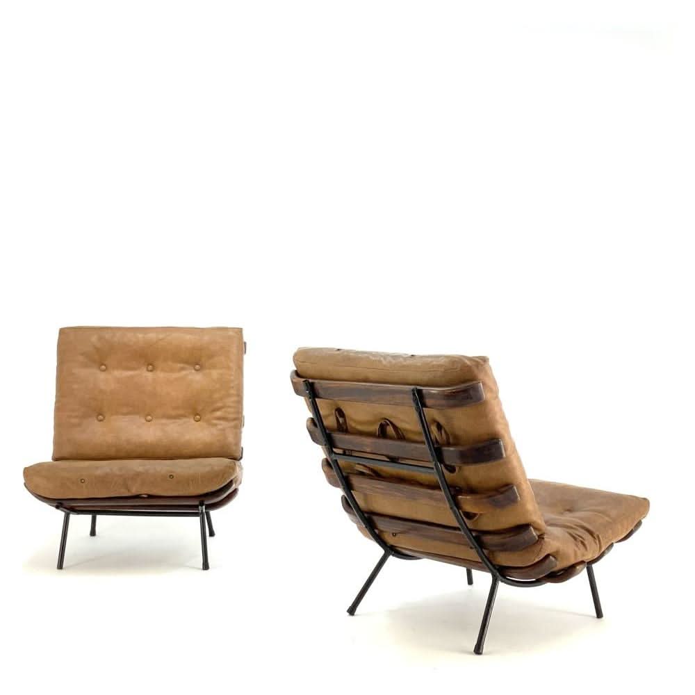 Hauner and Eisler’s designs are characterized by the use of Brazilian woods, thin tubular frames and range from furniture, to ceramics and textiles. Some of their most famous designs are the concha / haia chair (in English often referred to as ‘shell’ chair) and the ‘Costela’ lounge chair.