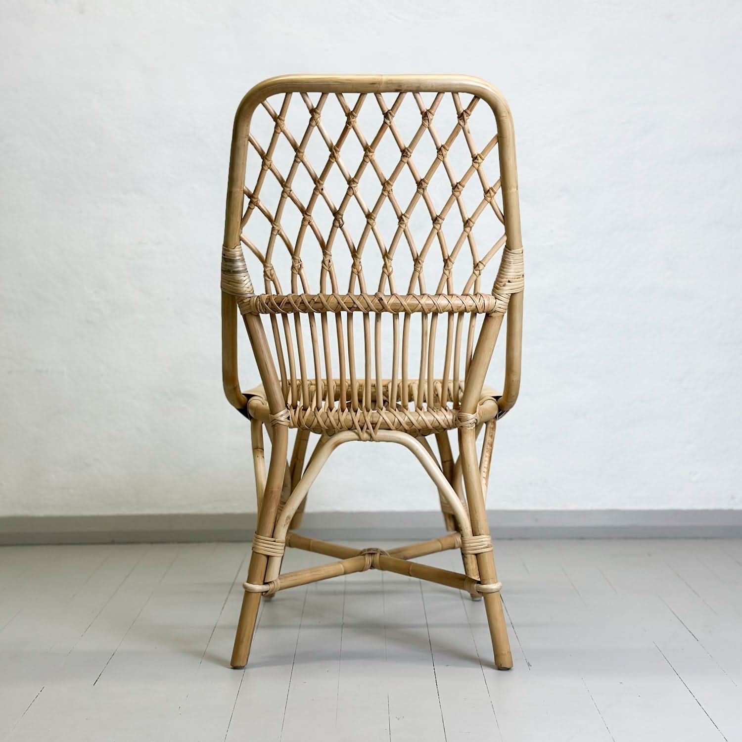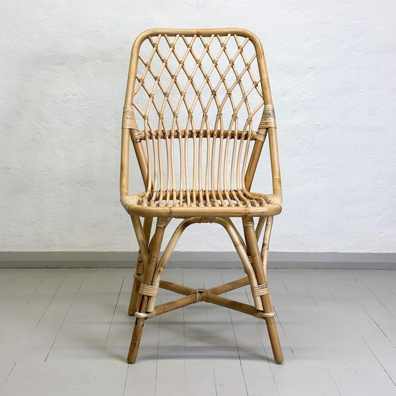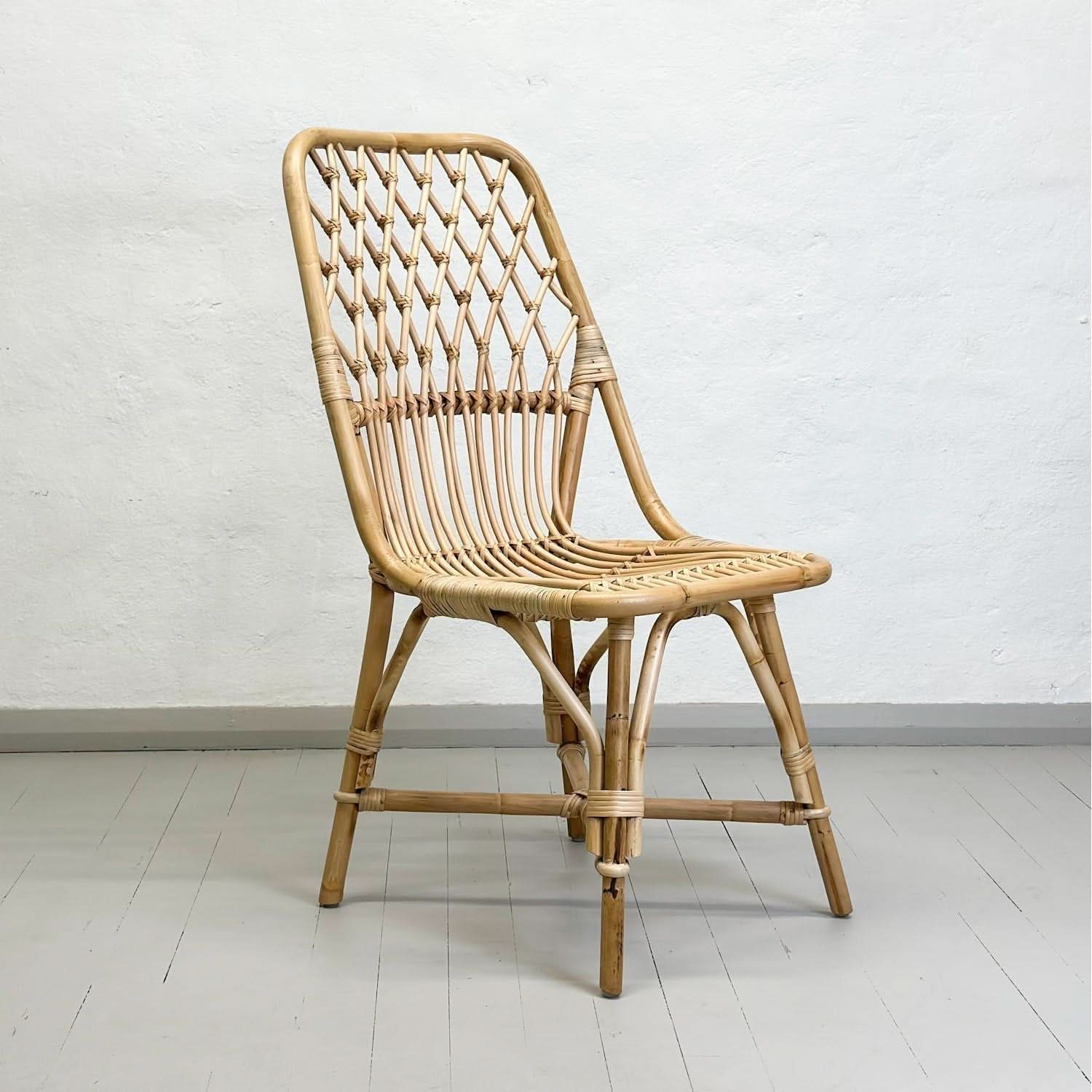 With its woven cane patterns and timeless design, this cane chair evokes a sense of refined nostalgia and will perfectly complement a bohemian, eclectic, colonial or tropical aesthetic in equal stead. With its enduring design, this chair effortlessly adds a touch of vintage charm to your space.