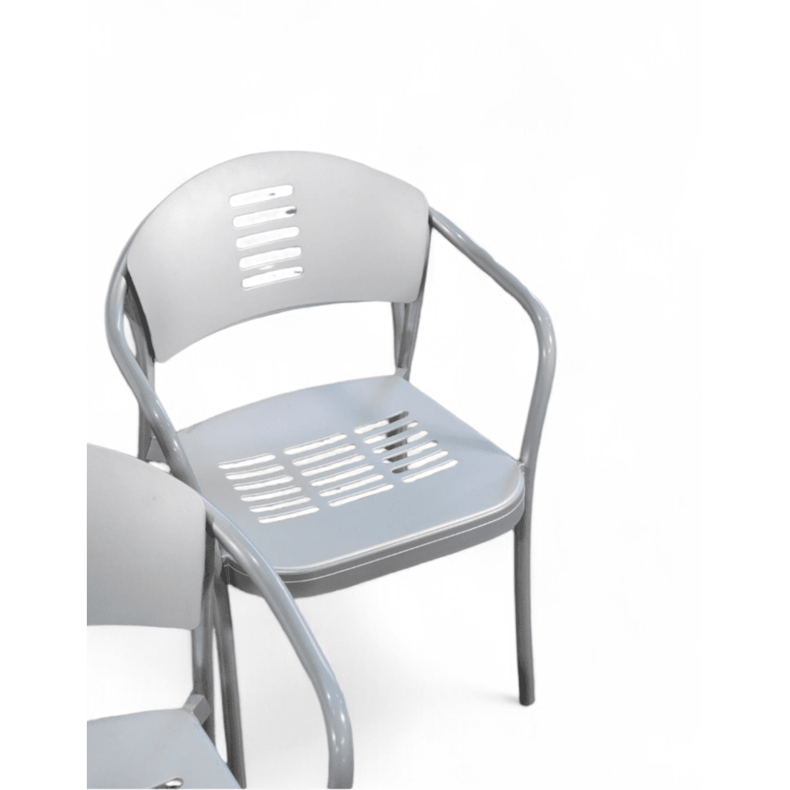 Characterised by their softly curved aluminium frames and perforated backrests, the Mauna-Kea chair was conceived as a lightweight, stackable solution for both interior and exterior use.