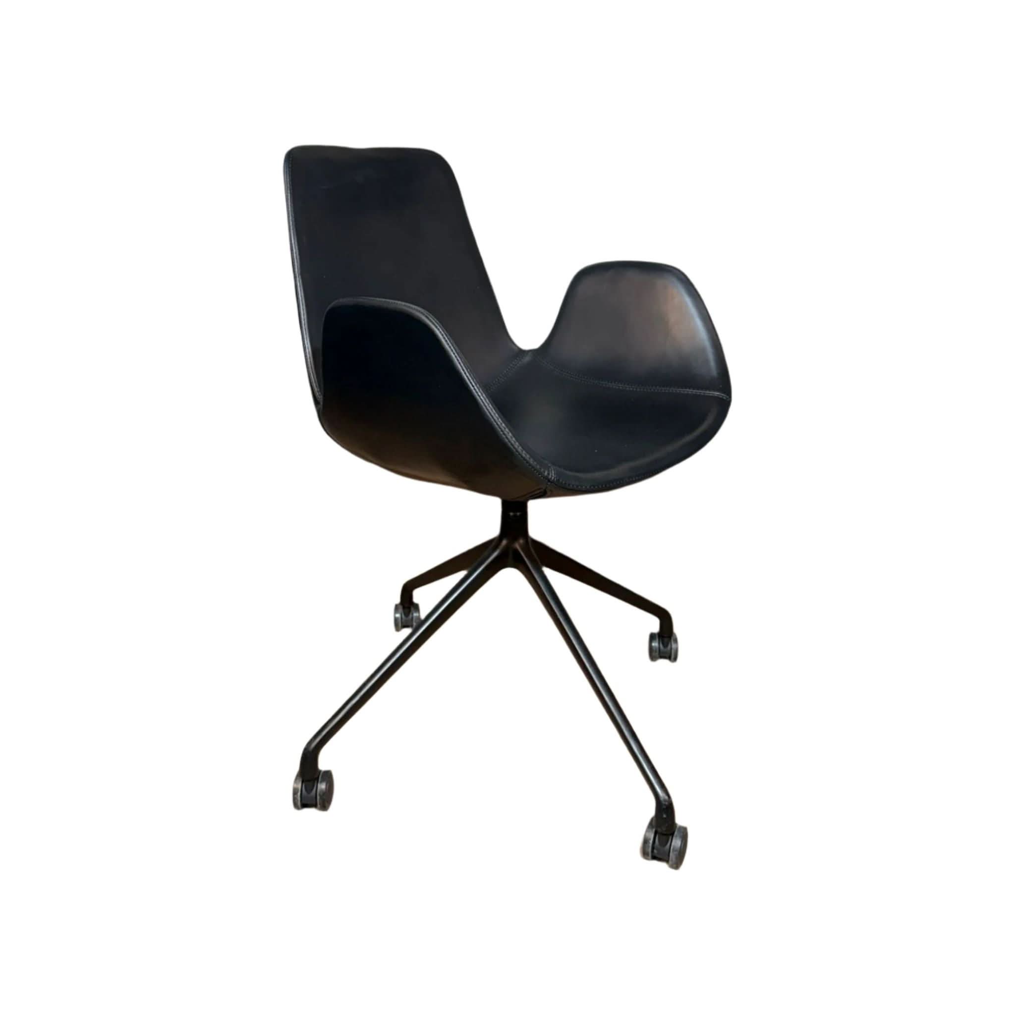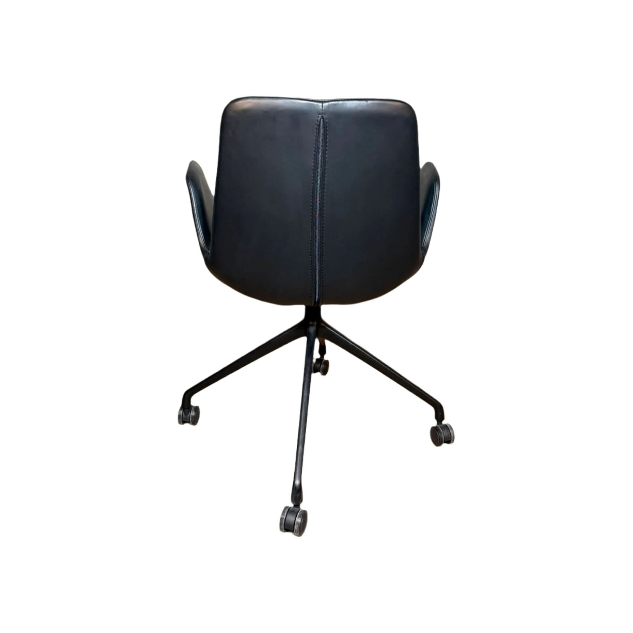 Crafted with premium black leather that invites you to settle in, the Cloud Swivel Chair features a sumptuously curved shell that cradles your body, offering superior support through your busiest days. The robust, powder-coated metal swivel base ensures effortless mobility across your space, while its integrated castors provide seamless movement without compromising on stability or elegance.