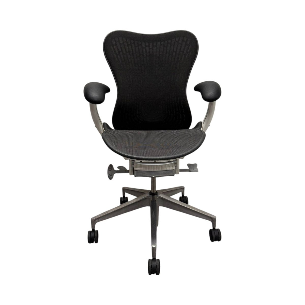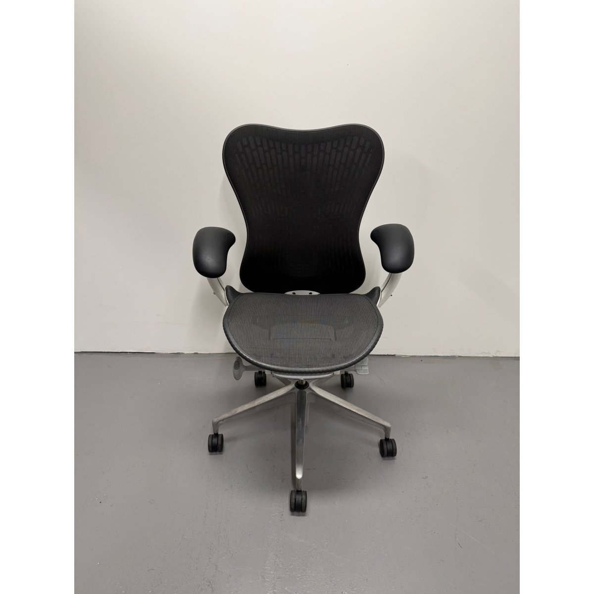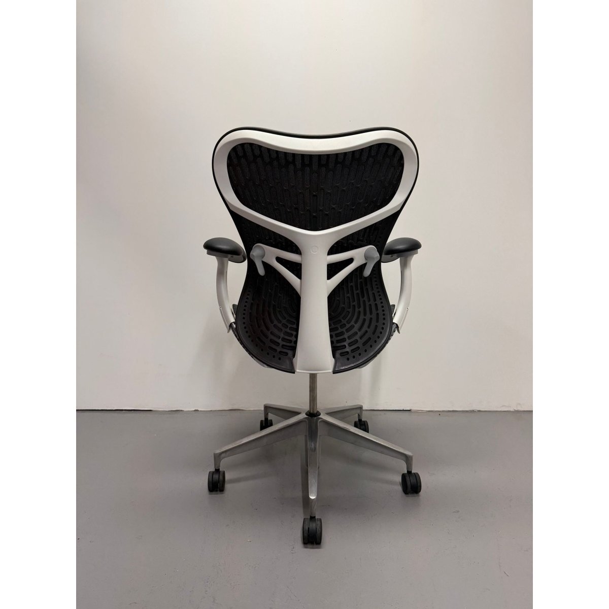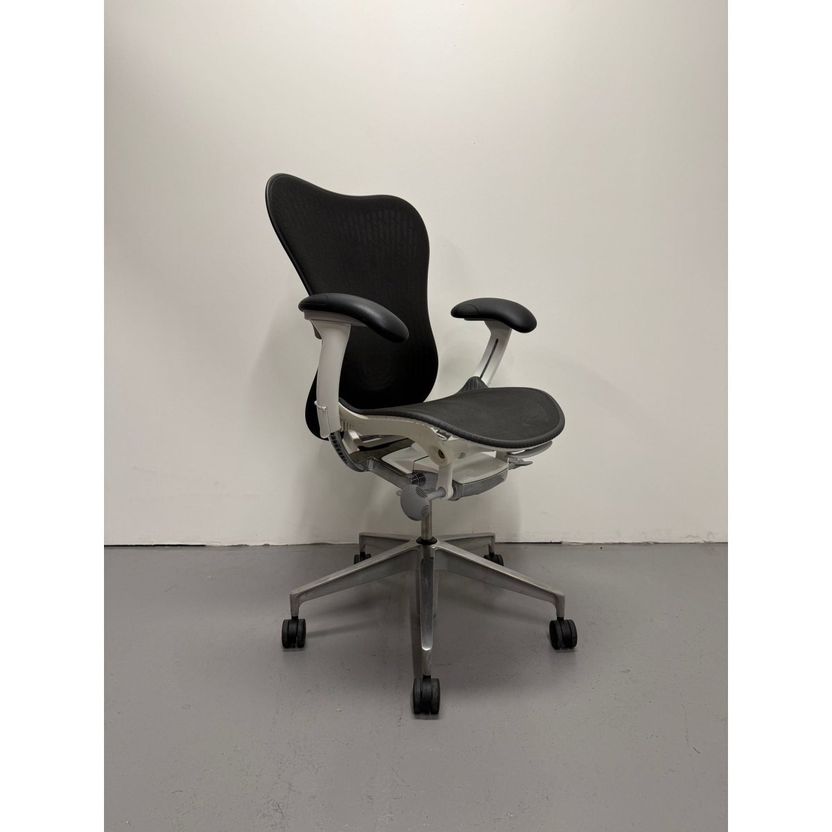 This model features the sought after Butterfly Back in Graphite, a hybrid design that combines fabric and polymer to create targeted flexibility and breathable comfort. Paired with a White frame and a custom chrome base upgrade, this chair delivers both standout performance and a premium aesthetic rarely seen on standard Mirra 2 configurations.