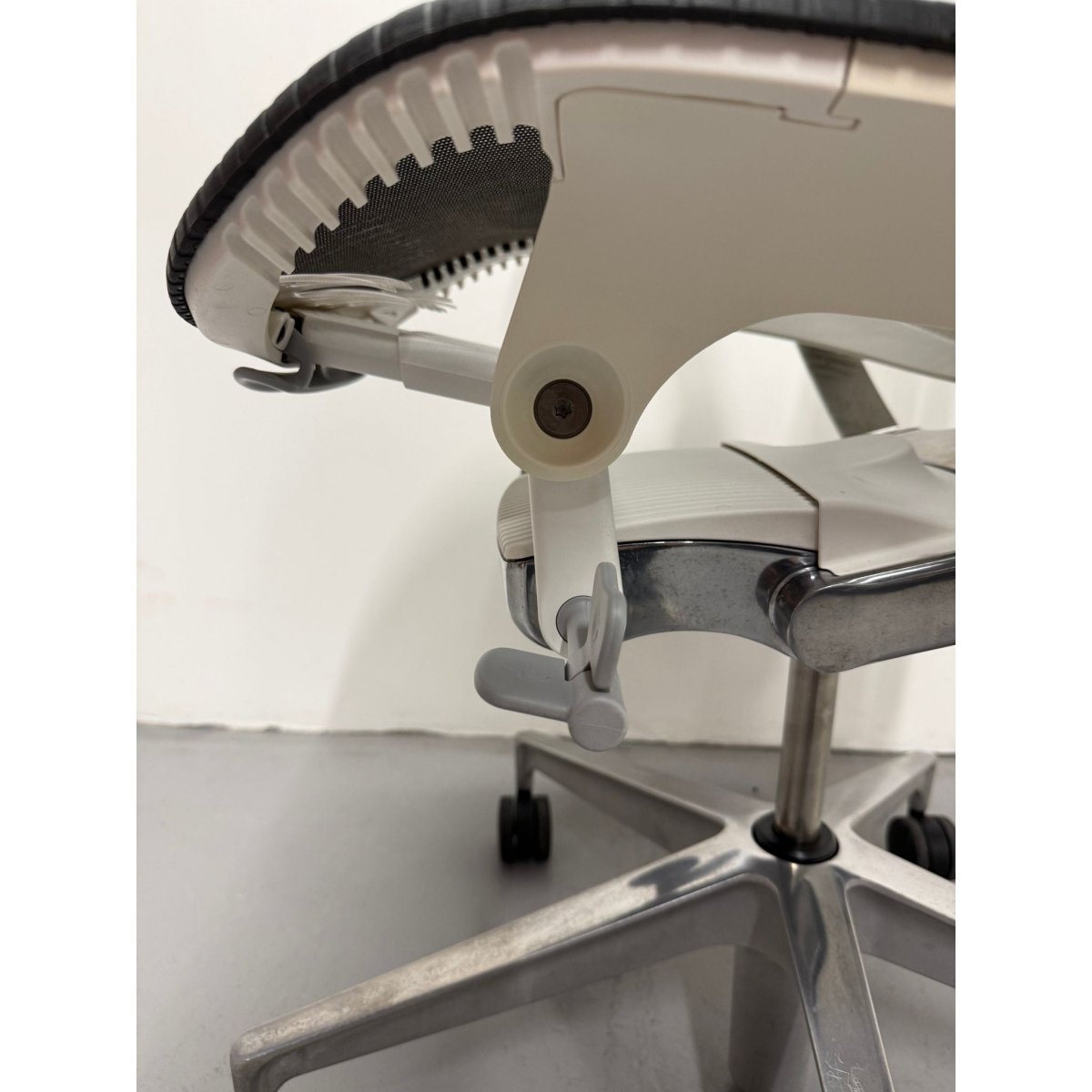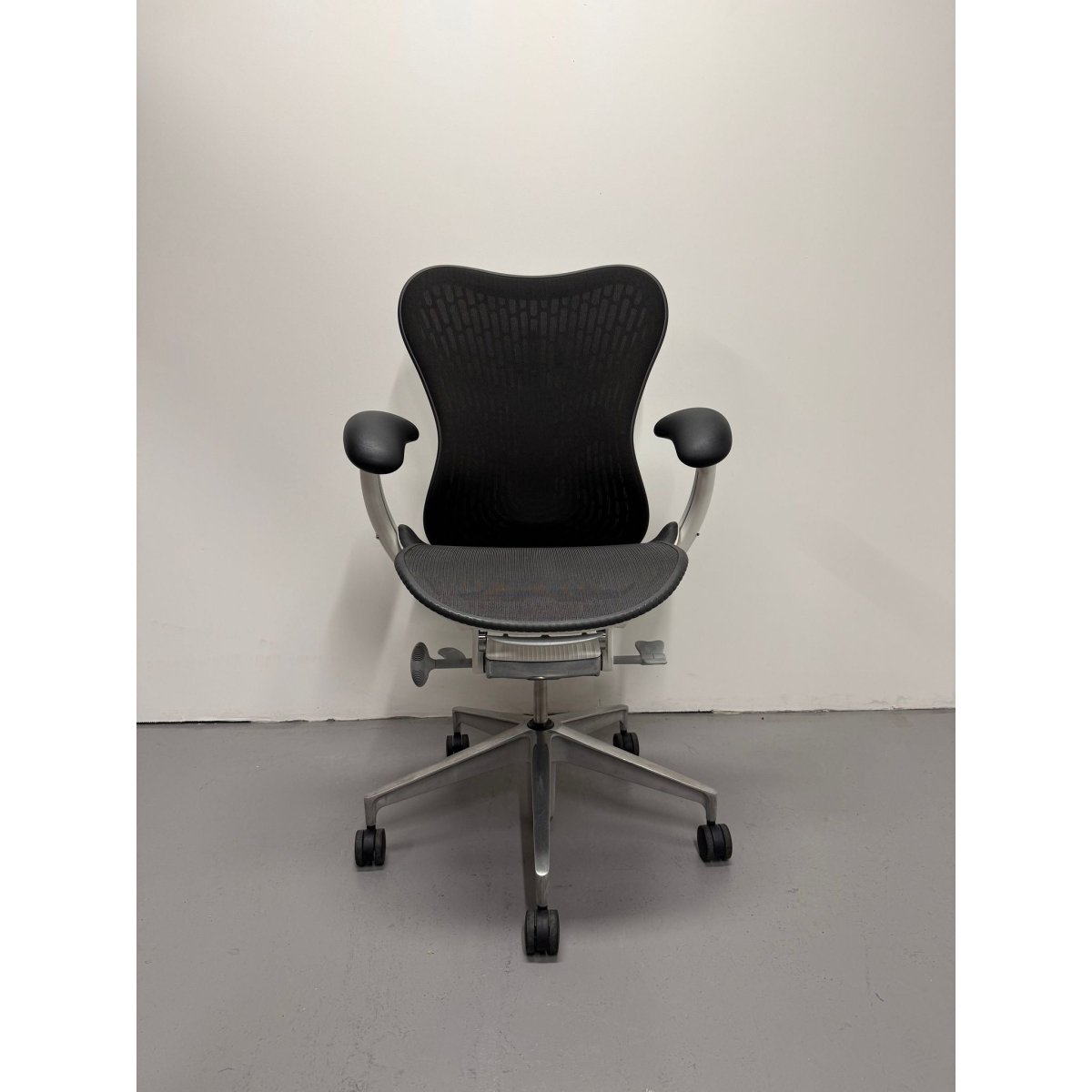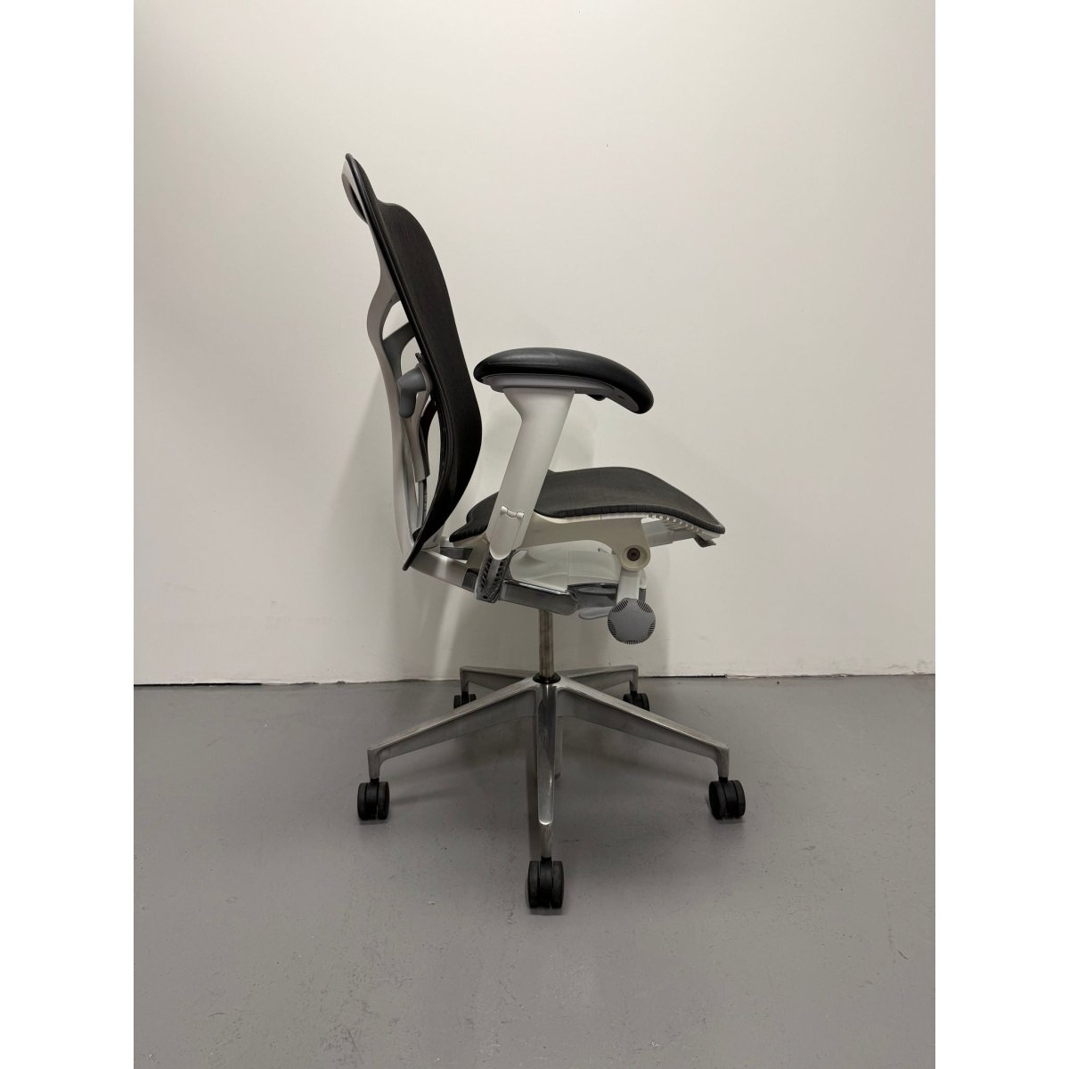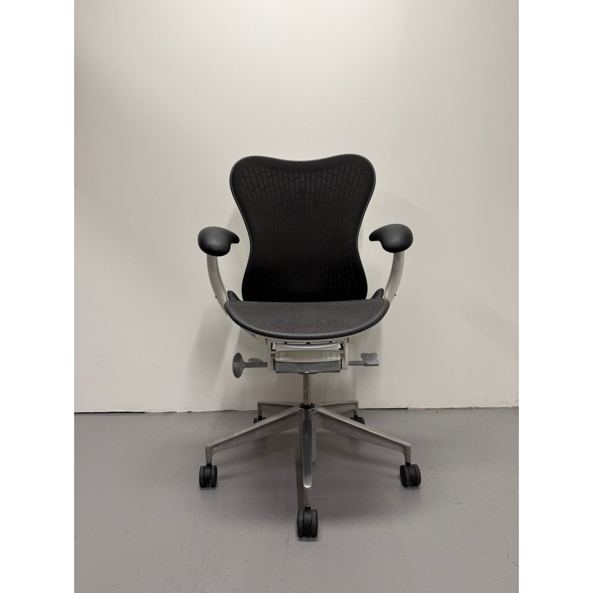 This model features the sought after Butterfly Back in Graphite, a hybrid design that combines fabric and polymer to create targeted flexibility and breathable comfort. Paired with a White frame and a custom chrome base upgrade, this chair delivers both standout performance and a premium aesthetic rarely seen on standard Mirra 2 configurations.
