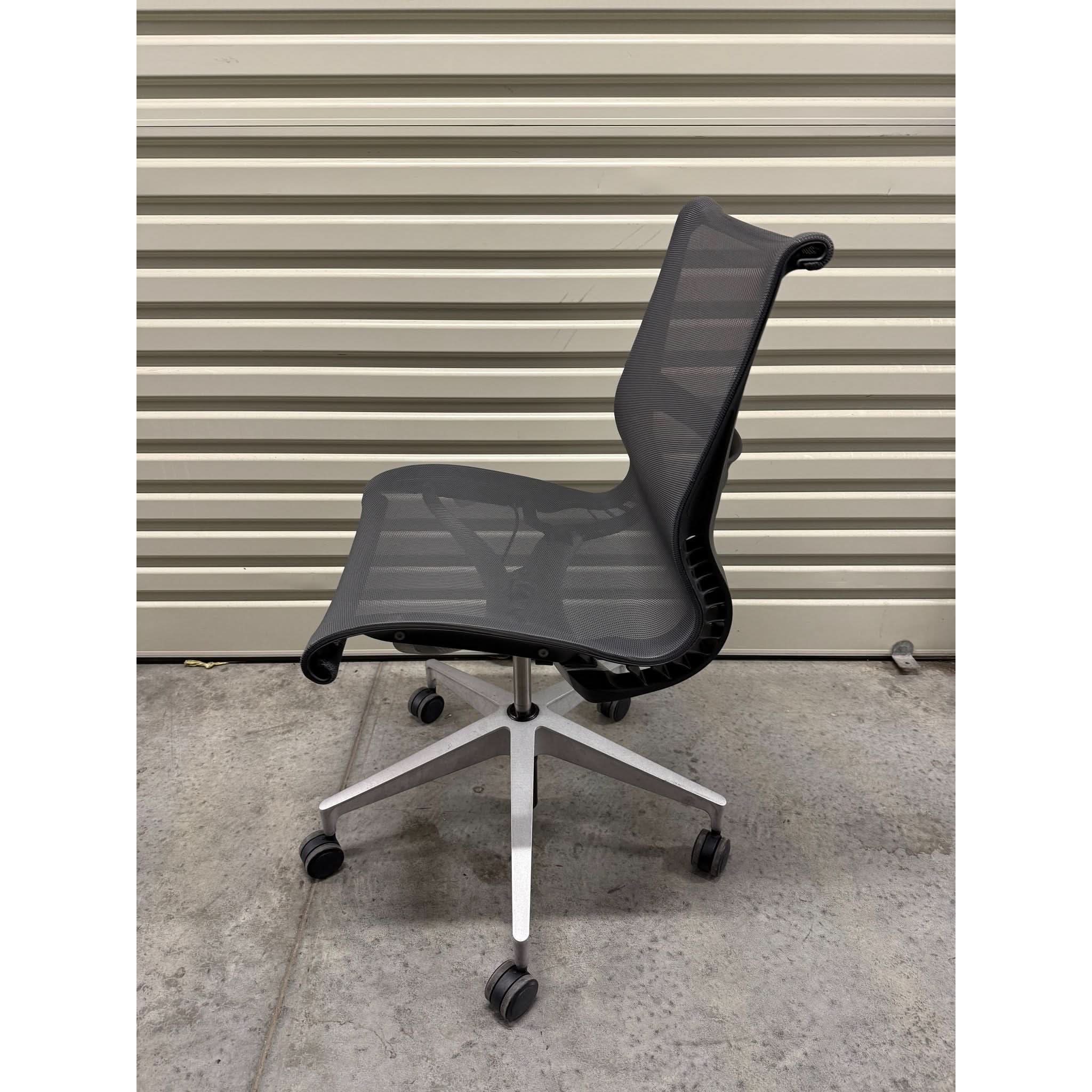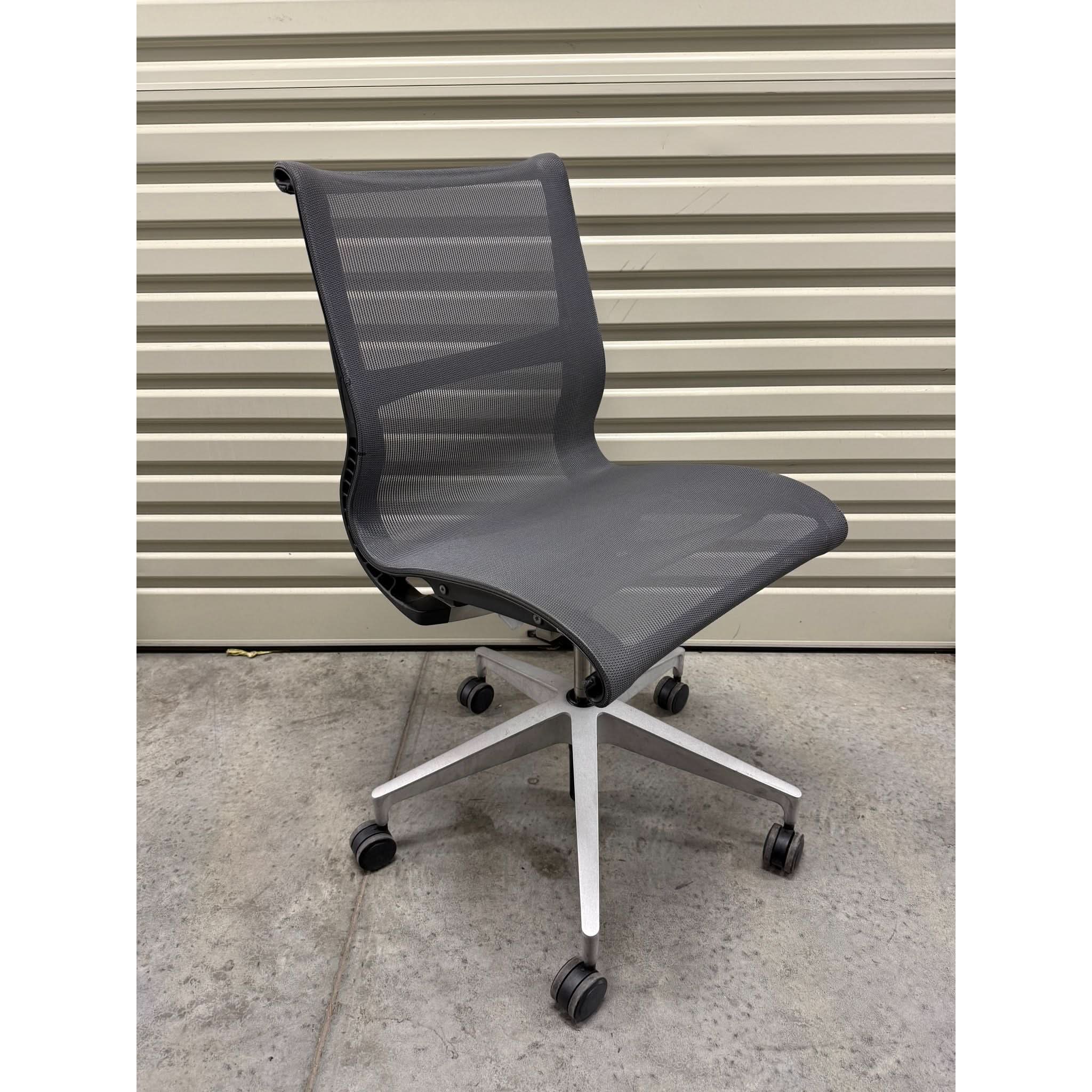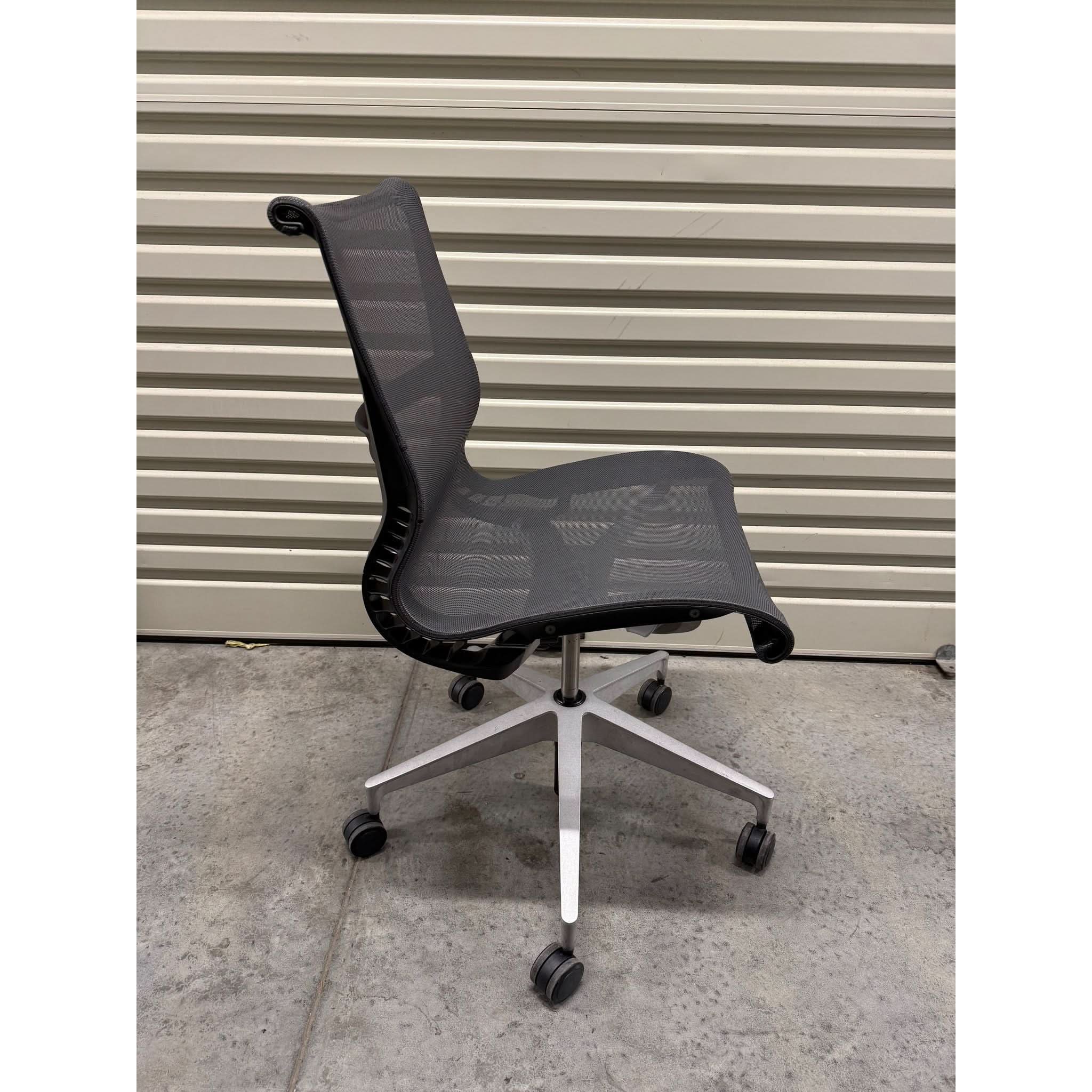The Herman Miller Setu Chair delivers effortless comfort with a minimalist design. This armless version enhances flexibility and movement, making it ideal for collaborative workspaces, home offices, and meeting rooms. The flexible one-piece Kinematic Spine™ adapts to your posture, while the breathable mesh seat and back ensure all-day support without the need for complex adjustments.