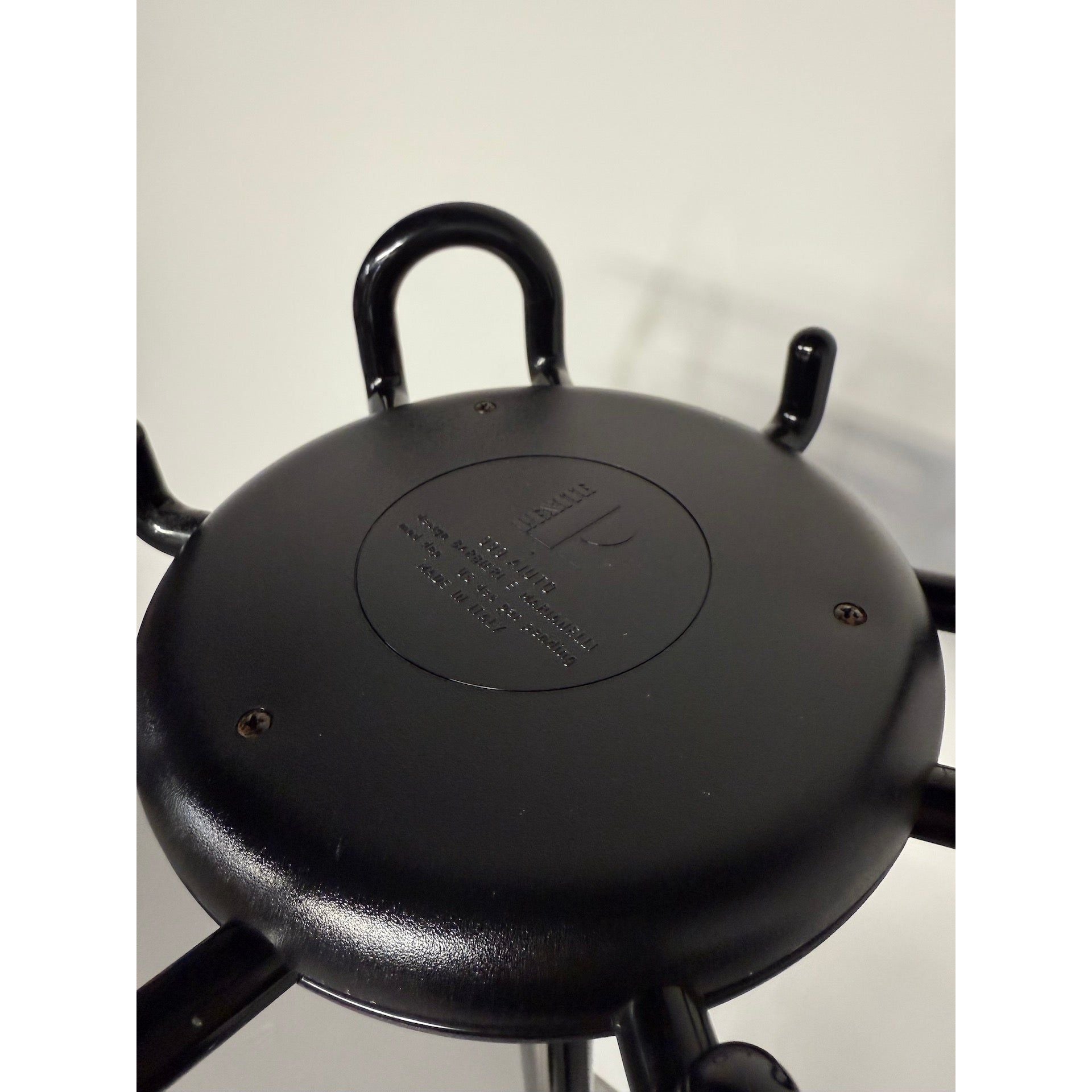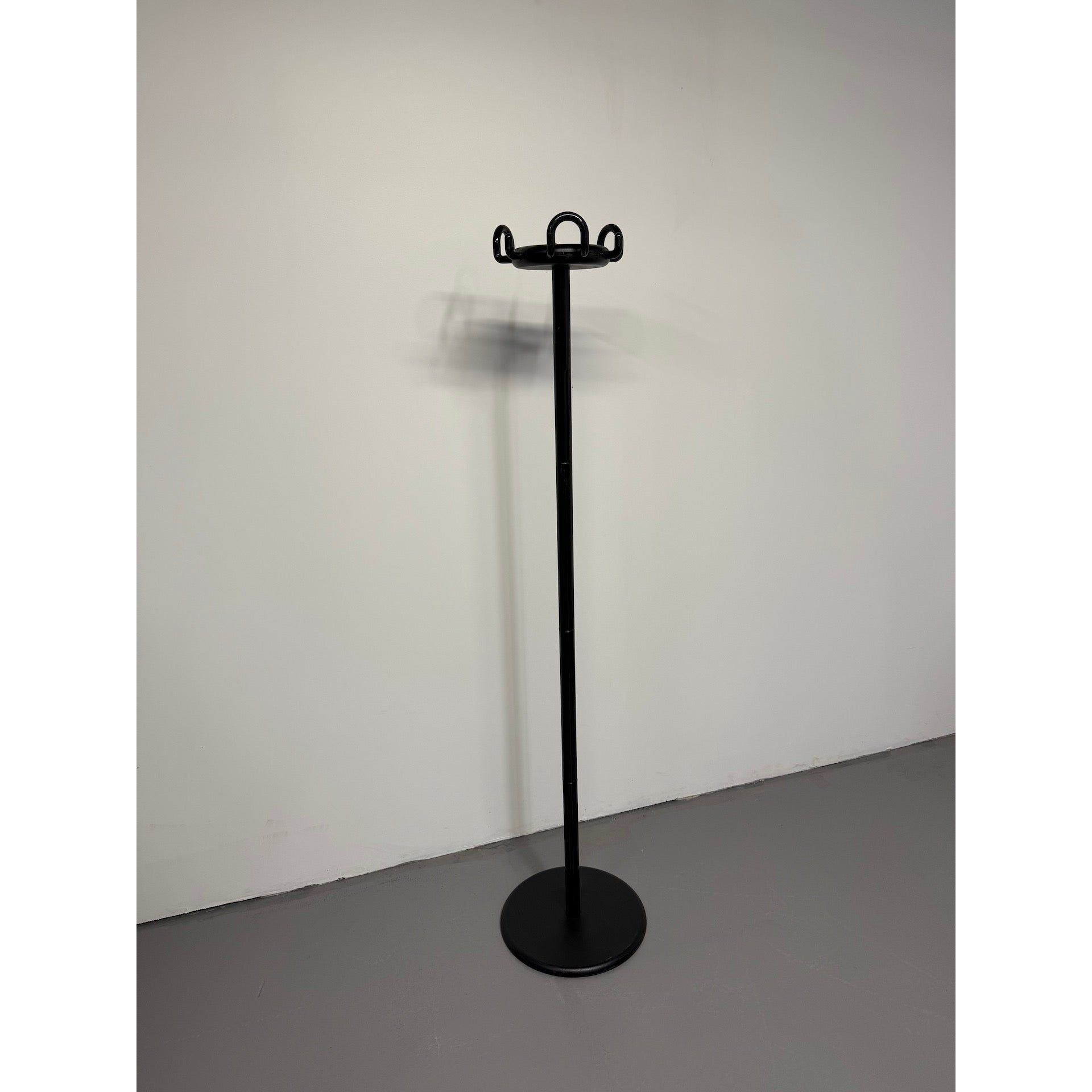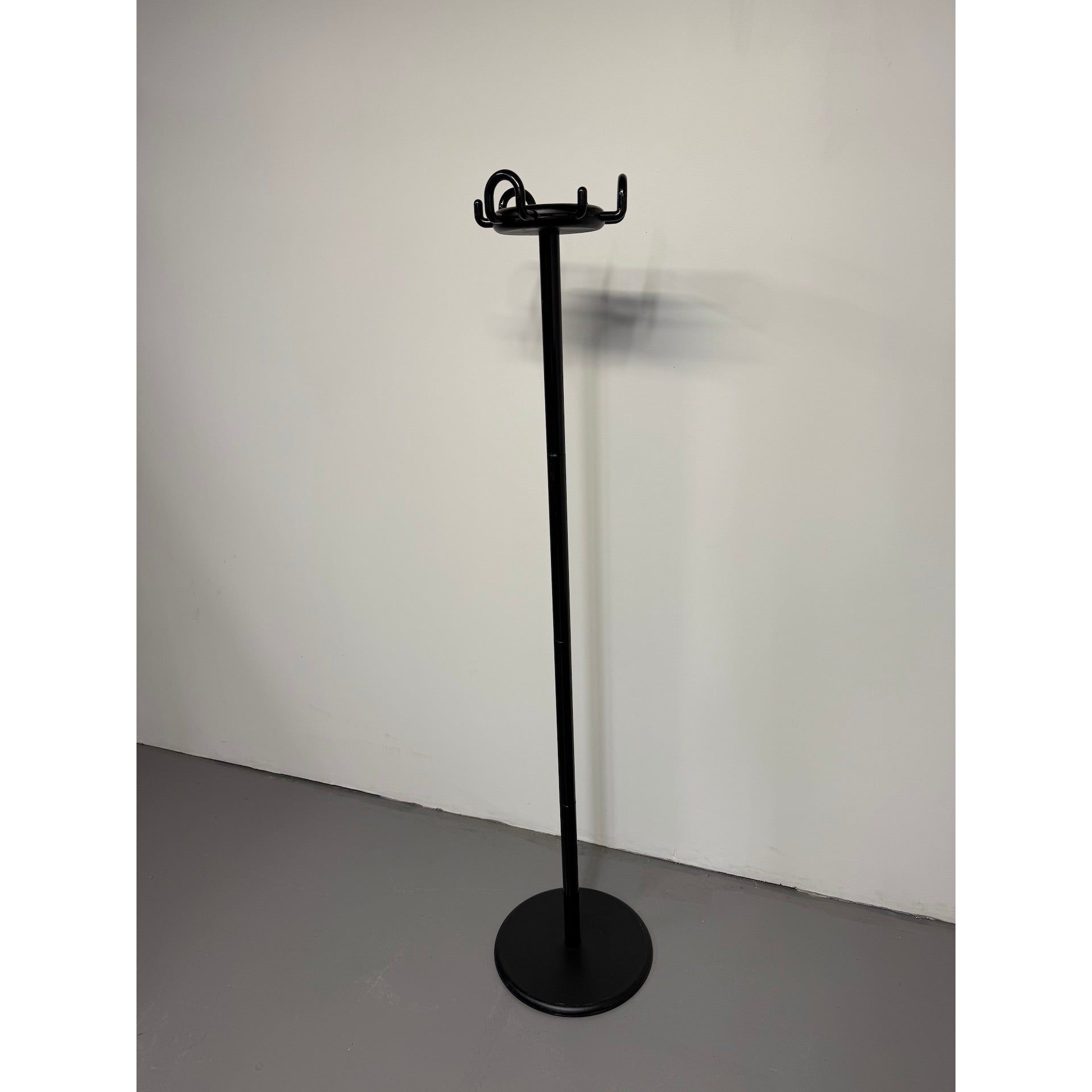 The 999 Aiuto coat rack, designed by Raul Barbieri and Giorgio Marianelli for Rexite in the 1980s, is a functional design classic made in Italy. With its slim column, circular weighted base, and iconic round crown with multiple hooks, it offers a space-efficient and durable solution for organising coats, jackets, and bags.