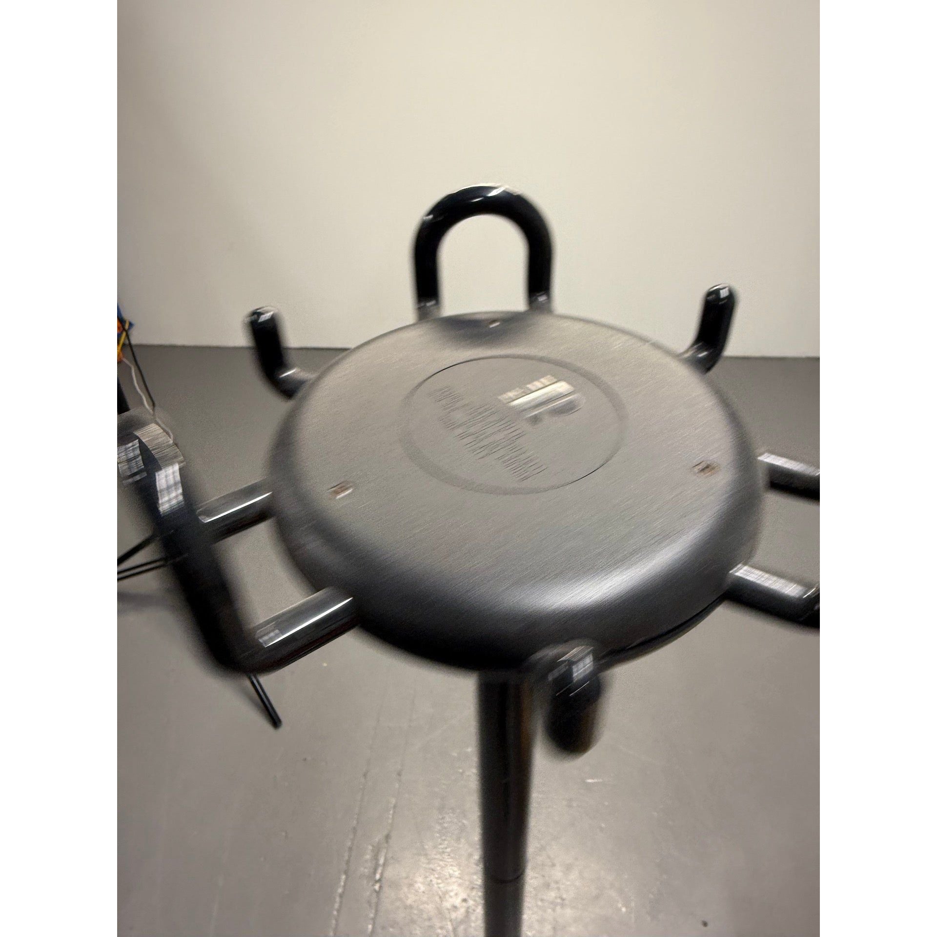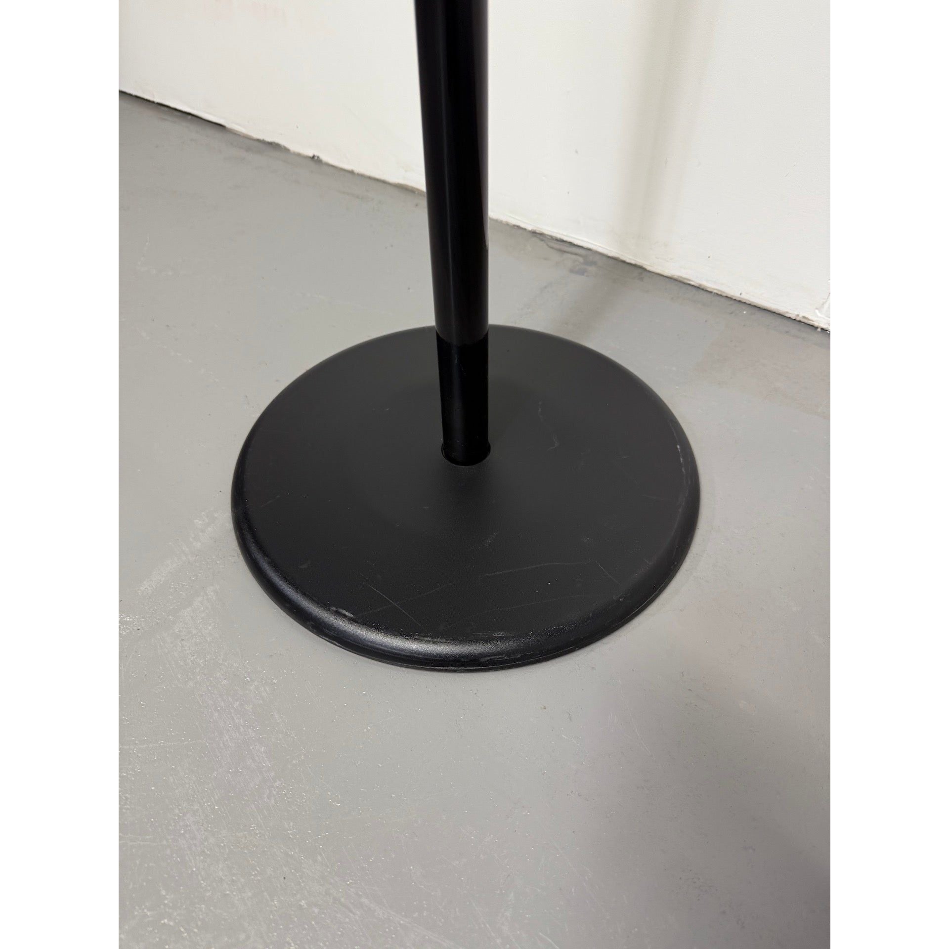 Black powder-coated steel frame with weighted circular base