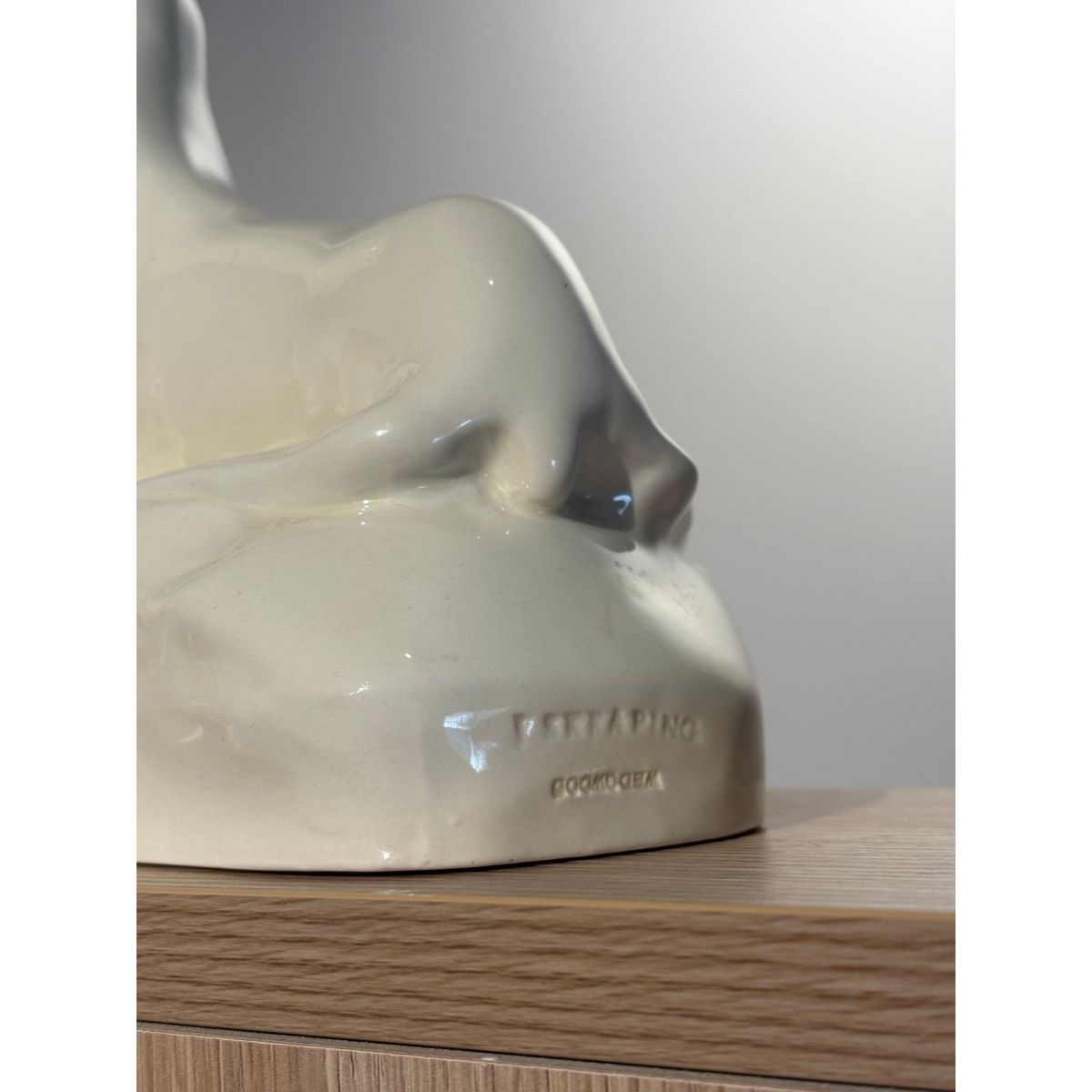Produced in the 1930s, this model is finished in Wedgwood’s highly sought-after creamware “Moonstone” glaze; a soft, slightly opalescent finish that enhances the sculpture’s streamlined contours and subtle musculature.