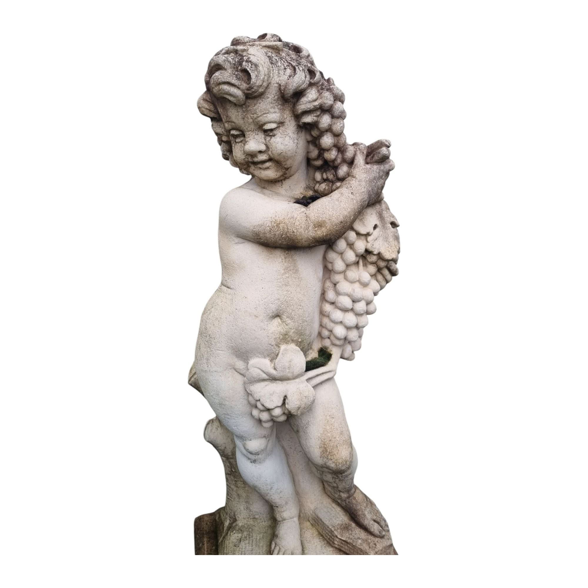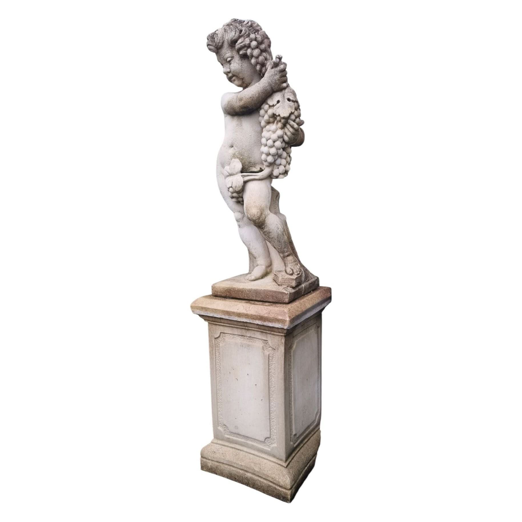cherub holding grapes, which can symbolize abundance, fertility, or the harvest