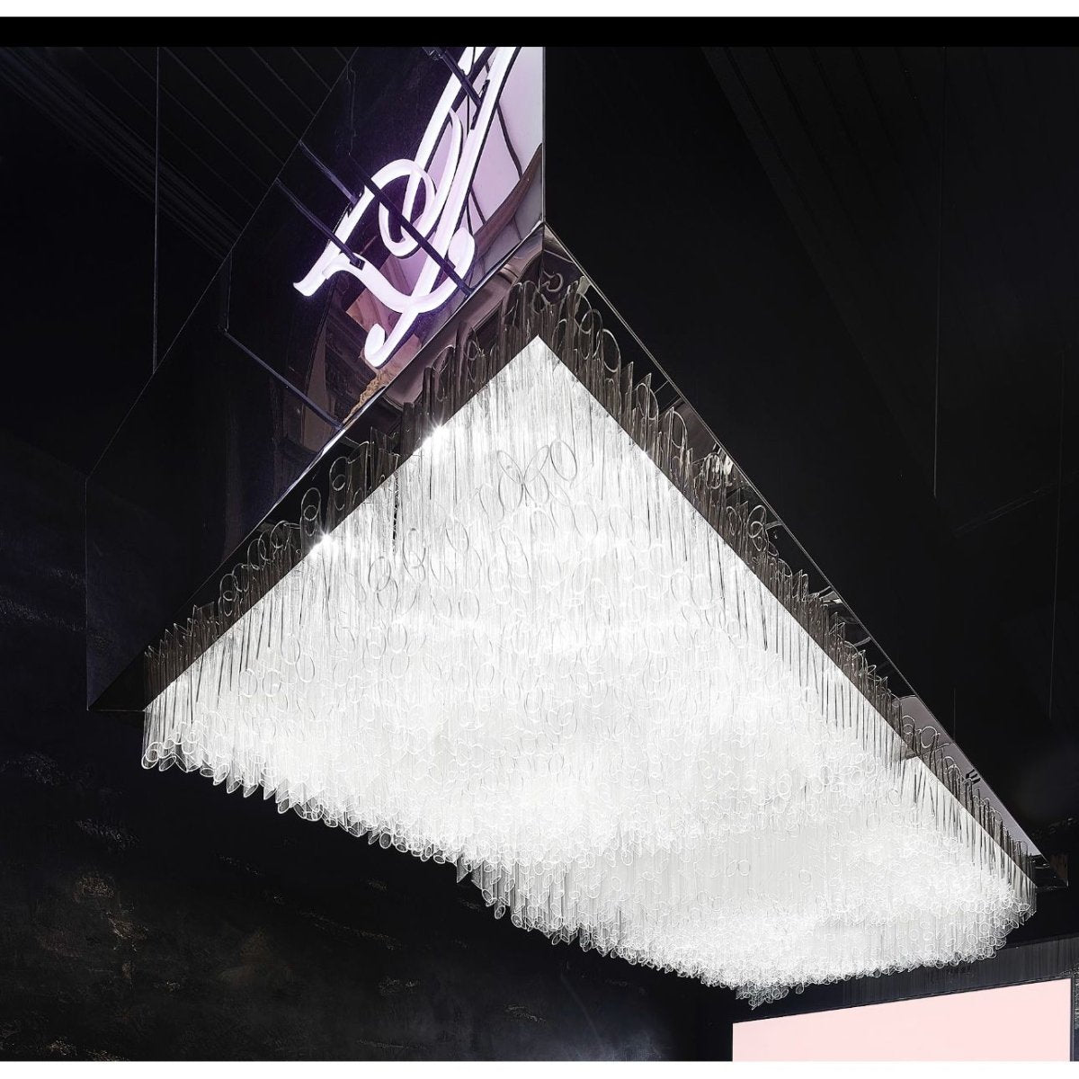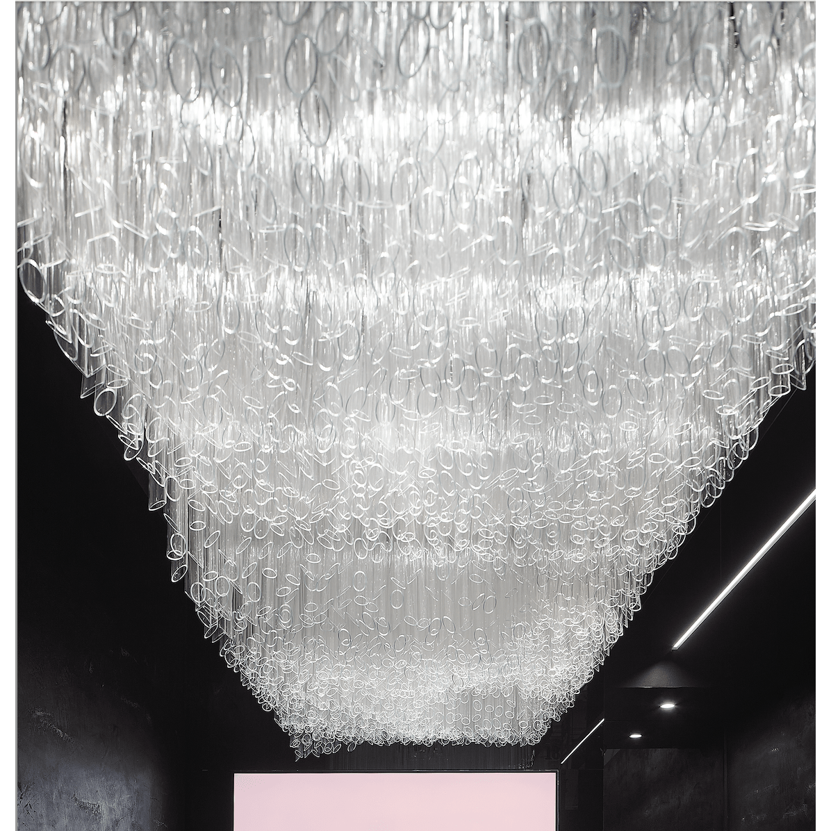 Impressive Light Feature featuring approx 1200 suspended acrylic tubes in Rose Gold box frame.