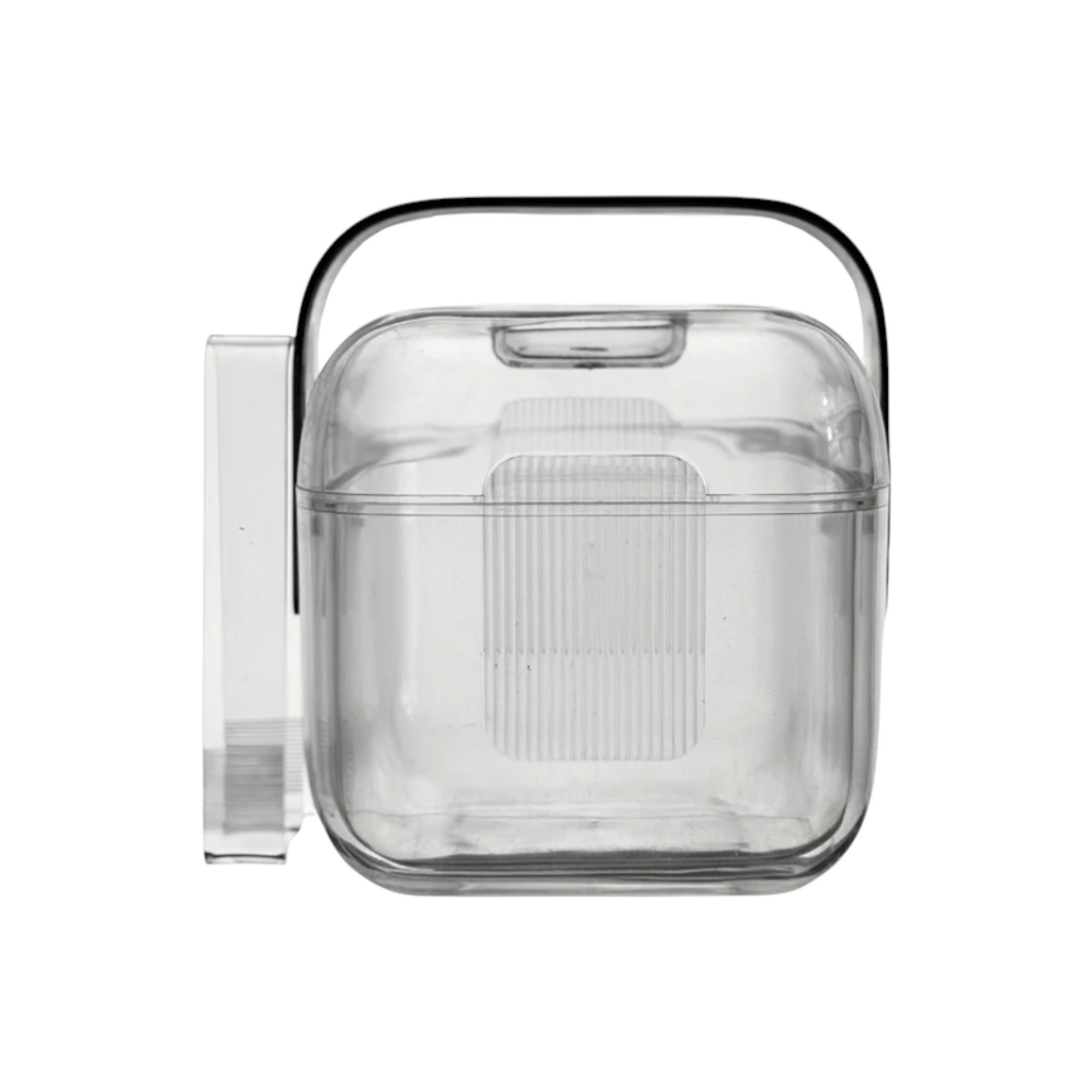 Moulded lucite plastic ice bucket of cylindrical form from the Amanda range, with fitted removable liner and matching tongs. Designed for domestic entertaining, the model reflects Guzzini’s pioneering use of plastics combined with clean, functional modern design.