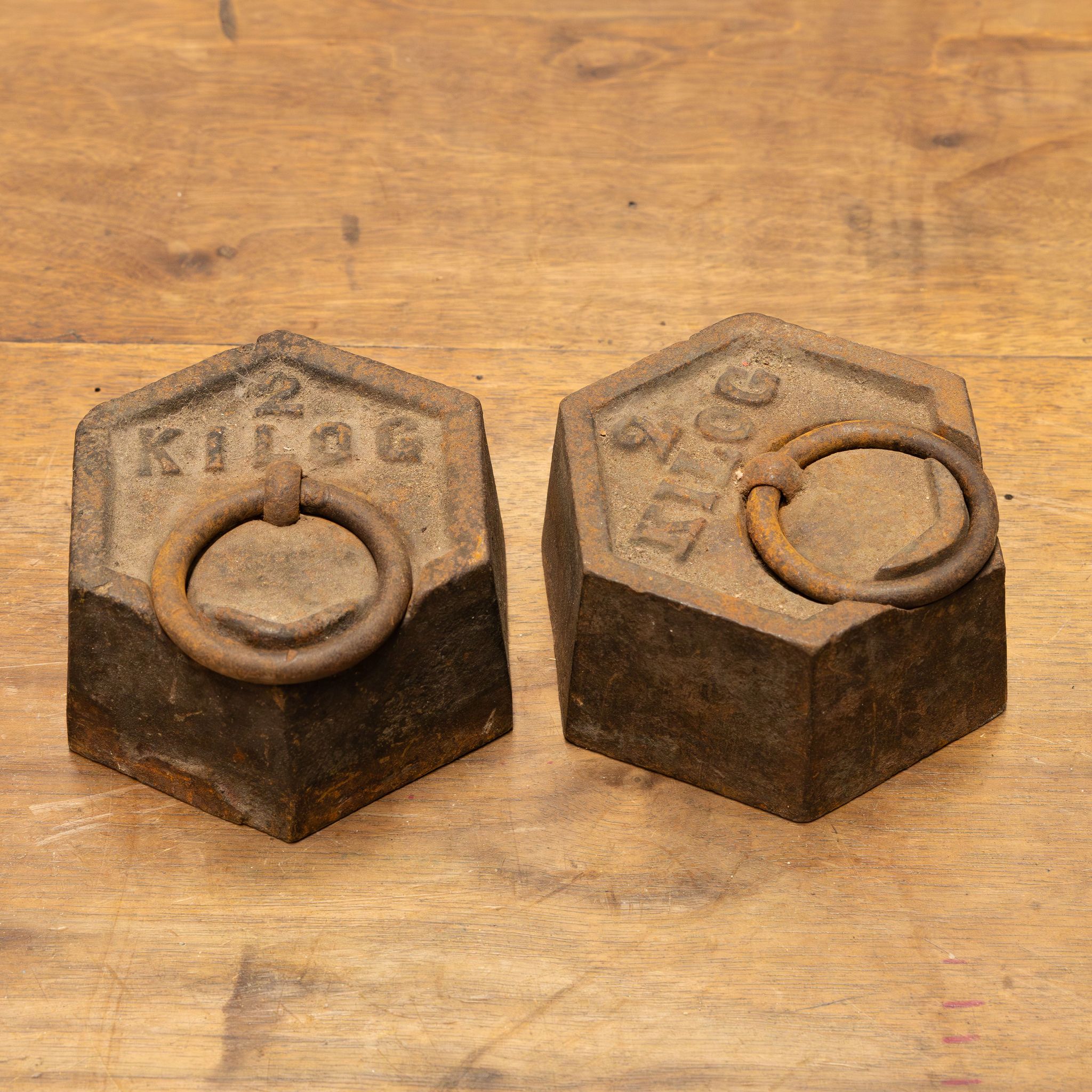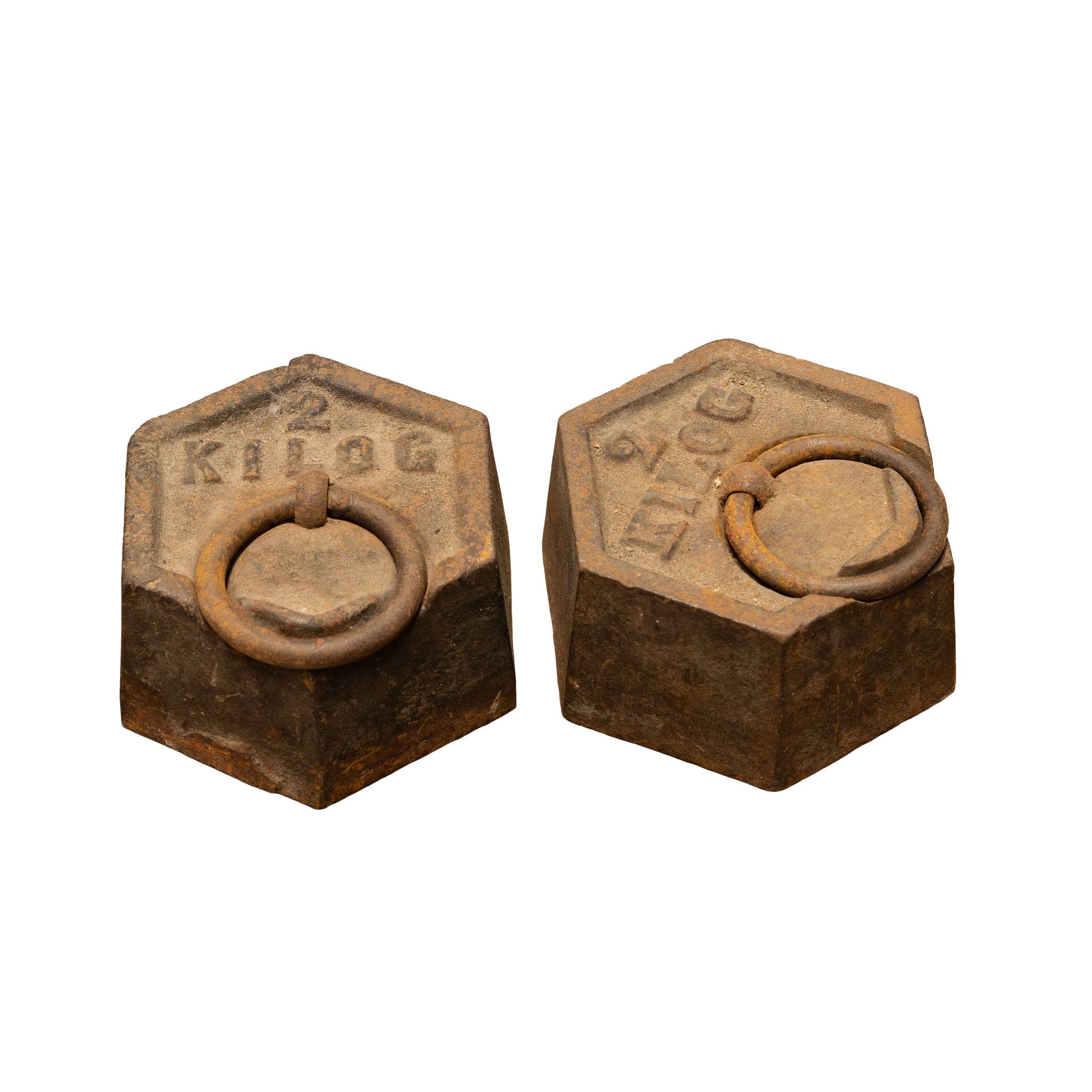 Pair of Vintage French kitchen scale 2kg and 3kg measuring weights - make good paper weights a0