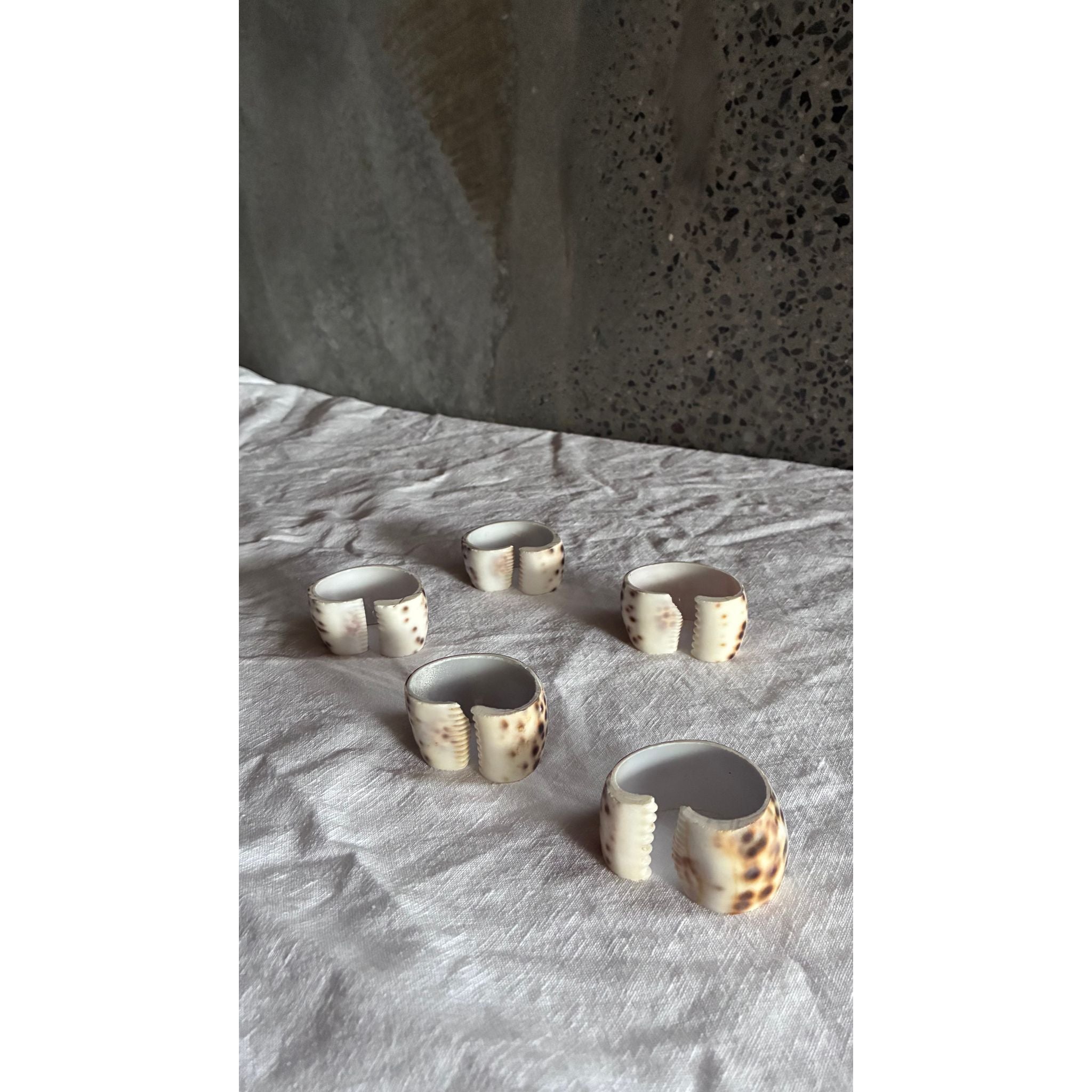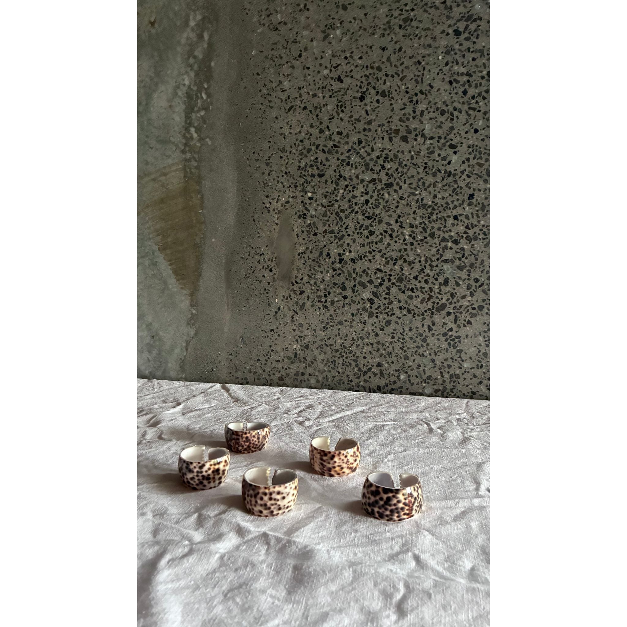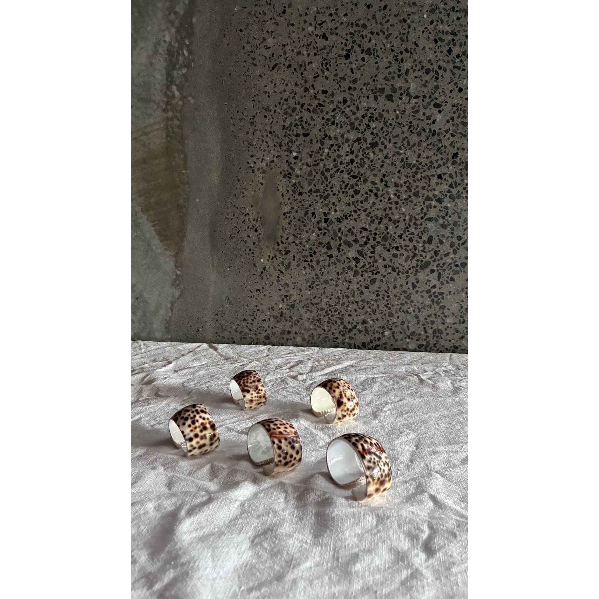 Polished to enhance the shells natural markings, no two rings are exactly alike. Their organic form and smooth interior make them both tactile and visually striking, bringing an effortless coastal elegance to the table.