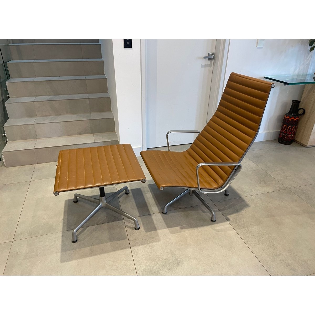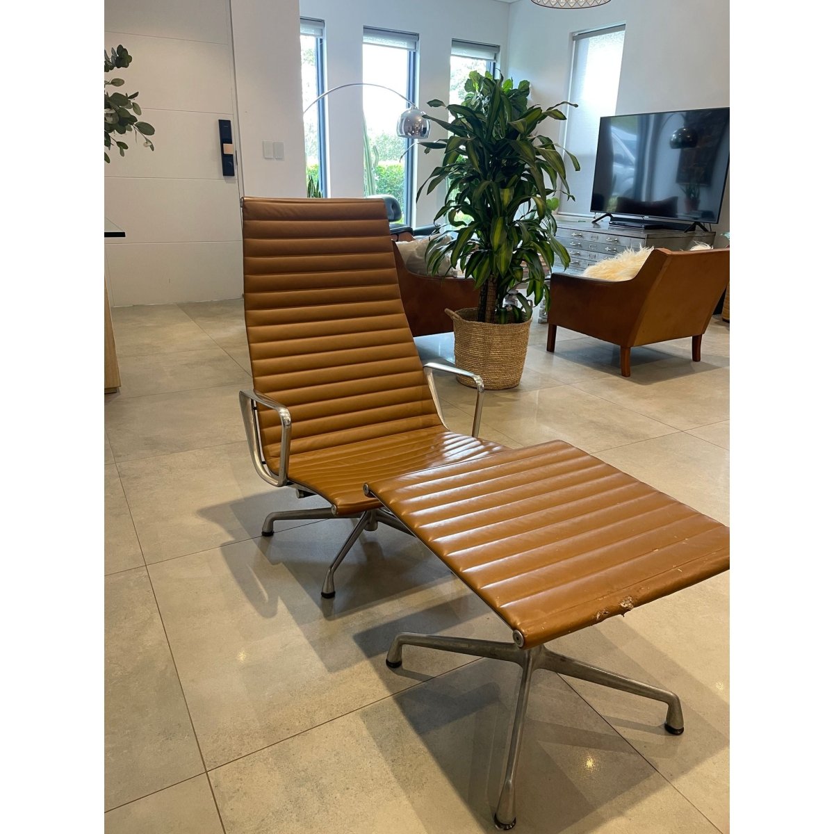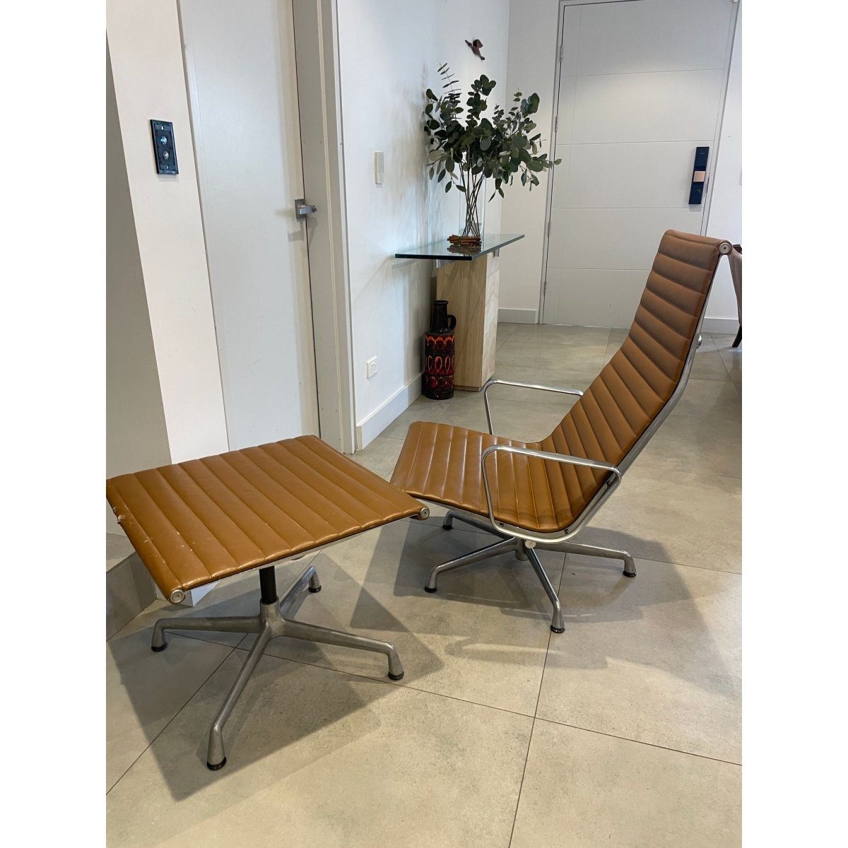 An icon of modern design, this Eames Aluminium Group high-back swivel chair with matching ottoman exemplifies clean lines, graceful form, and timeless elegance. Designed to balance comfort with sophistication, it fits effortlessly in both home and professional environments, bridging classic and contemporary aesthetics.