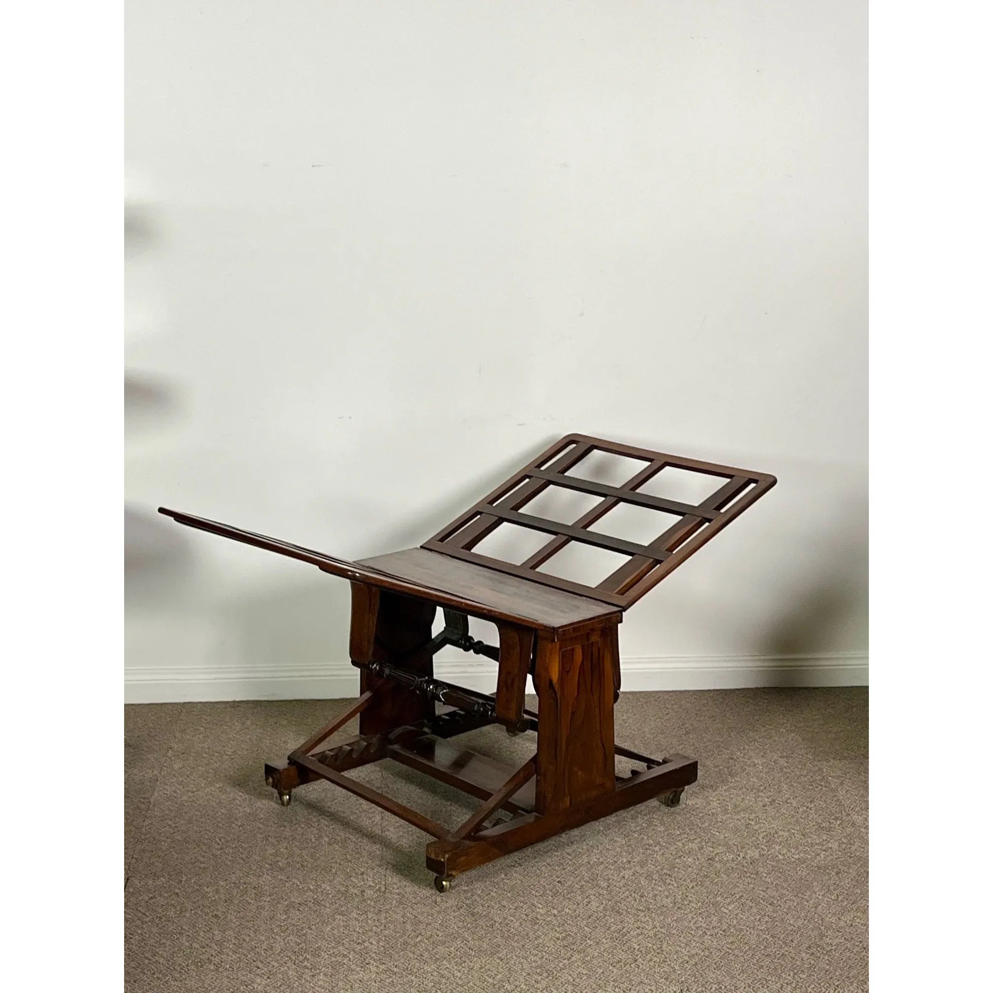 This is a rare find in Australia. it is a genuine antique English 19th century later George IV / William IV period circa 1830 adjustable Folio Stand superbly crafted from top quality prestigious imported selected well figured Rosewood from Brazil now mellowed with age to a lovely mid honey colour.