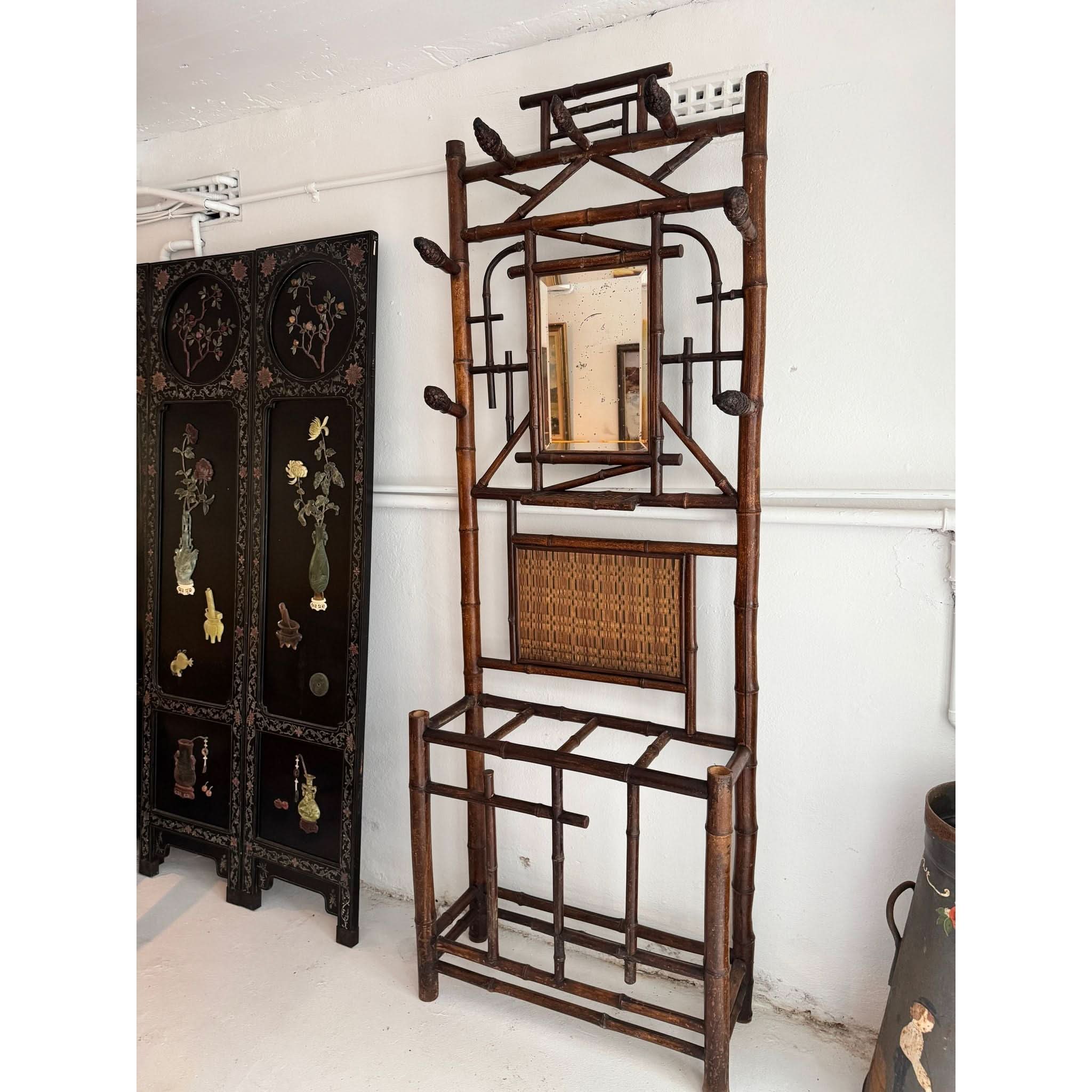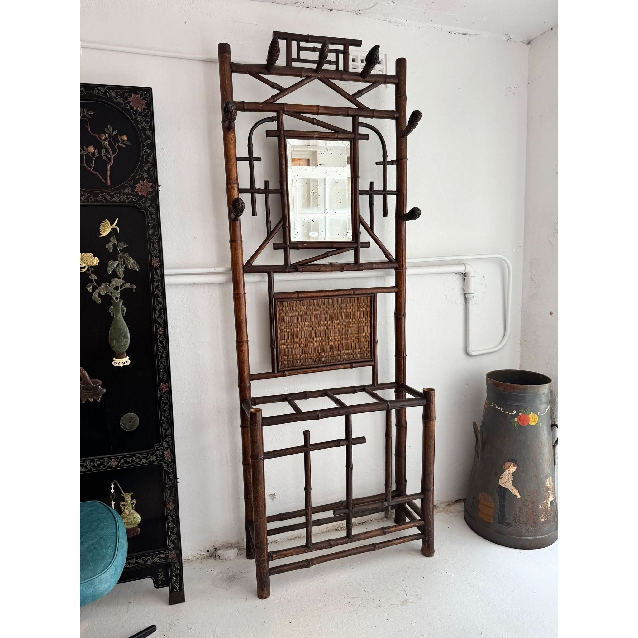 Late 19th Century French bamboo hall and umbrella stand with hand carved hat pegs and beautiful aged mirror. Stamped to reverse. This beautiful piece of chinoiserie came all the way from a little town near the coast in southern Victoria from one of the many people I’ve gotten to know via instagram in the last few years. It was great to put a face to the name and lovely to buy something from him along the way.