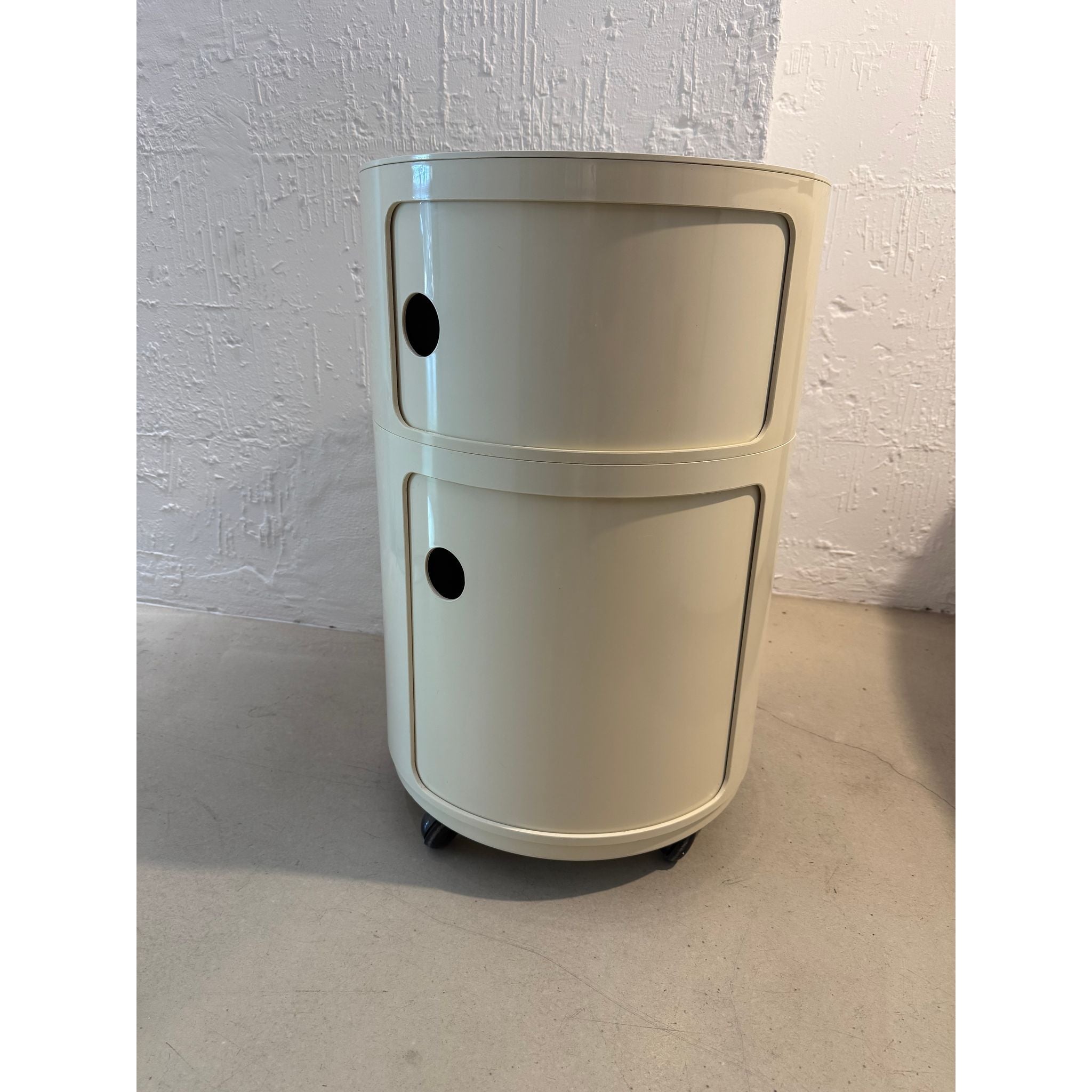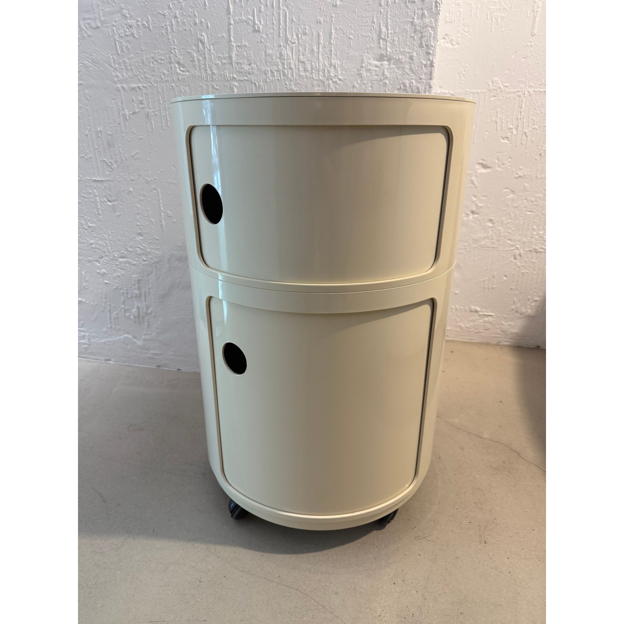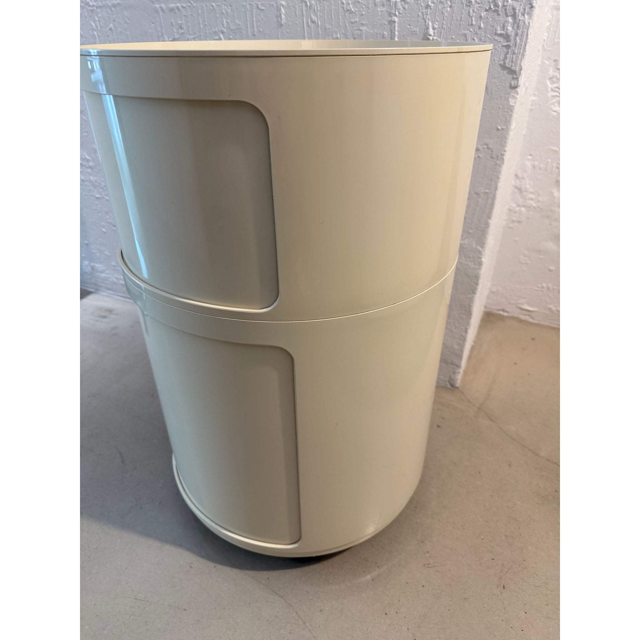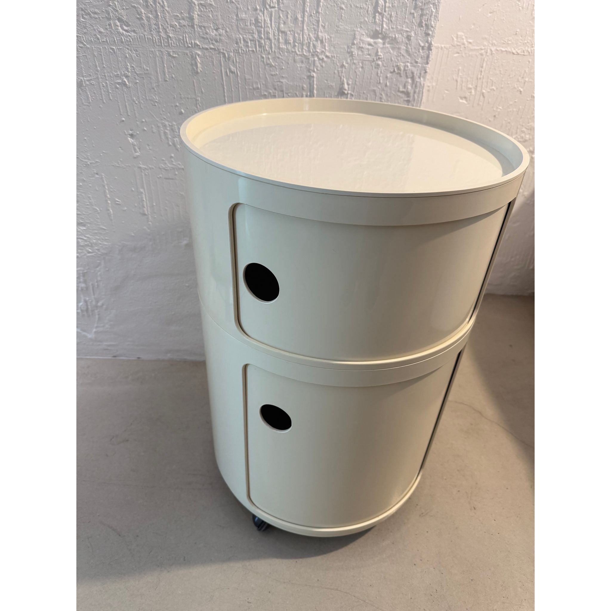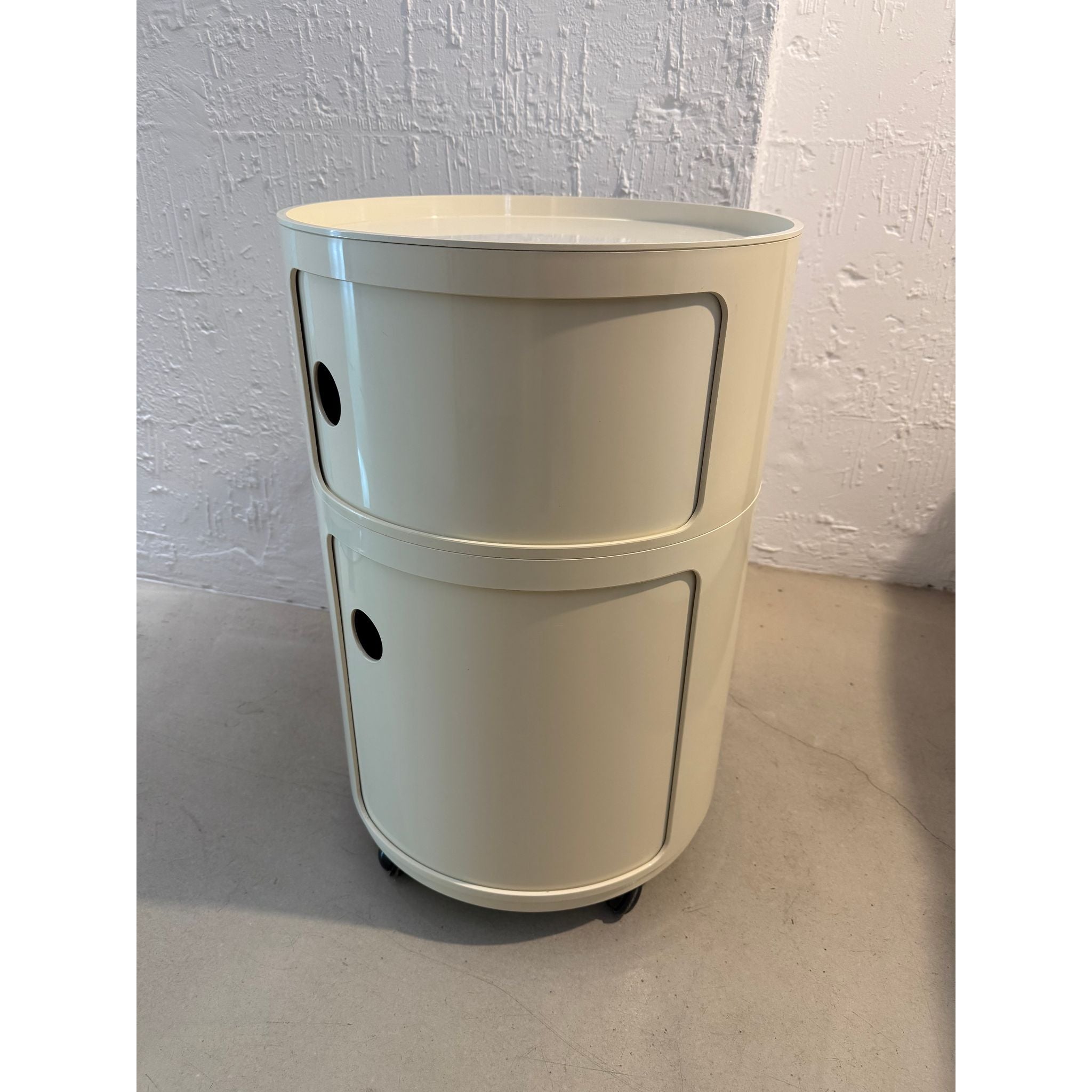 Designed by Anna Castelli, this fabulously versatile white Kartell Componibili on caster wheels makes an ideal bedside or sofa-side table. Two compartments for handy storage - heck, it even makes a great drinks trolley!