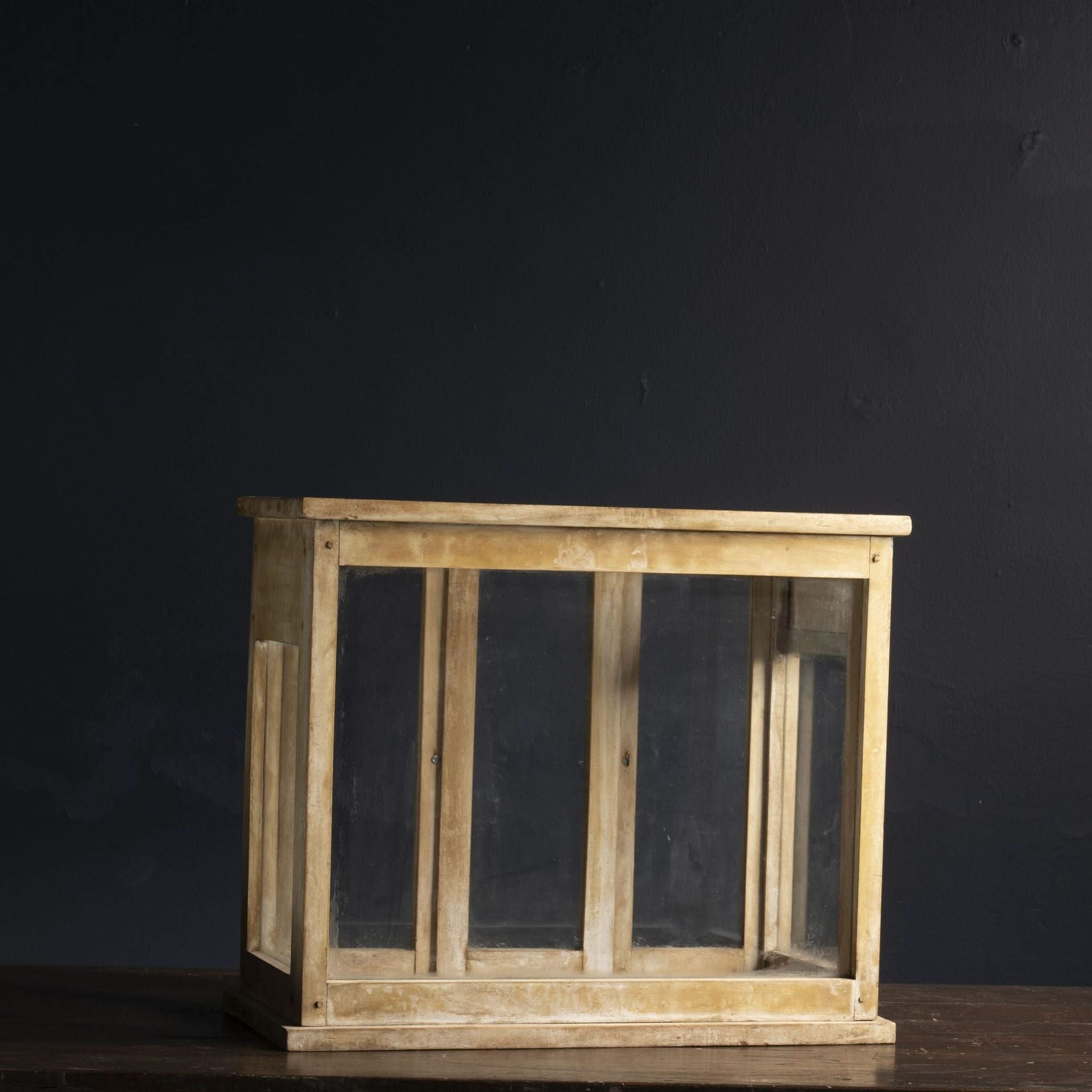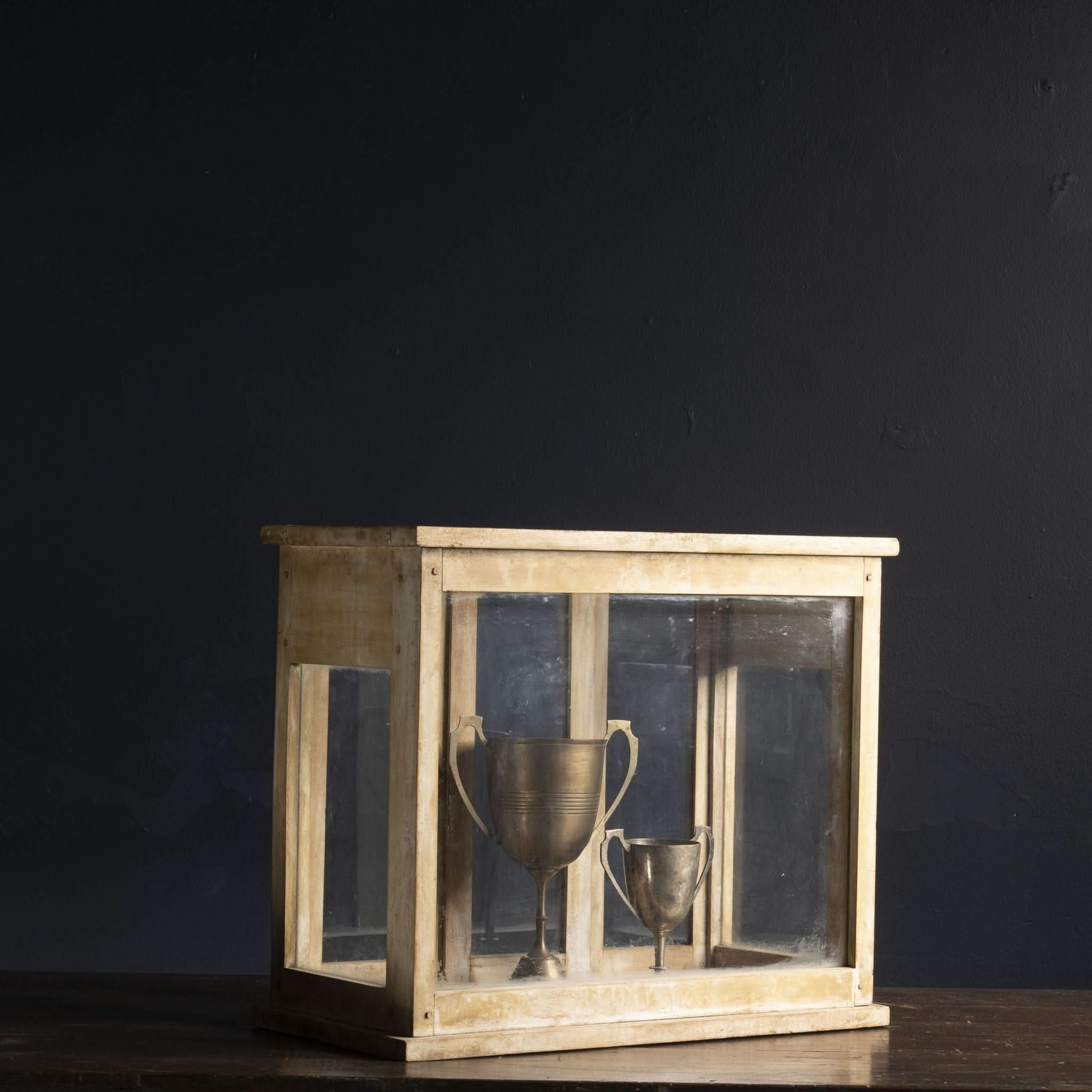 Light timber display case with glazed sides. Dimensions L460 x W220 x H390mm.