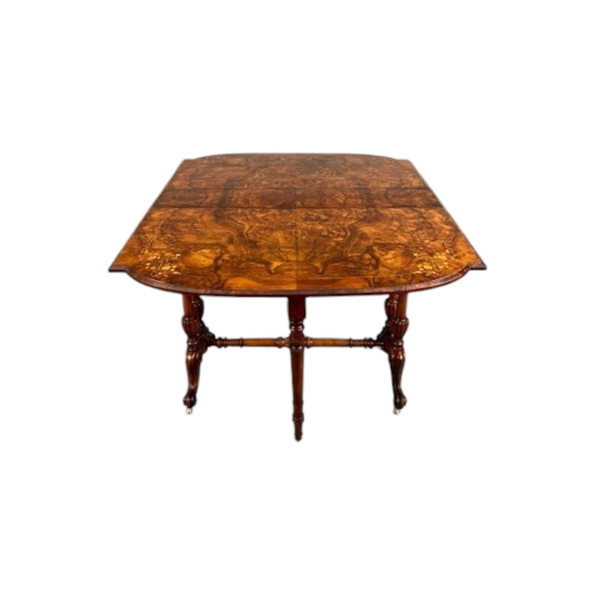 This is a very superior high quality example of a genuine antique English !9th century Victorian period circa 1860 Sutherland Table with a gate leg support action when the drop sides are up.