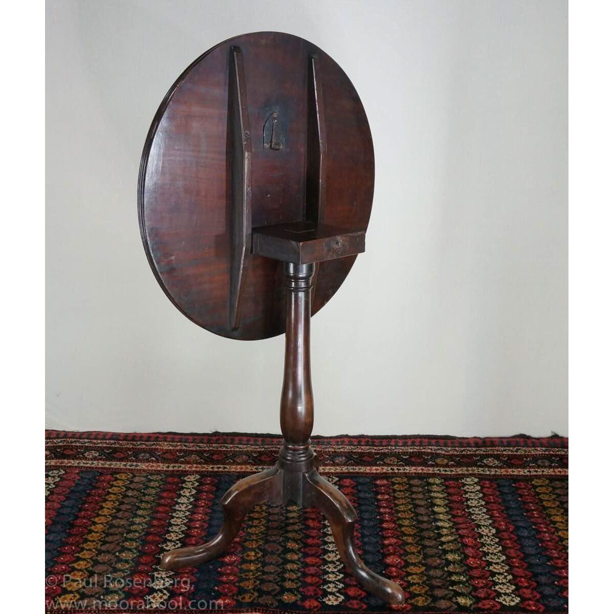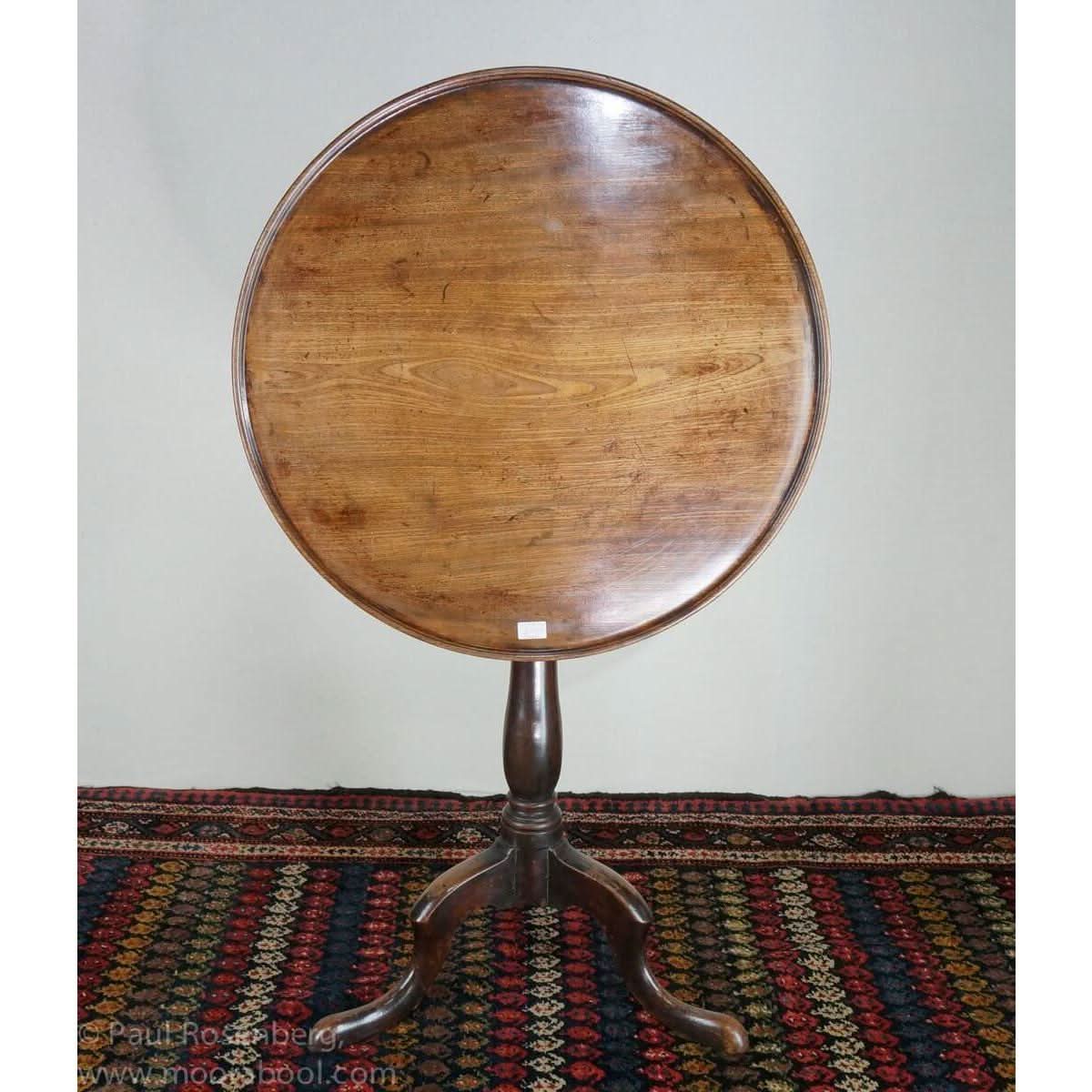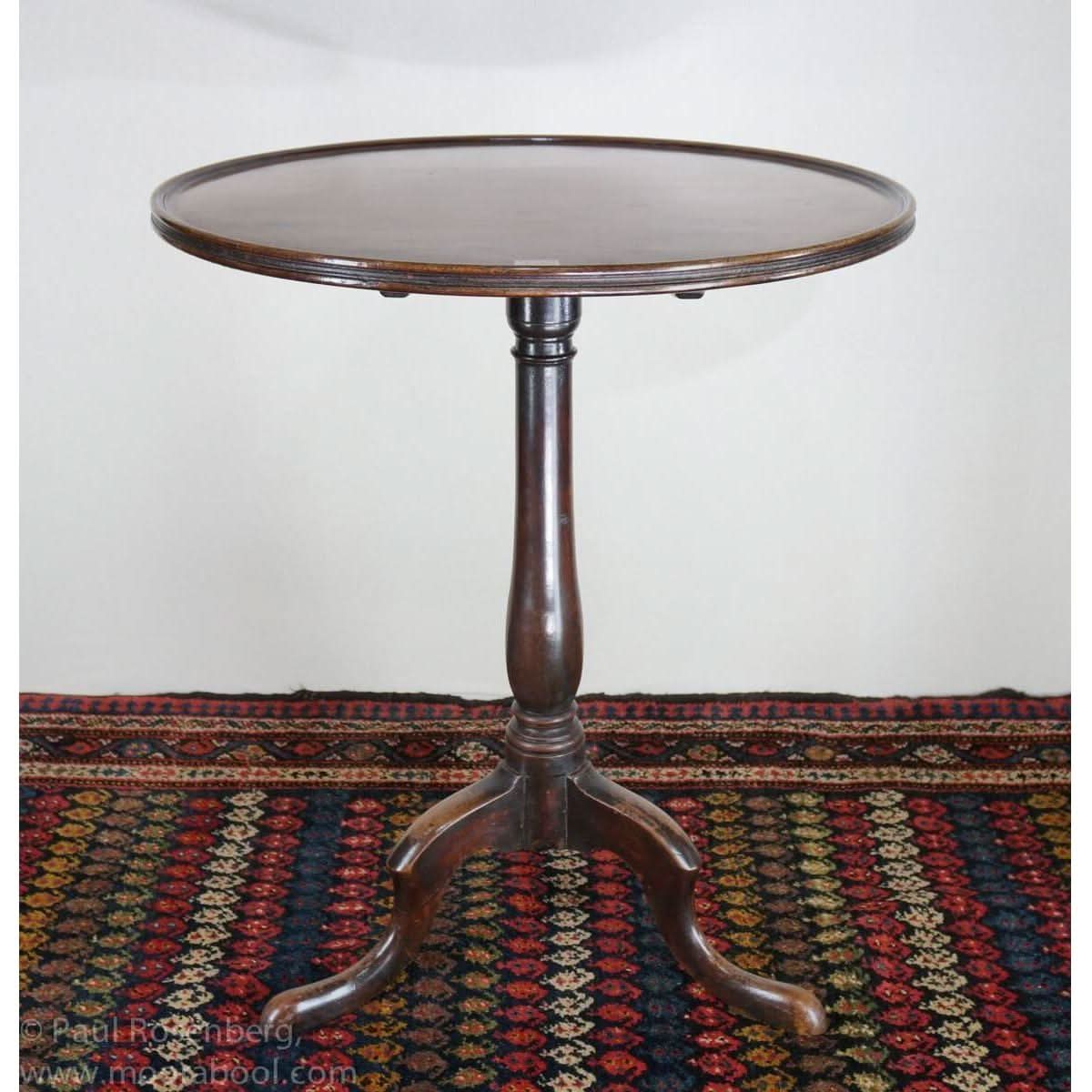 Georgian mahogany tilt-top tea table, with raised rim, on turned column support with tripod foot.