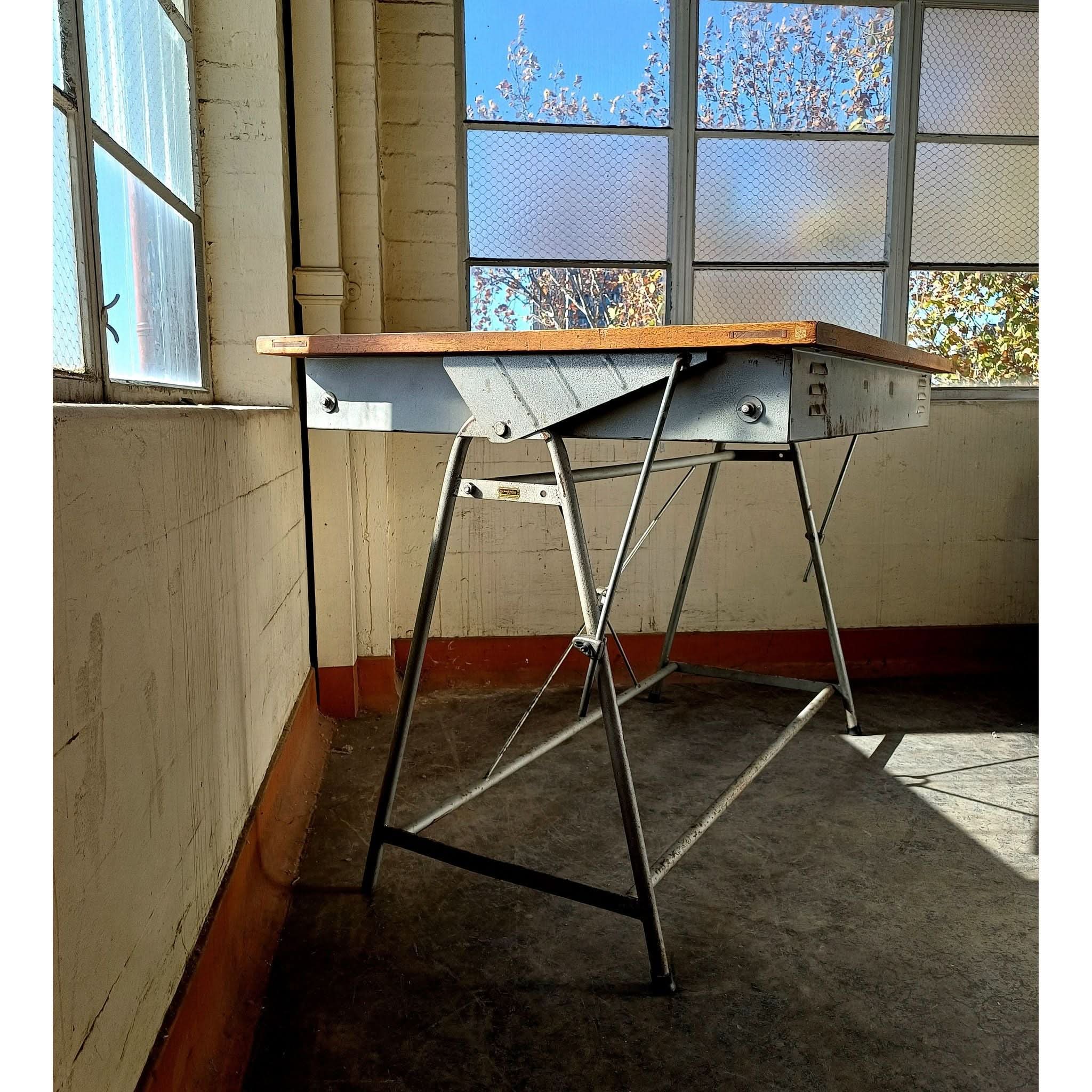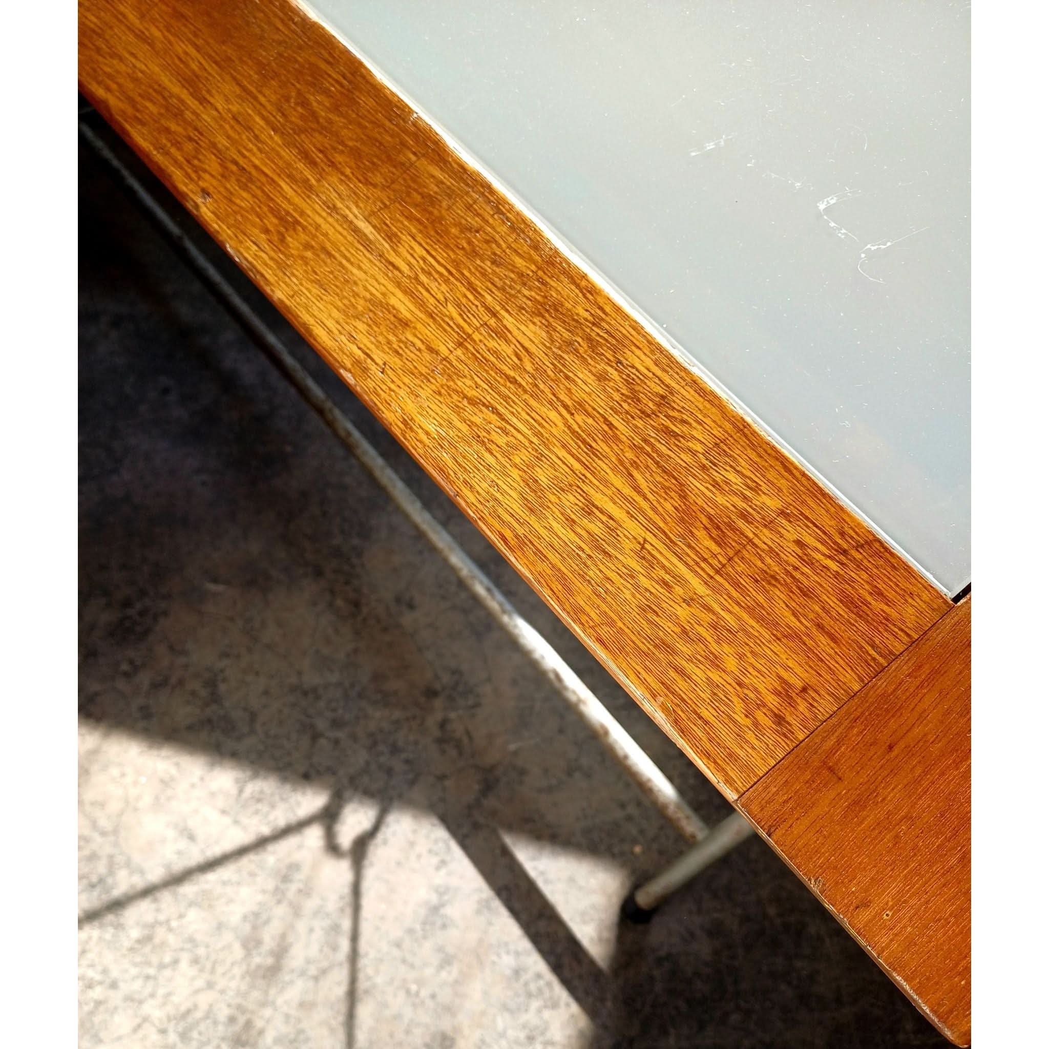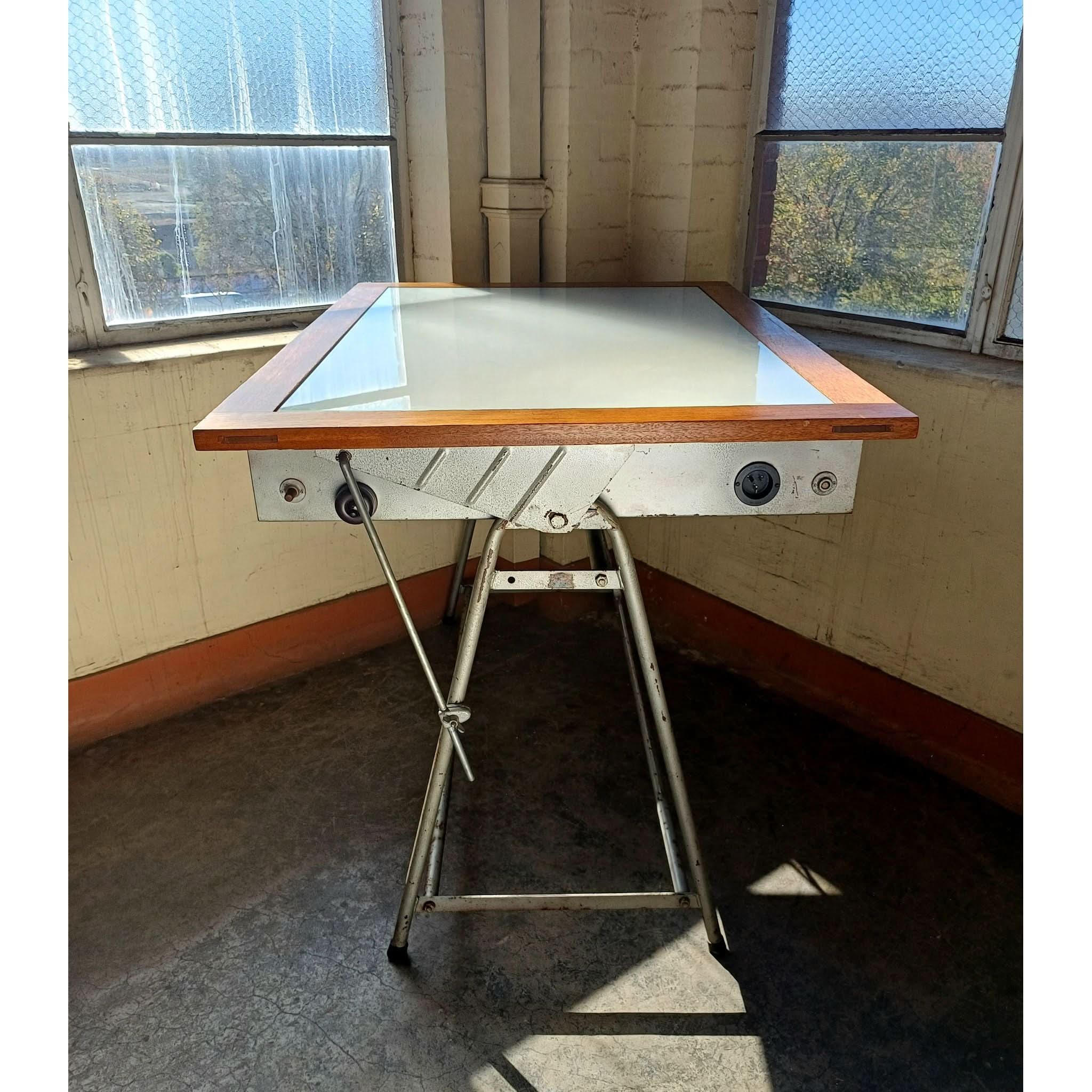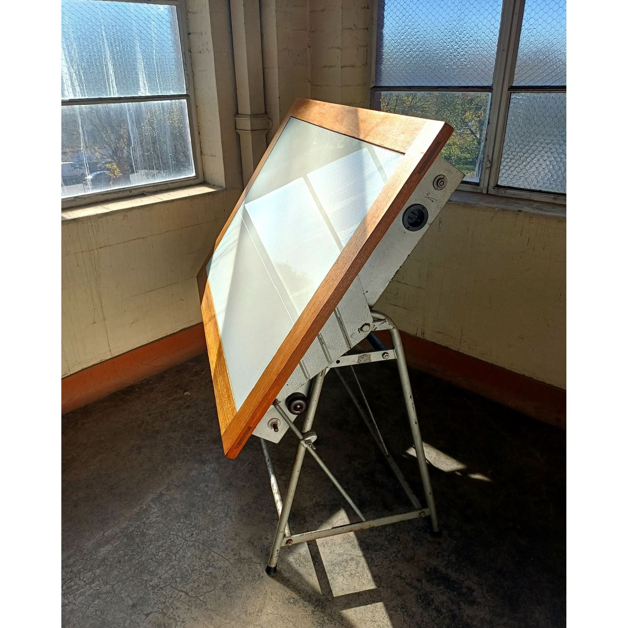 With a nod to Bauhaus sensibilities, this vintage lightbox table has a quiet utilitarian beauty that resides in its opaque glass top, tubular steel frame and the patina of its sheet metal casing. In perfect working order, we focused its restoration on reviving its Tasmanian oak mitered frame and oiling/cleaning its steel structure. The end result is a piece that embraces its character, whilst fulfilling its function. Use it for product displays in a retail setting, artistic pursuits, perusing photograph negatives or as a statement piece in your home/studio.