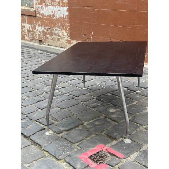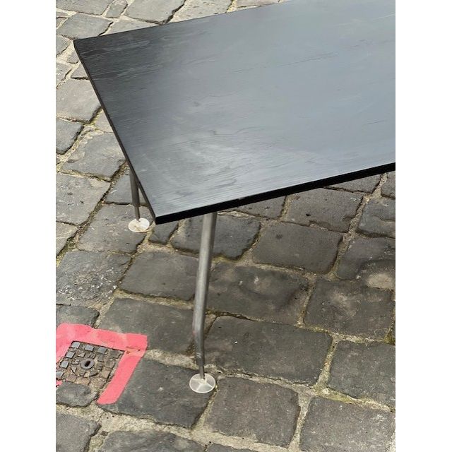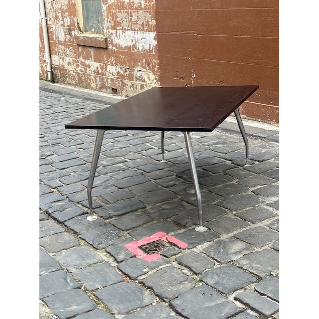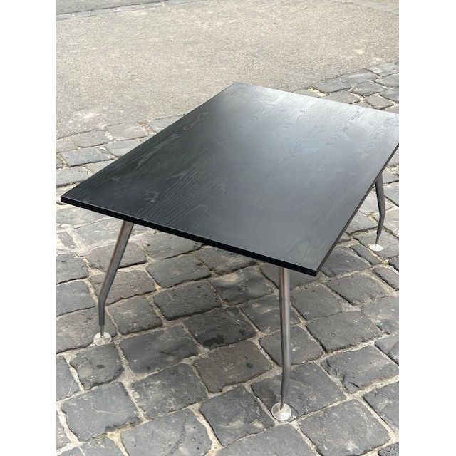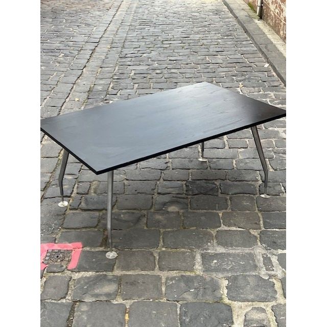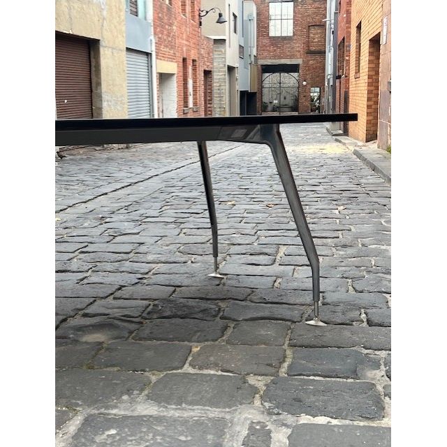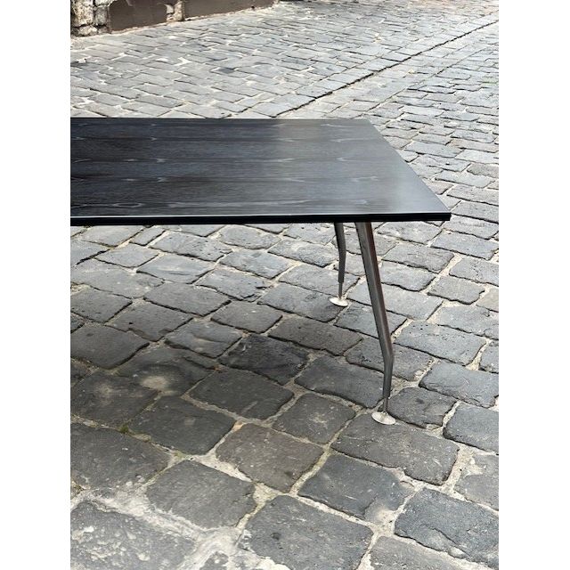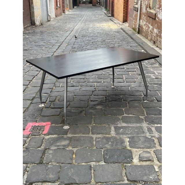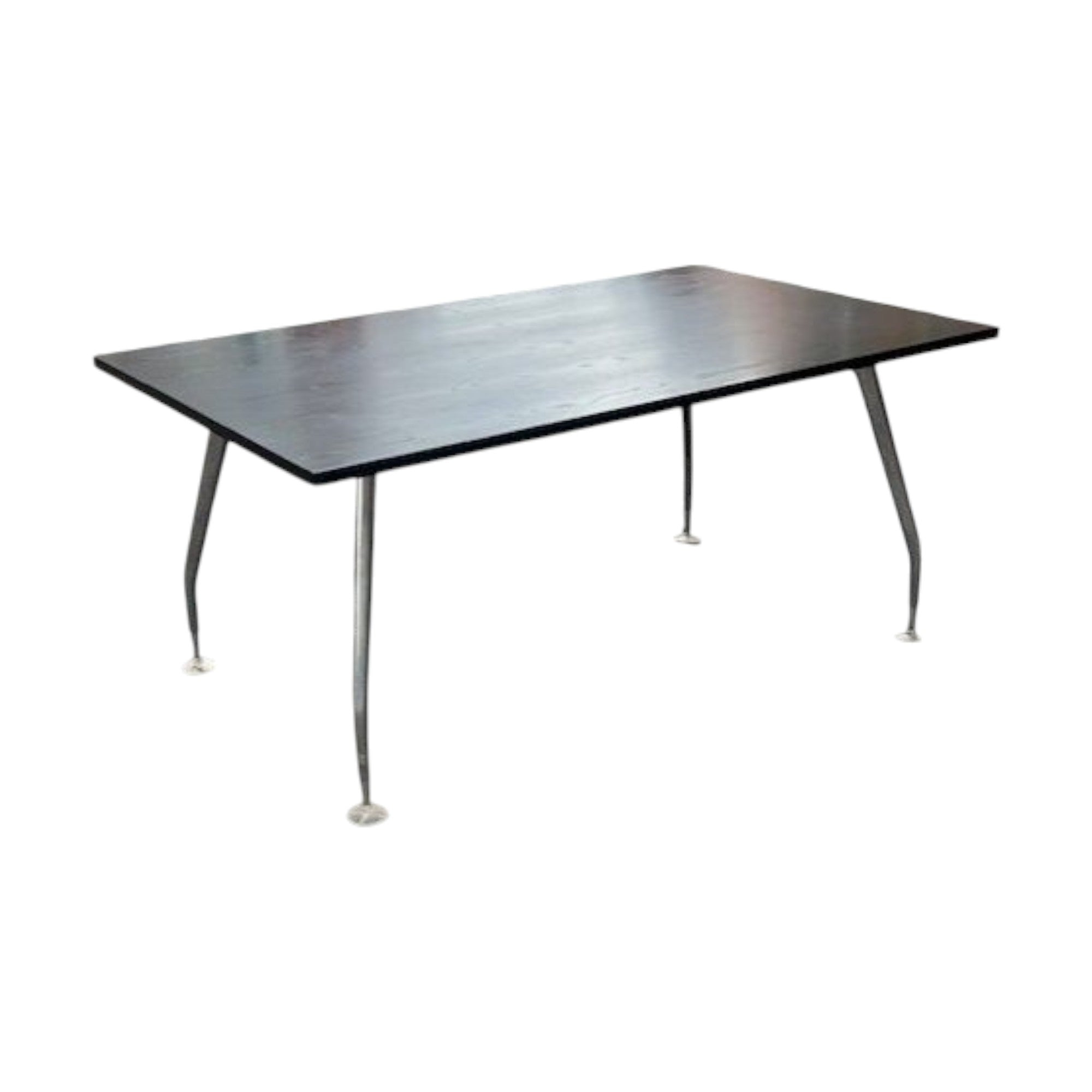 Marina marks a bold shift toward contemporary design, seamlessly fitting into both workplace and home environments. With its sleek black tabletop and elegantly splayed legs, it offers a sophisticated presence perfect as a dining table or a stylish meeting space.