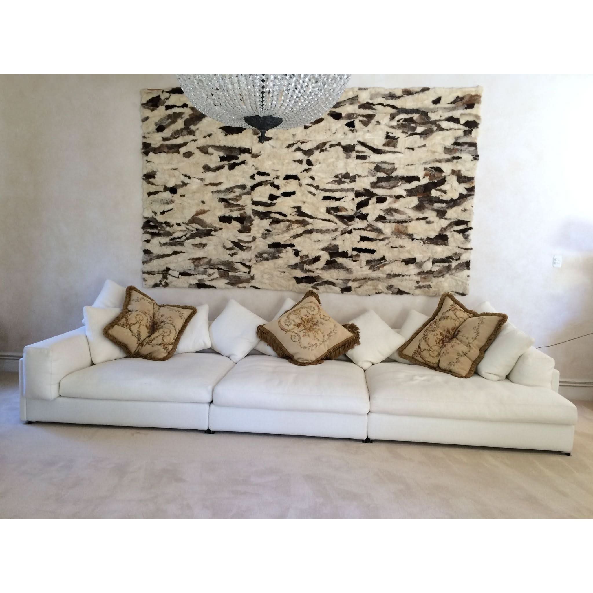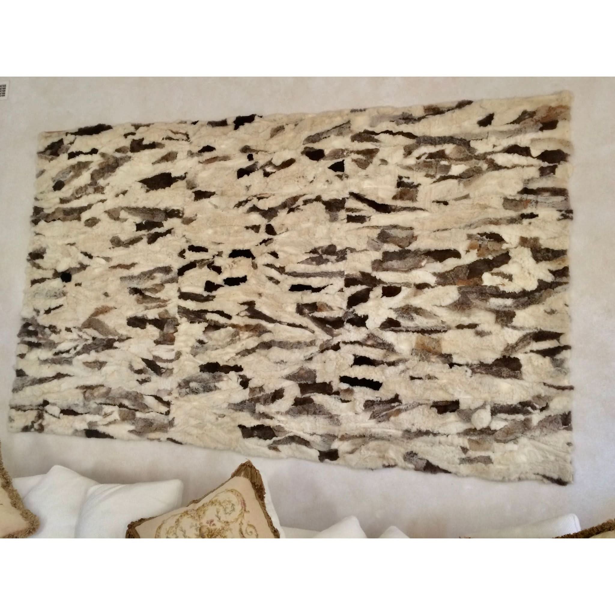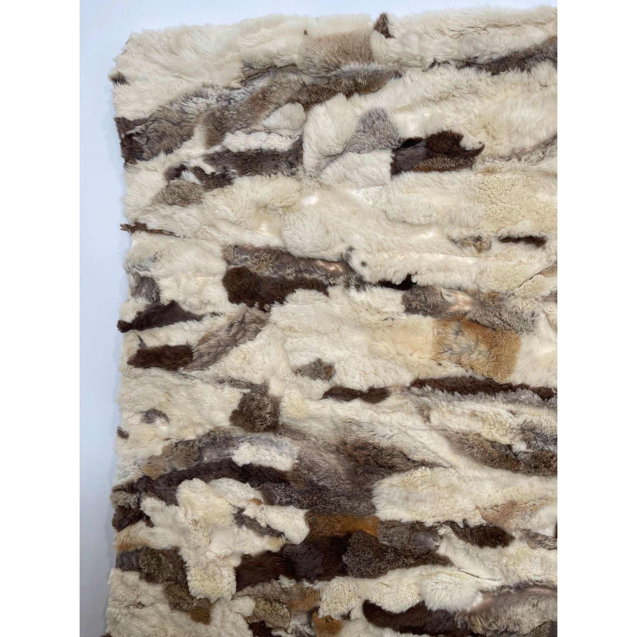 This beautiful piece has a long history where life began in Greece on a farm where men hunted these rabbits and brought them home to their wife's. The fur was sewn together over many years to create the multi colour artwork. A gentleman on a trip to Greece in 1970 was captured by the work and history and made an offer too good to refuse and brought it home to Australia. Upon visiting my friend in 1980, I too was captured by this amazing piece and I offered to buy it. With so much reservation over 2 years he finally accepted with a phone call. With so much excitement I wanted to hang it, yet the weight and its delicate nature required some consideration. I took it to a Fourier and had it fully lined to support the individual pieces, yet it required far more support to hang. I then fixed it onto an MDF board and then walah it was now secure and it proudly hanged on my wall ever since and it became a conversation piece in my drawing room ever since.