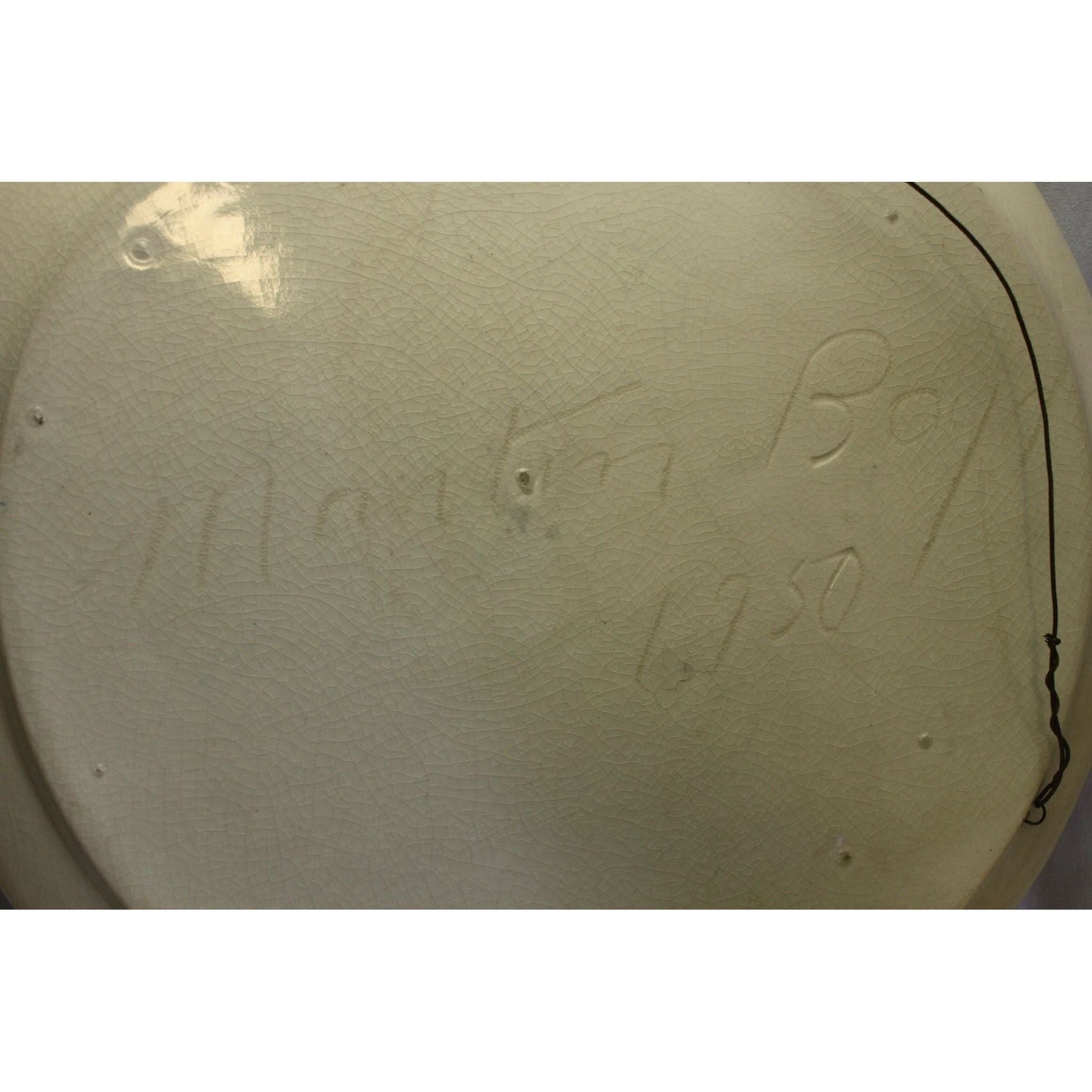 The condition of this plaque is very good apart from some crazing. It is signed on the back "Martin Boyd 1950". The Martin Boyd pottery was run by brothers Guy and David in Sydney from 1946-55. They were part of the hugely talented Boyd family, with their brother Arthur also making pottery and later achieving fame as a painter.
