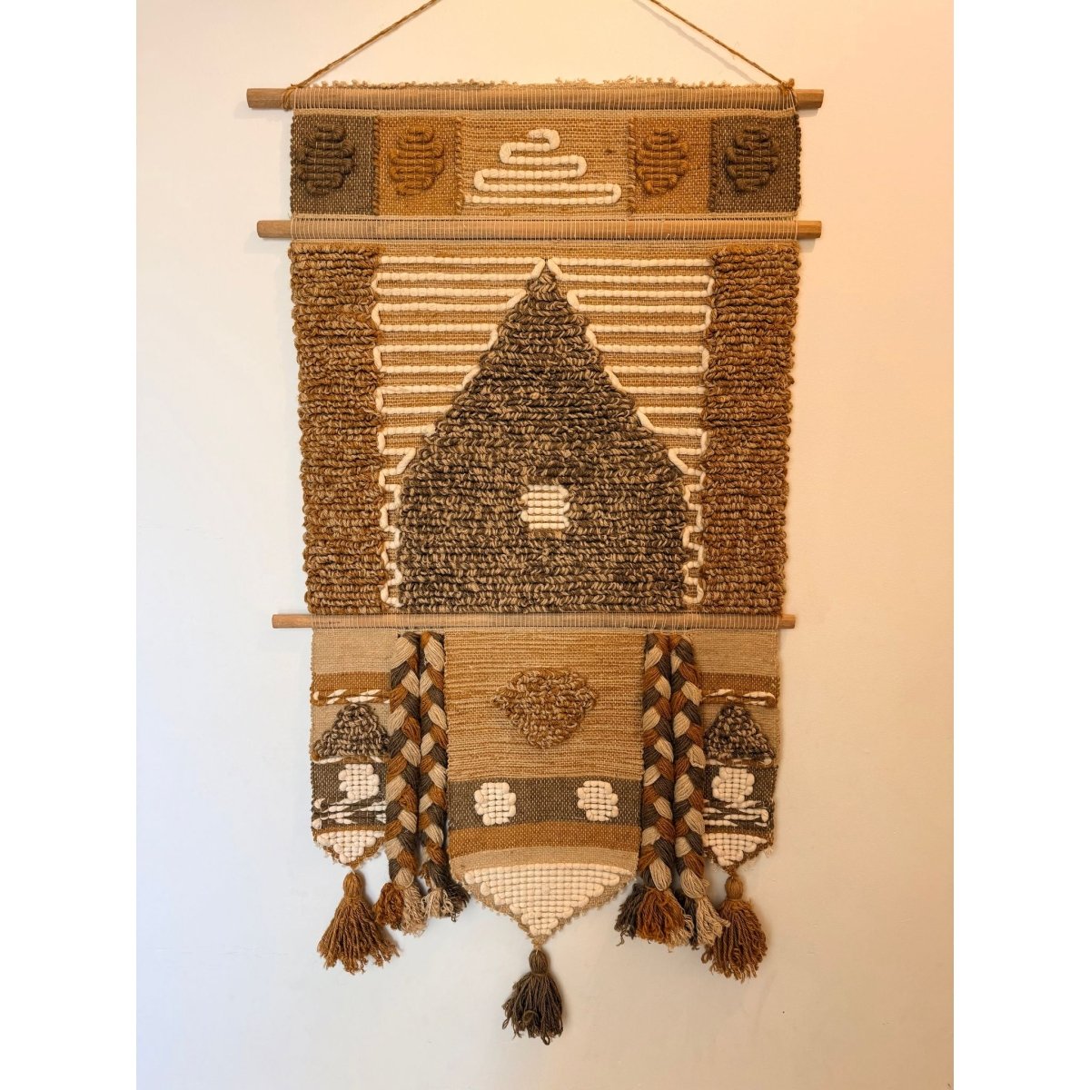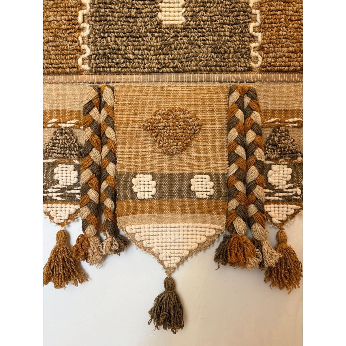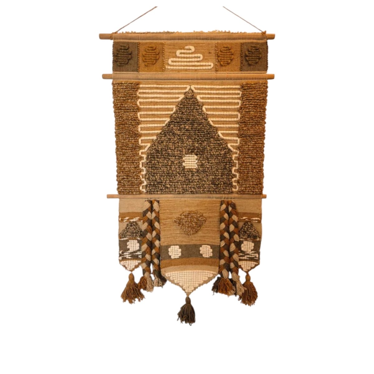 This vintage wall hanging is a quintessential piece of textile art. Crafted in the 1970s, this statement piece captures the essence of bohemian design with its rich textures and sculptural details.