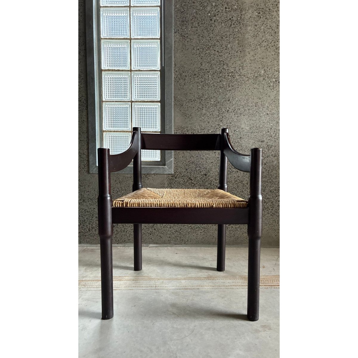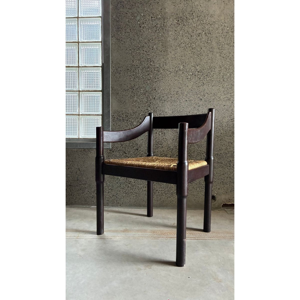 Vico Magistretti, 'Carimate' chair in brown lacquered beech with rush seat.