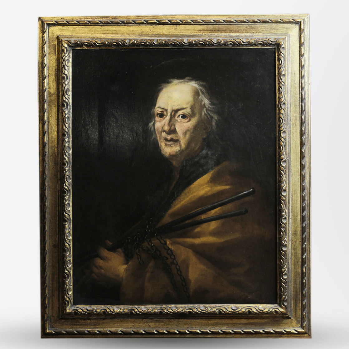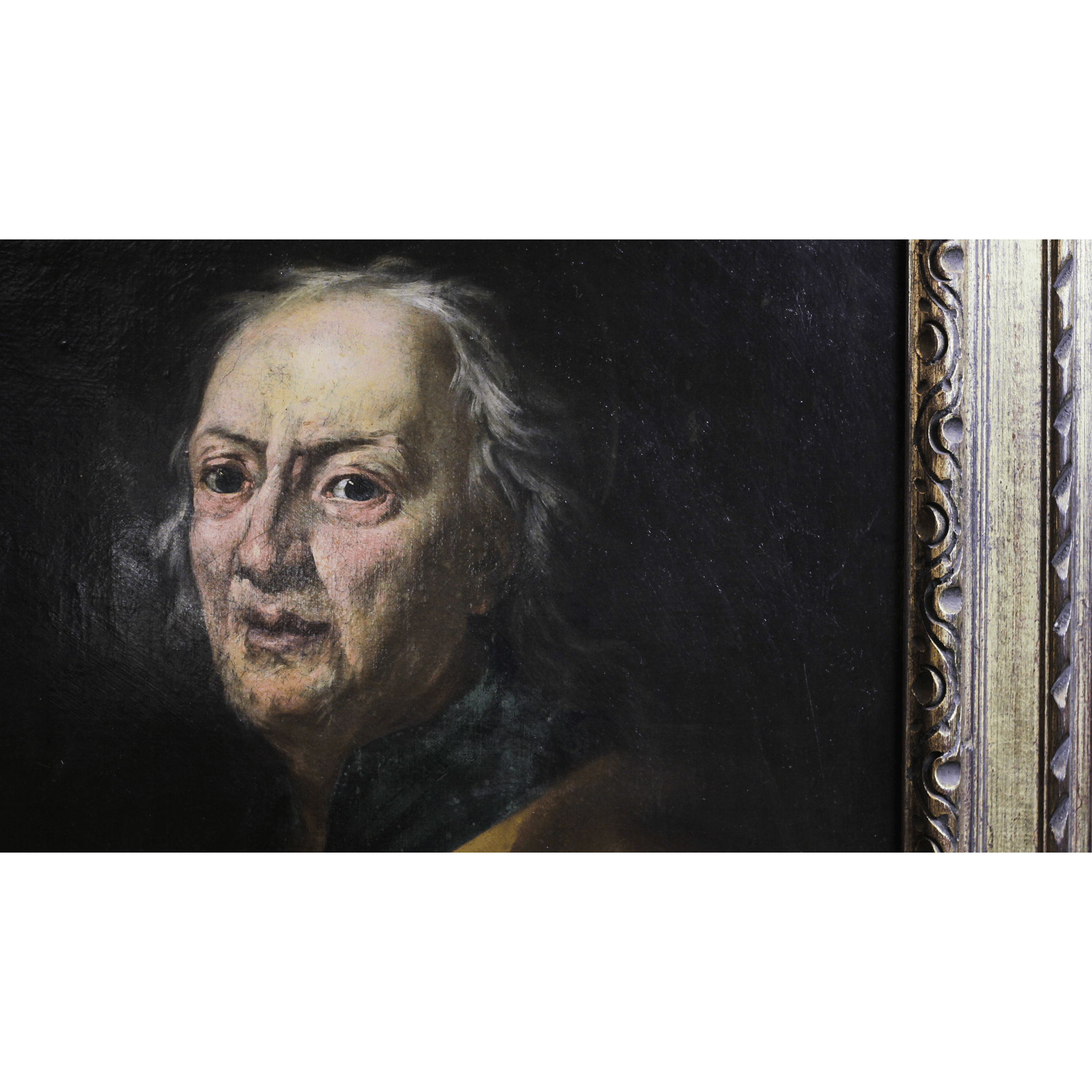 An early 19th century oil portrait on canvas of an old man in its original gilt frame. Sourced in the US.